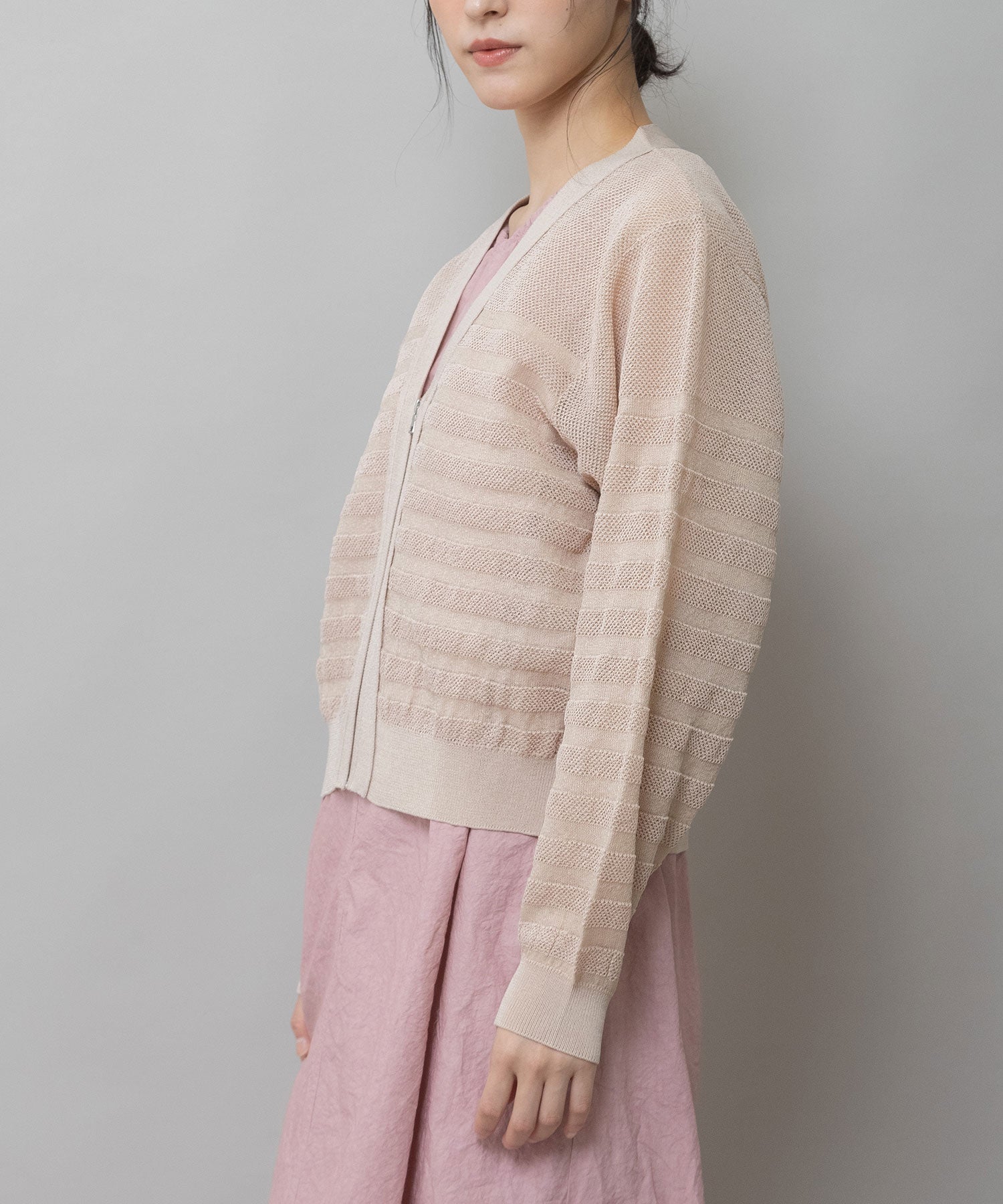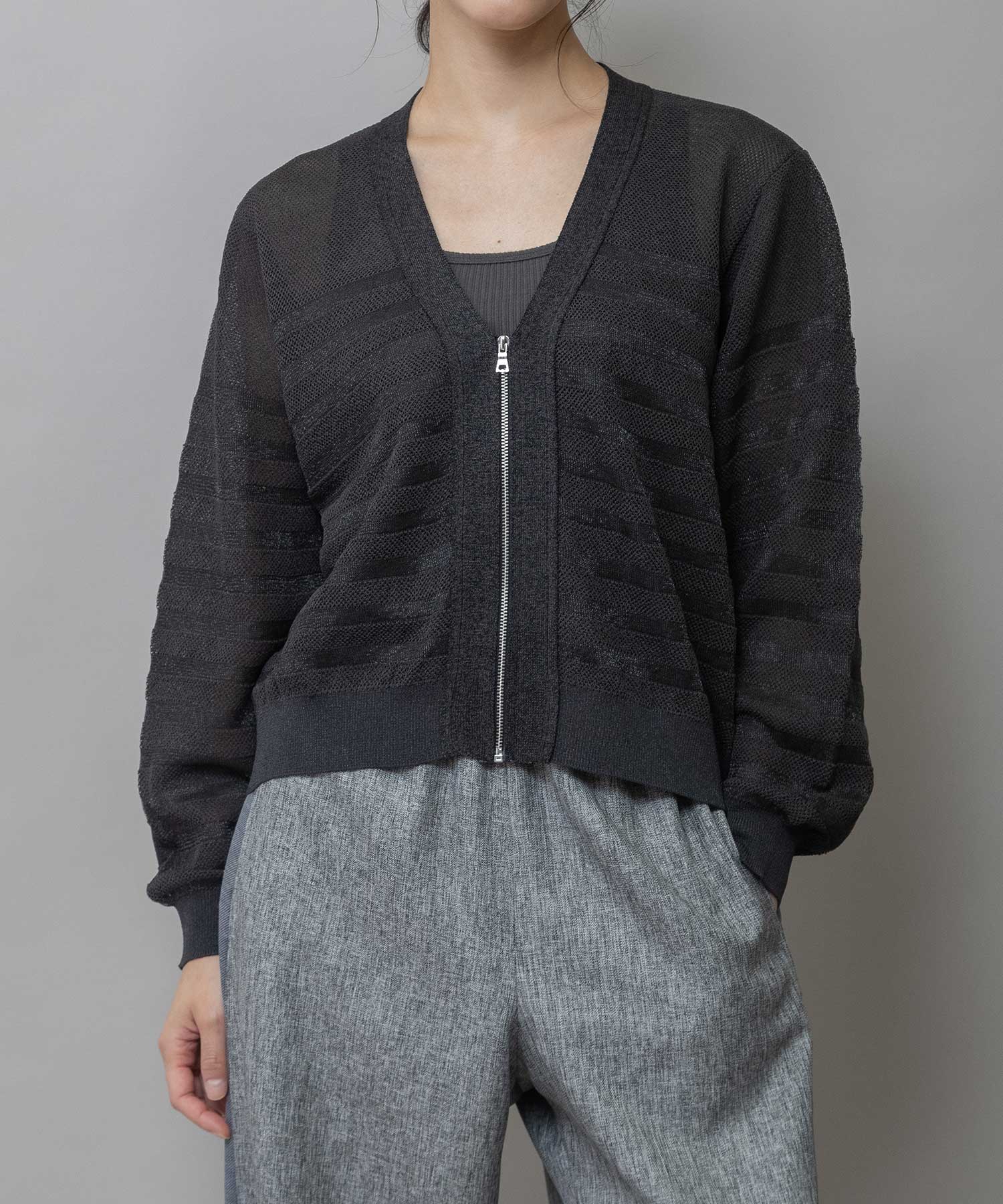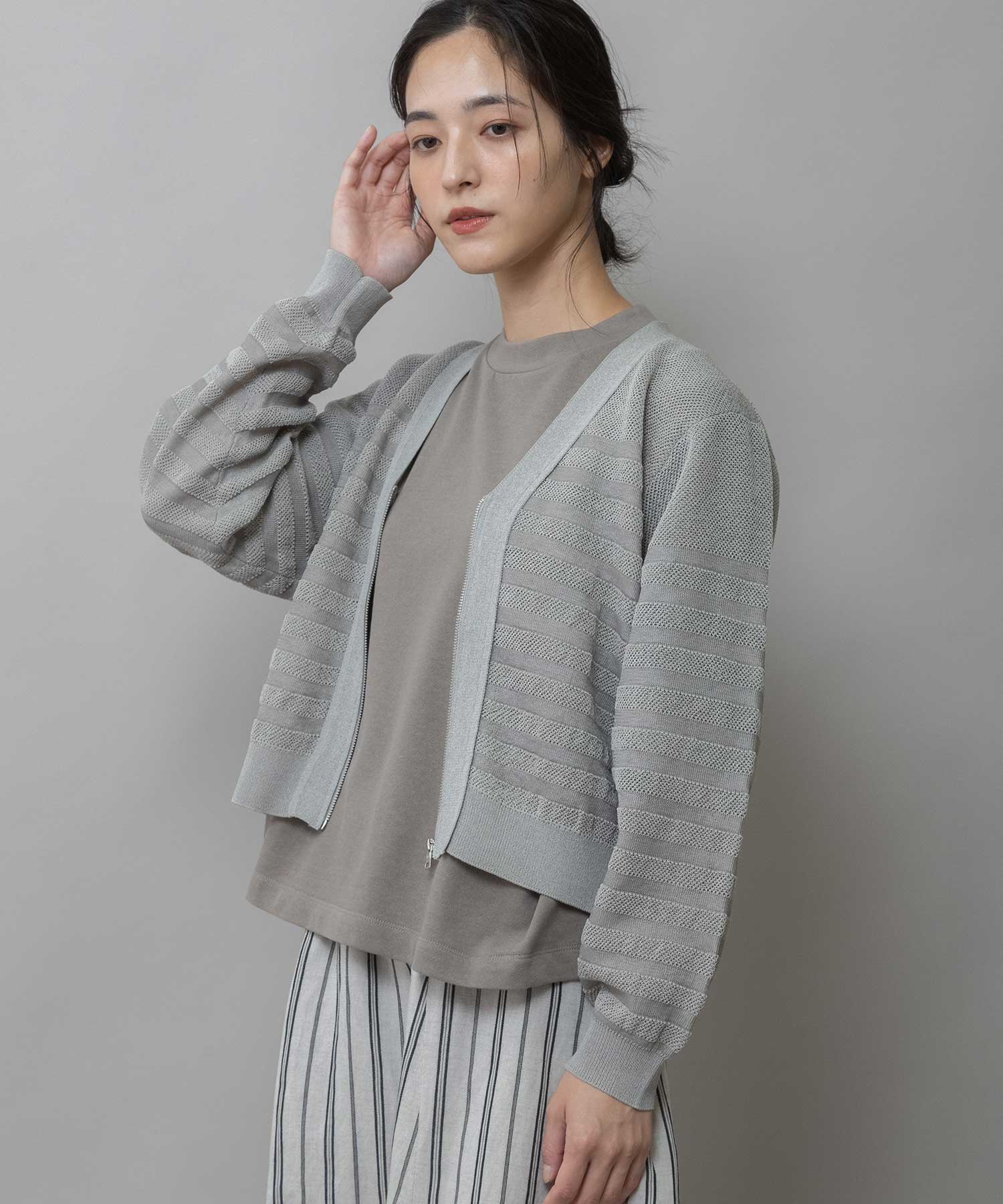 メッシュジャガードボーダーニットジップカーディガン