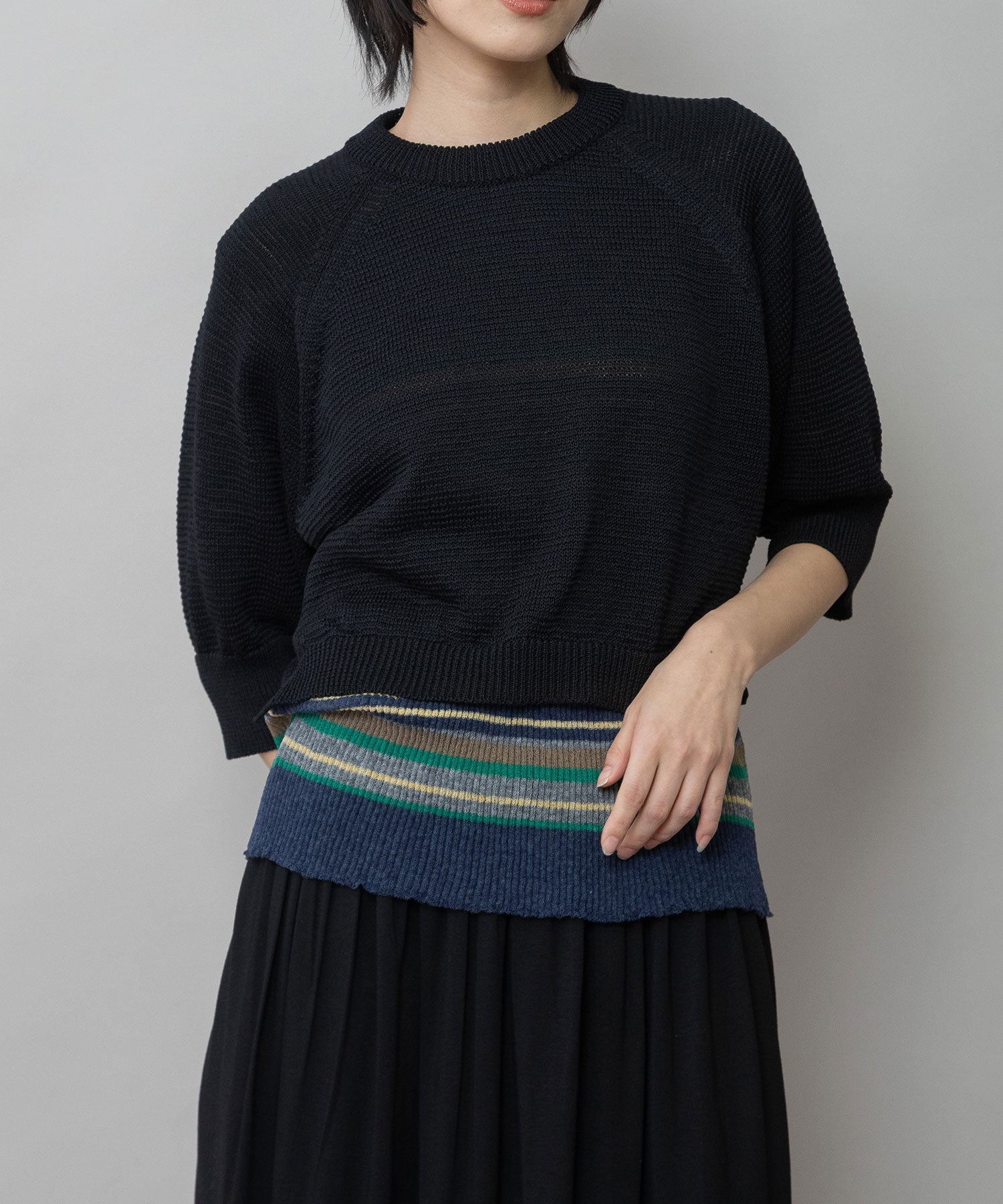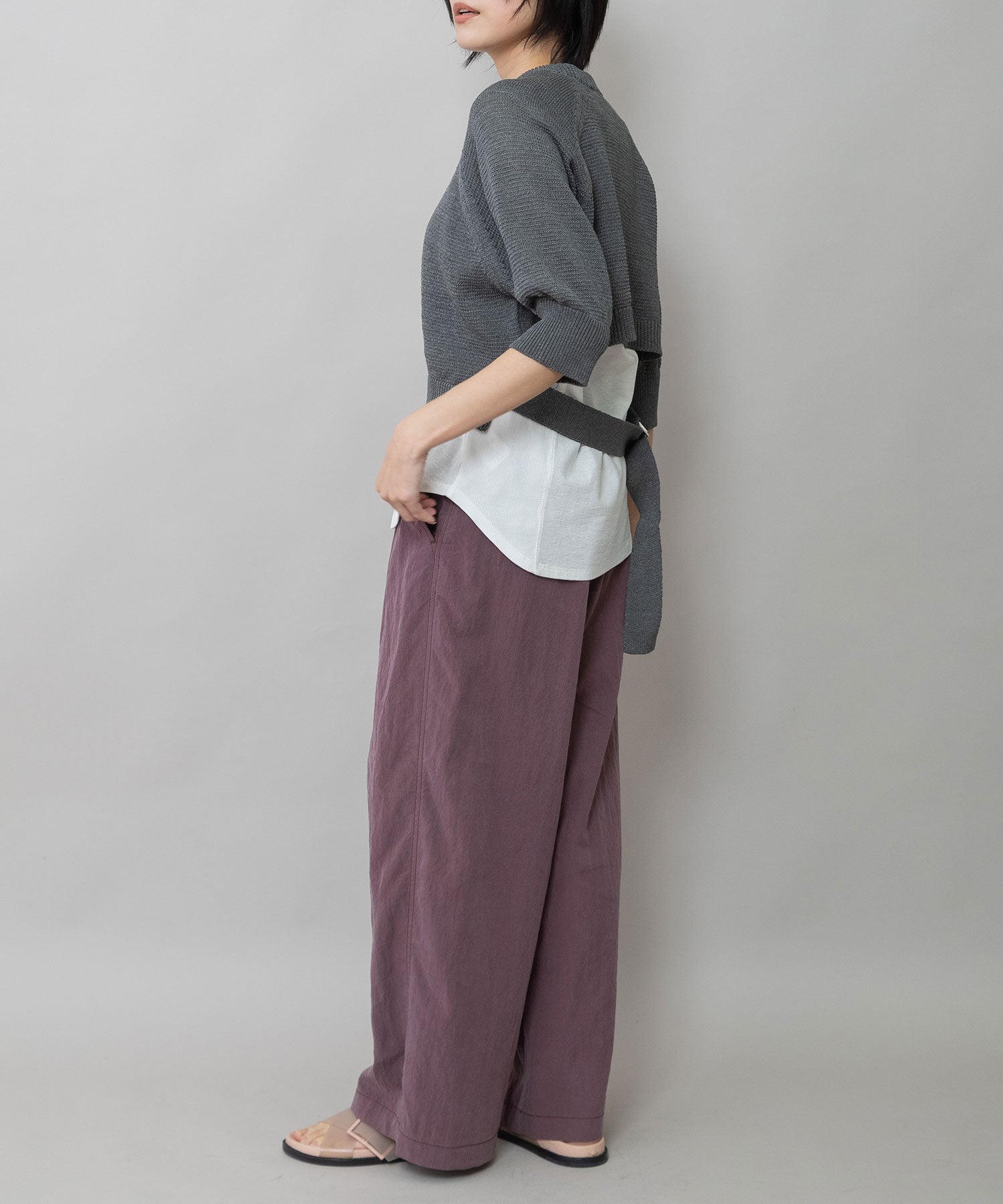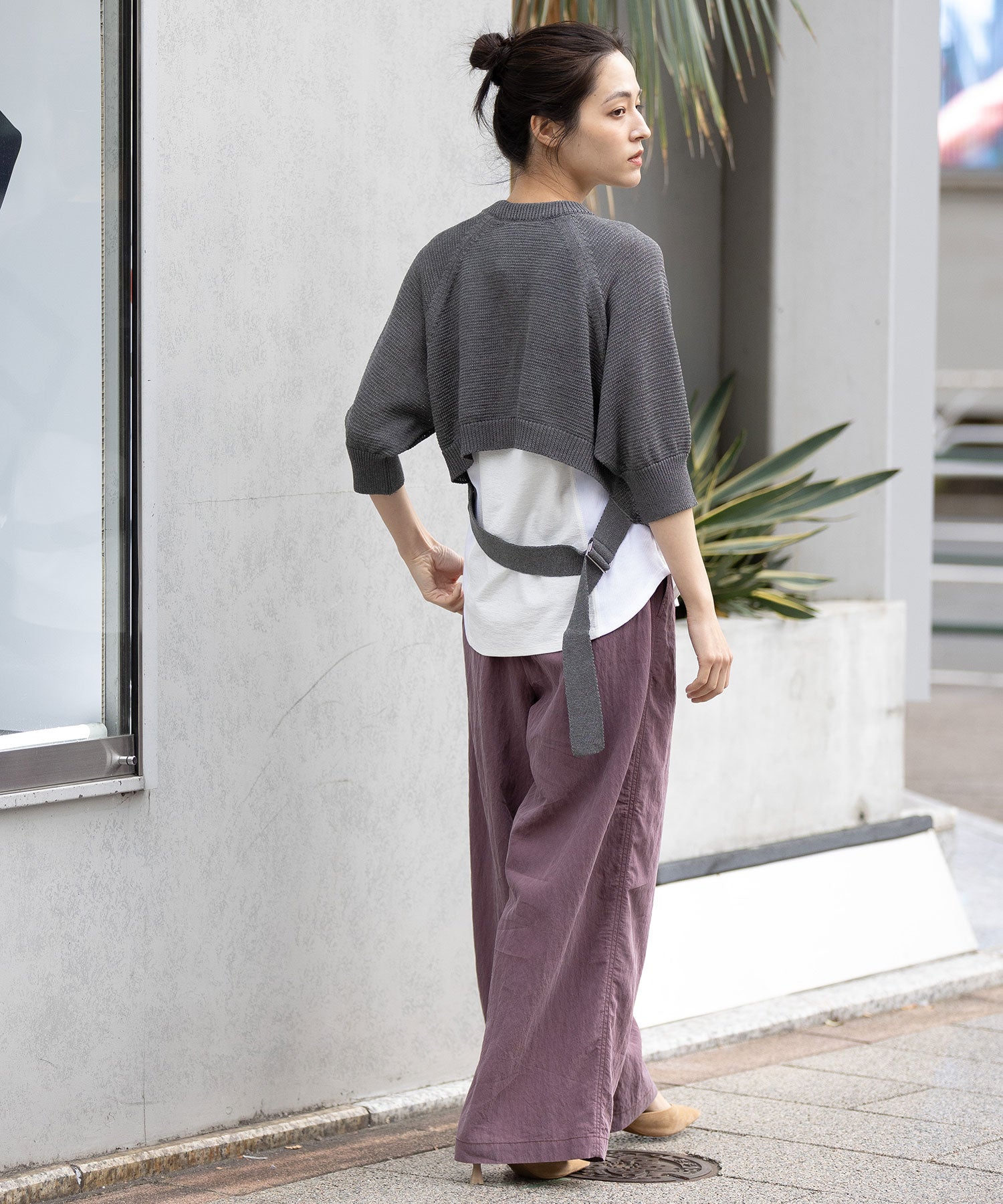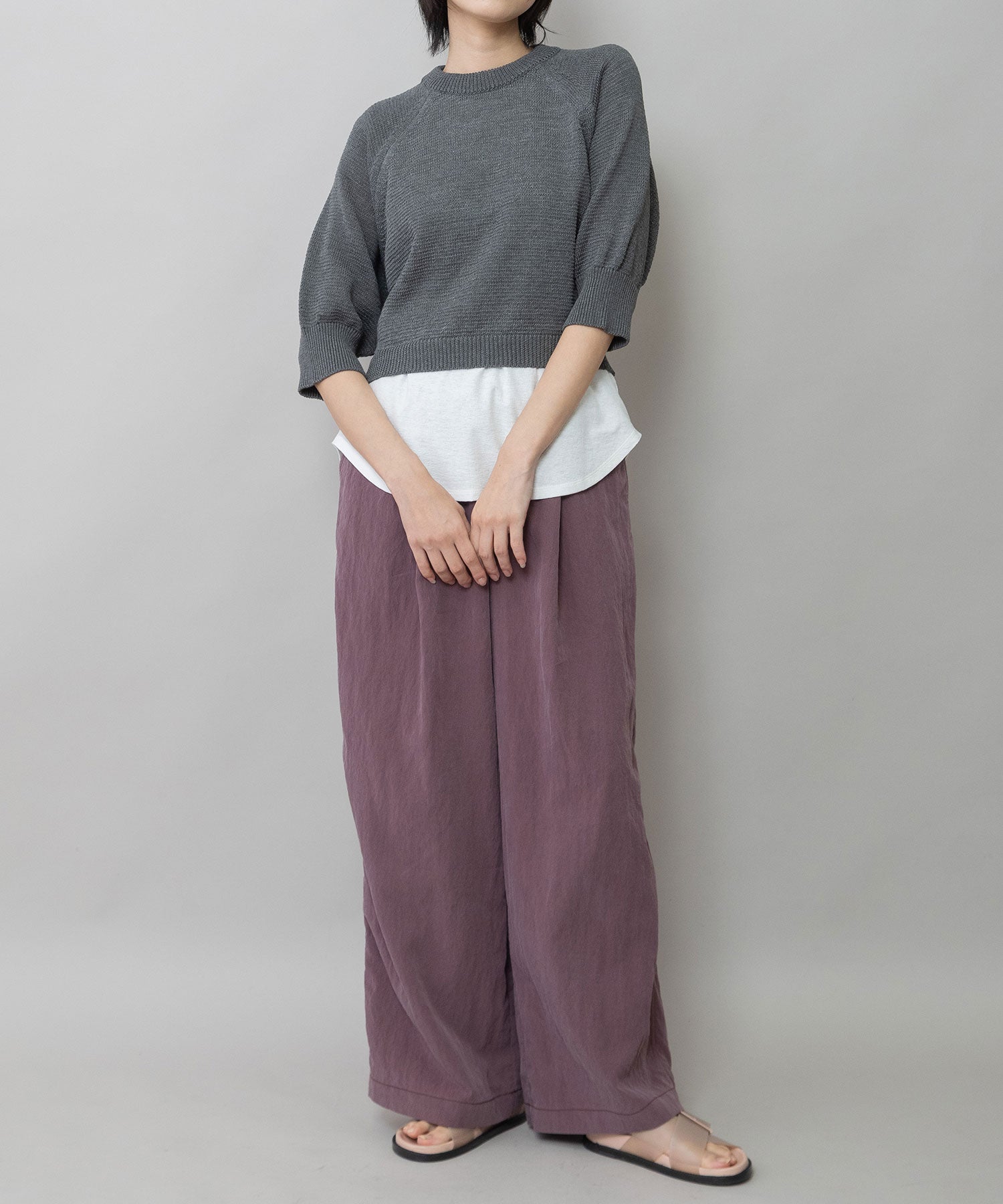 コンパクトな丈感に、ひじが隠れる大人袖を組み合わせてバランスを取り、トレンド感あるトップスに仕上げました。
