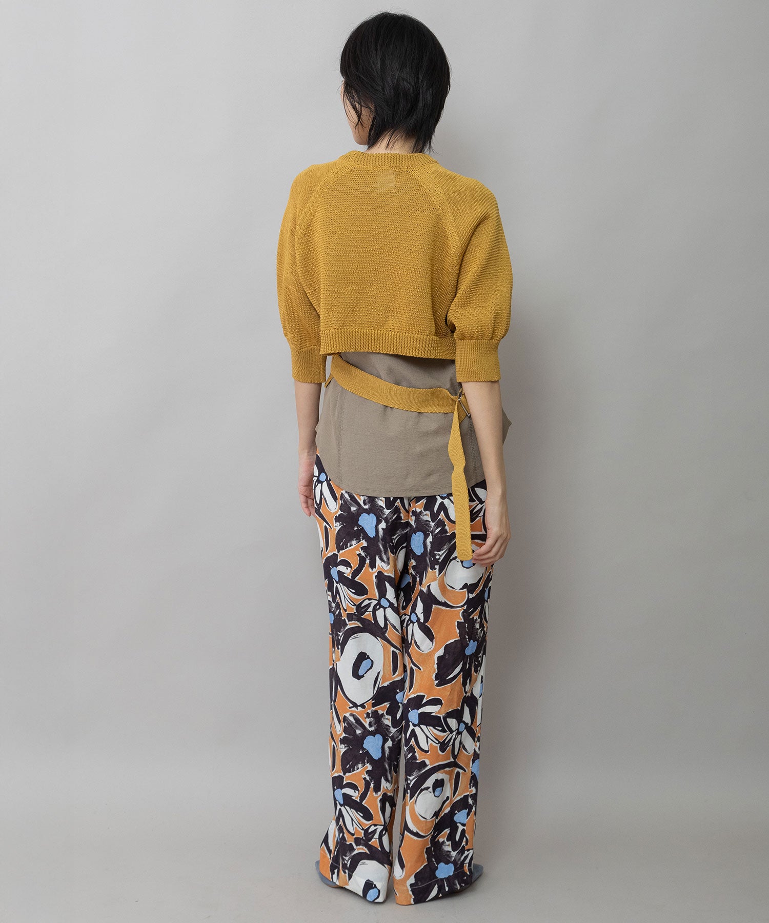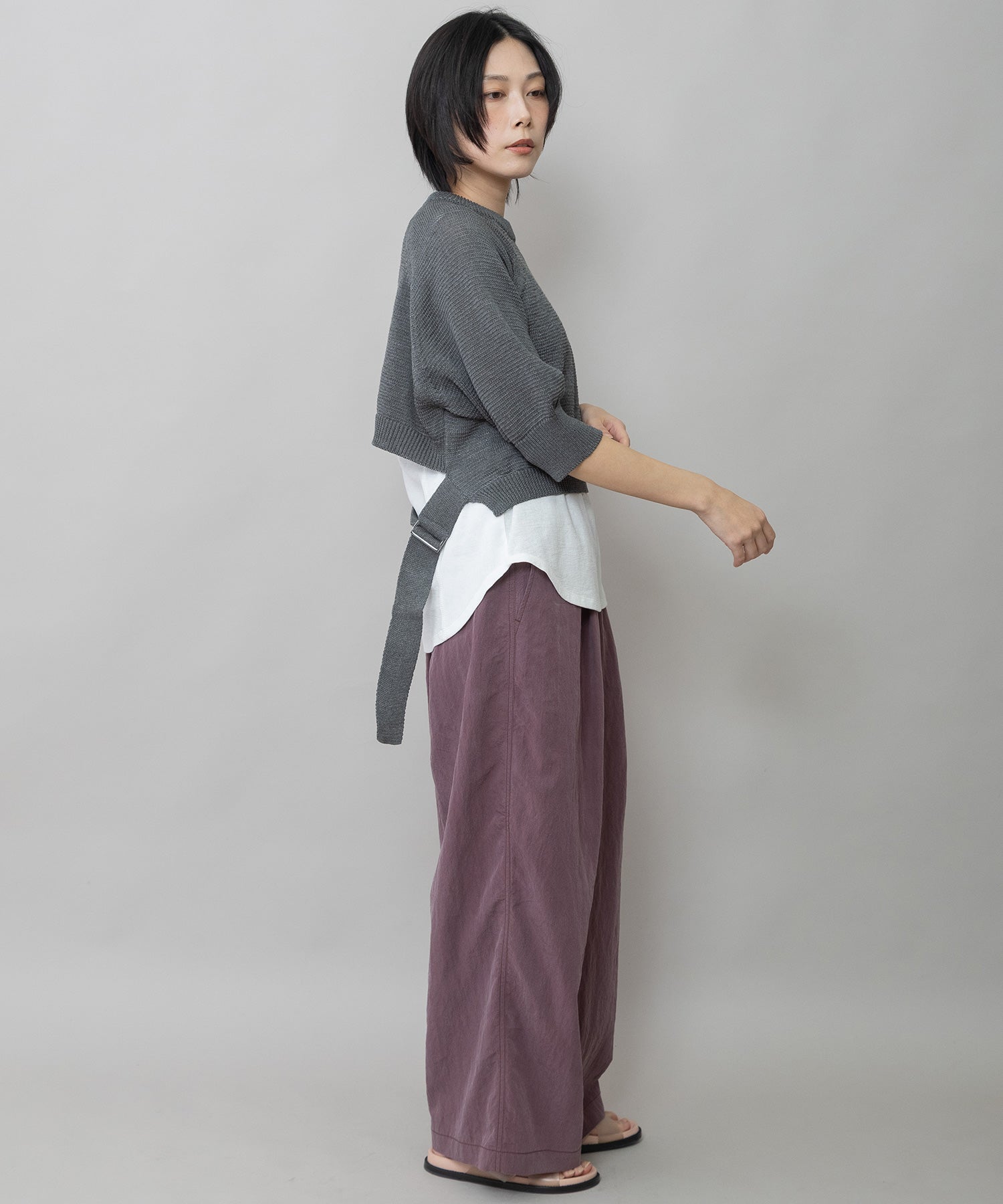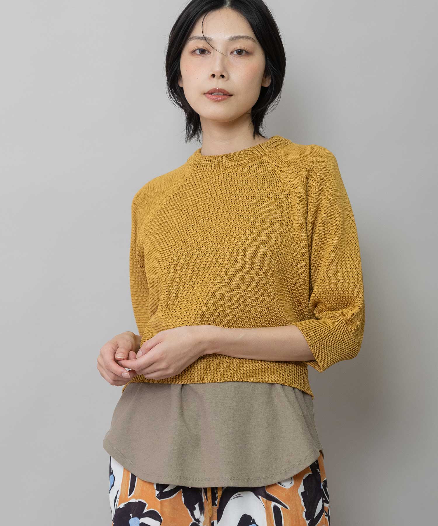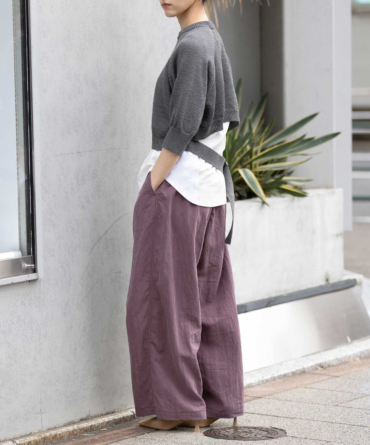コンパクトな丈感に、ひじが隠れる大人袖を組み合わせてバランスを取り、トレンド感あるトップスに仕上げました。