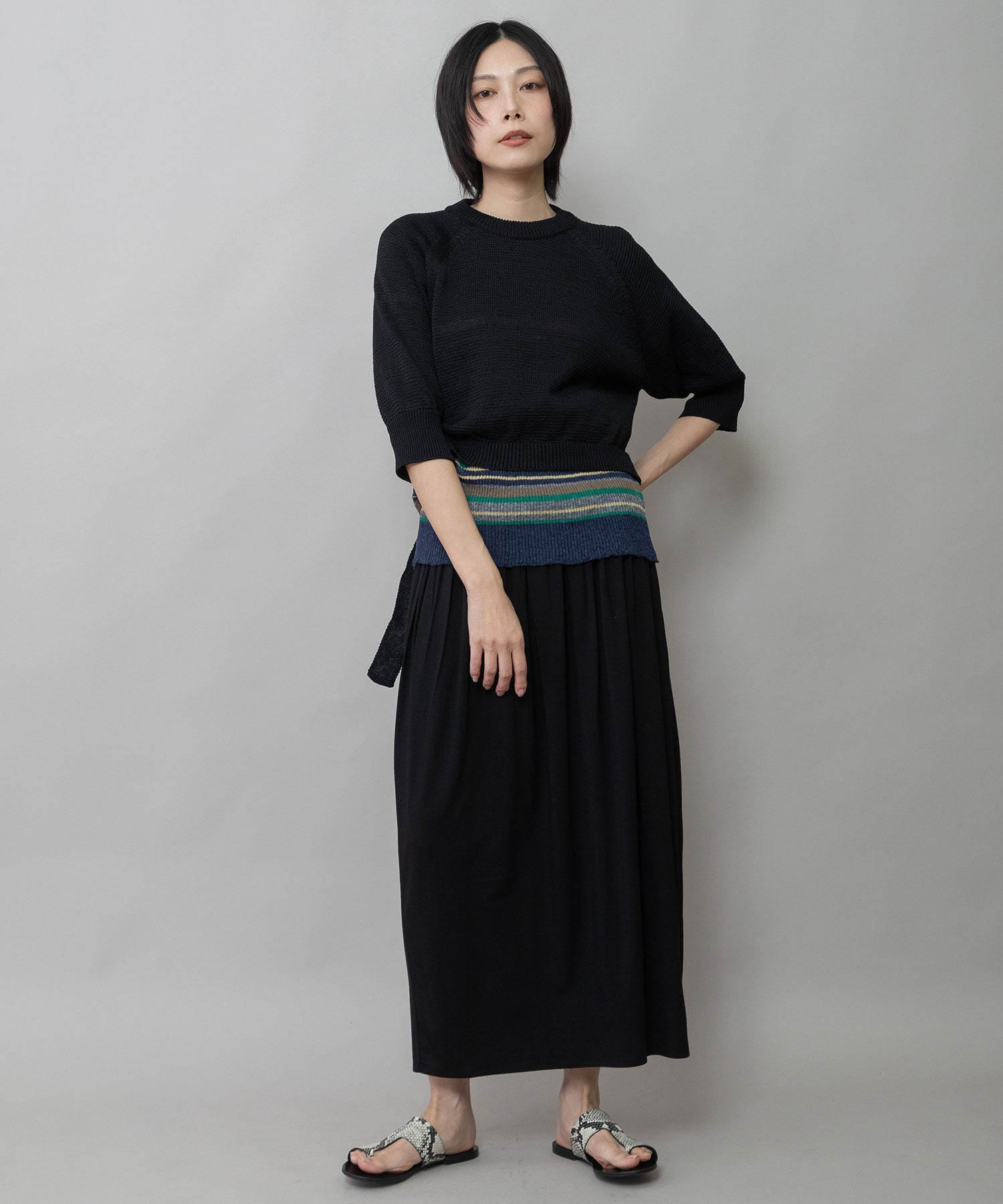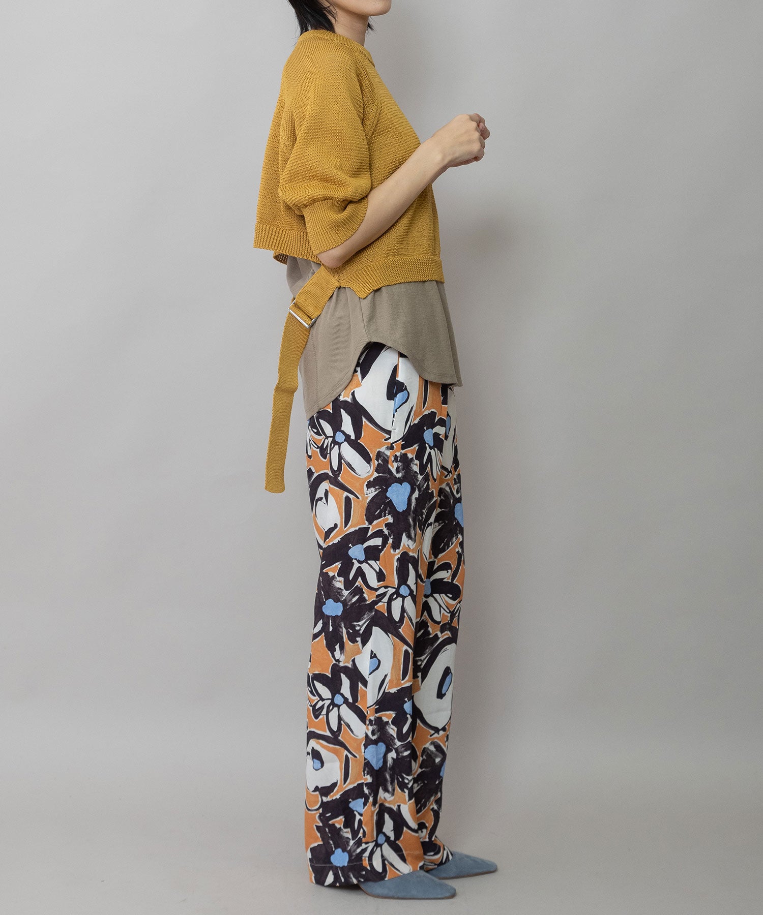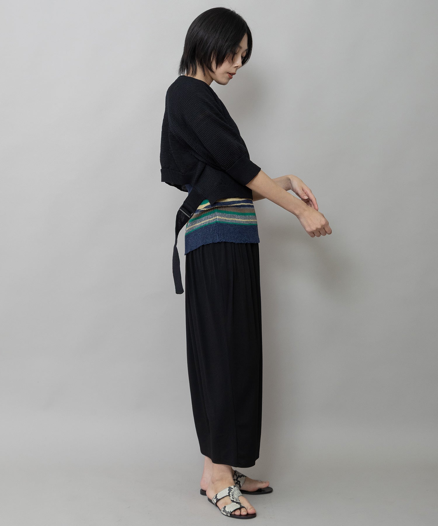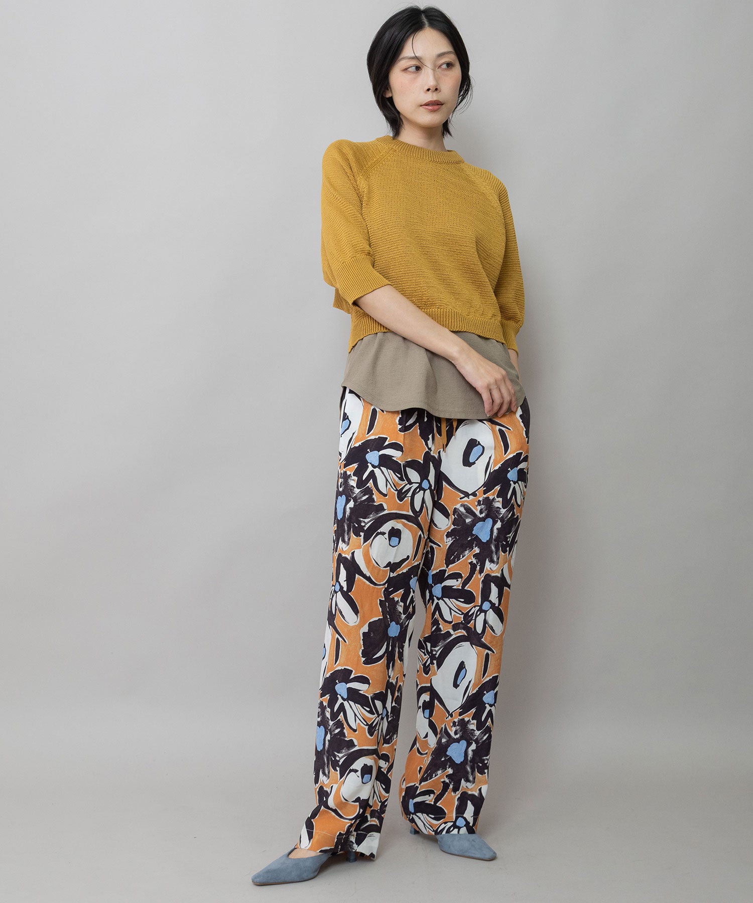 コンパクトな丈感に、ひじが隠れる大人袖を組み合わせてバランスを取り、トレンド感あるトップスに仕上げました。