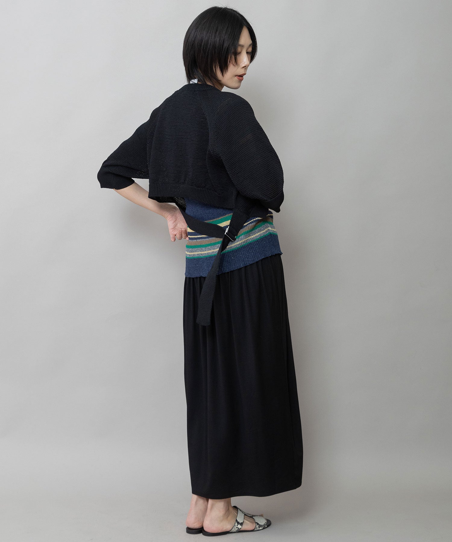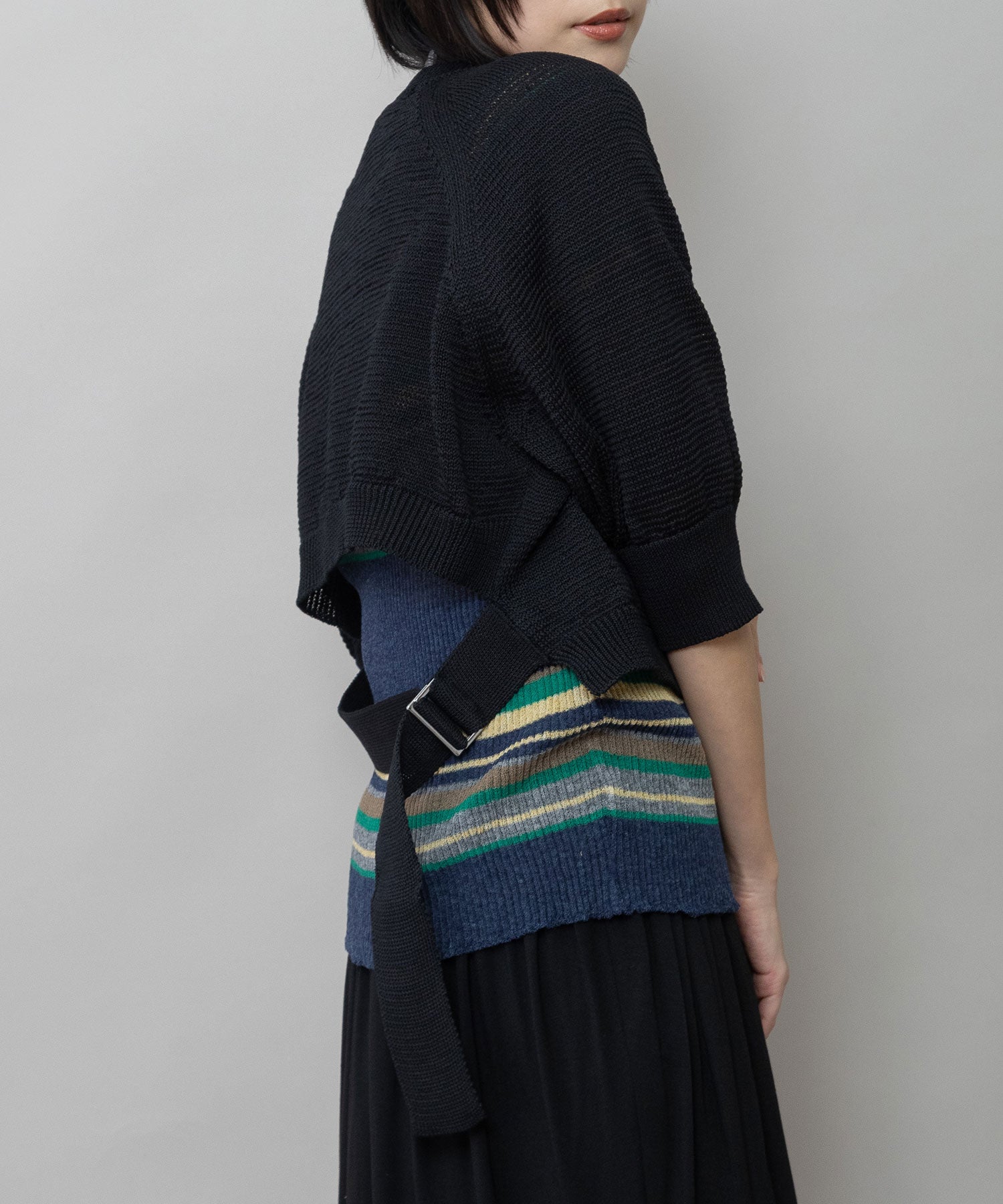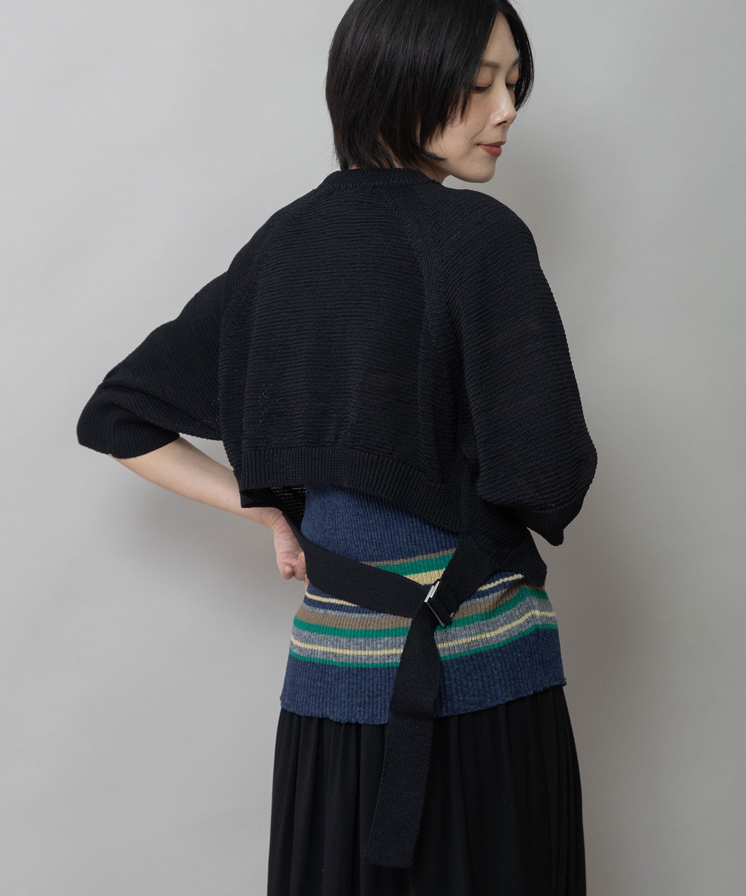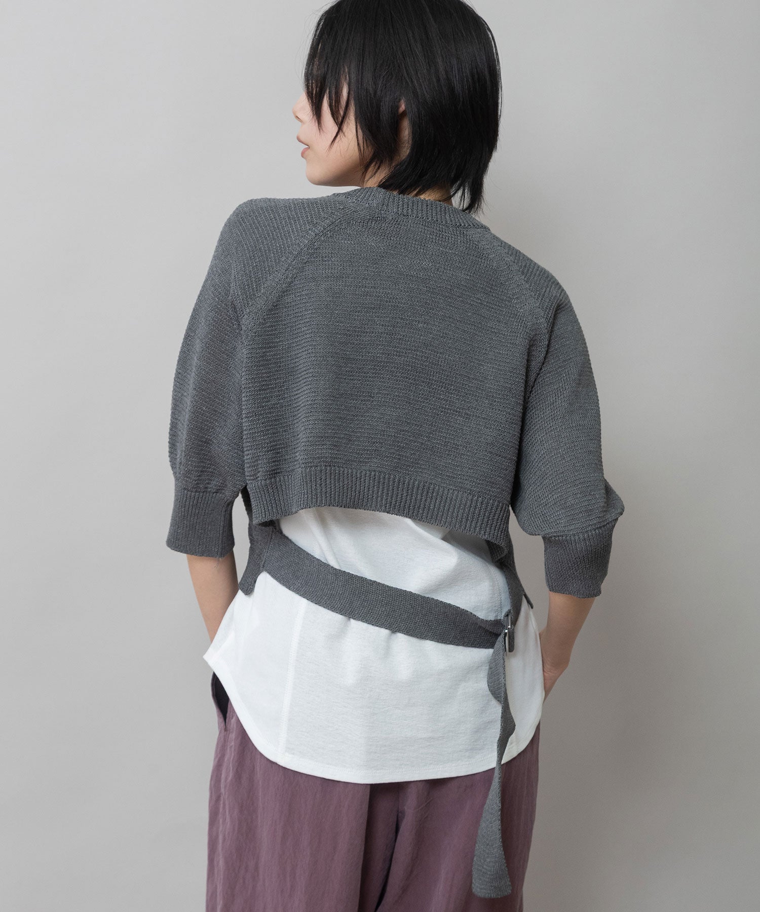 ◆バックスタイルのベルトディティールが目を惹くクロップドニット◆