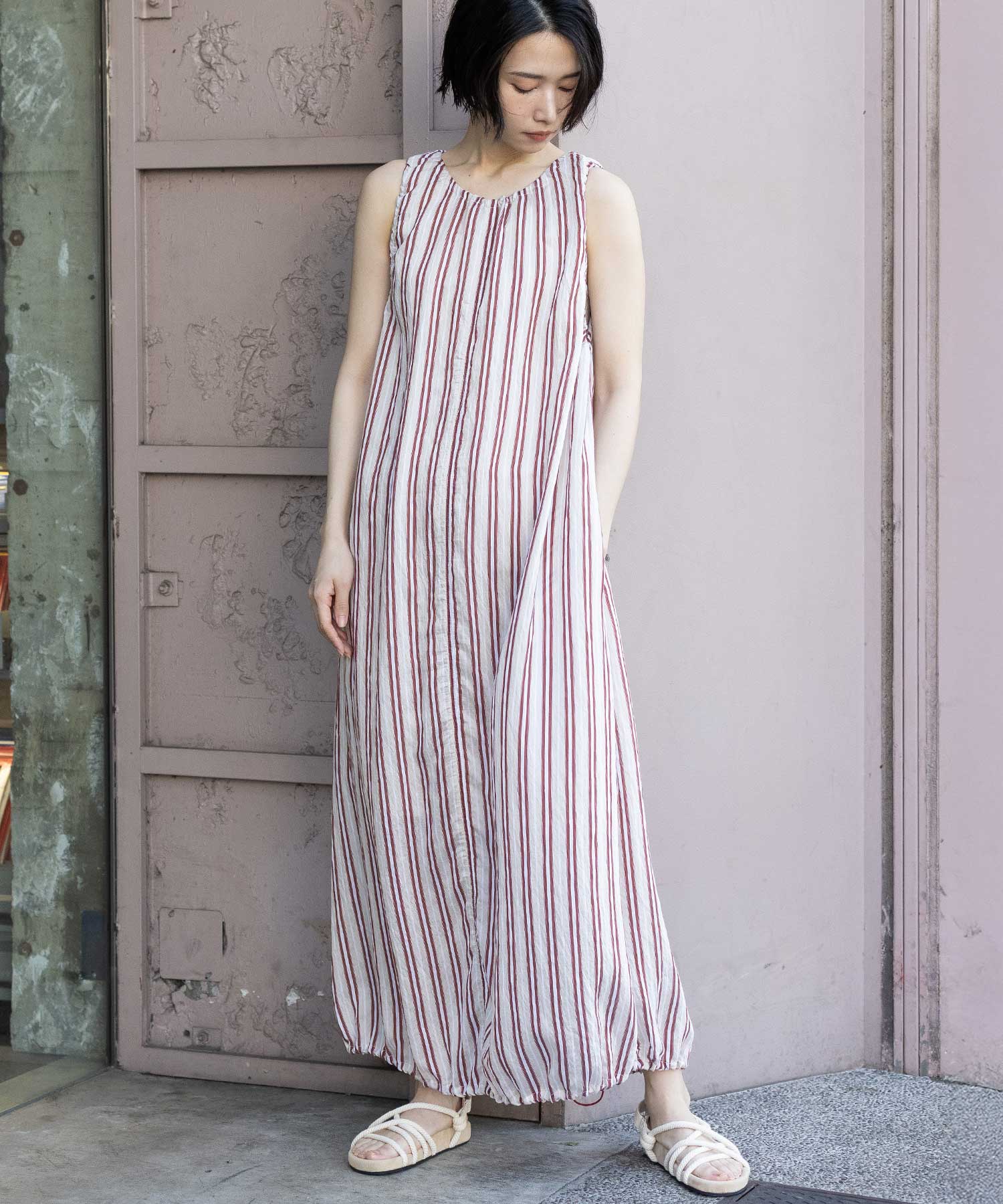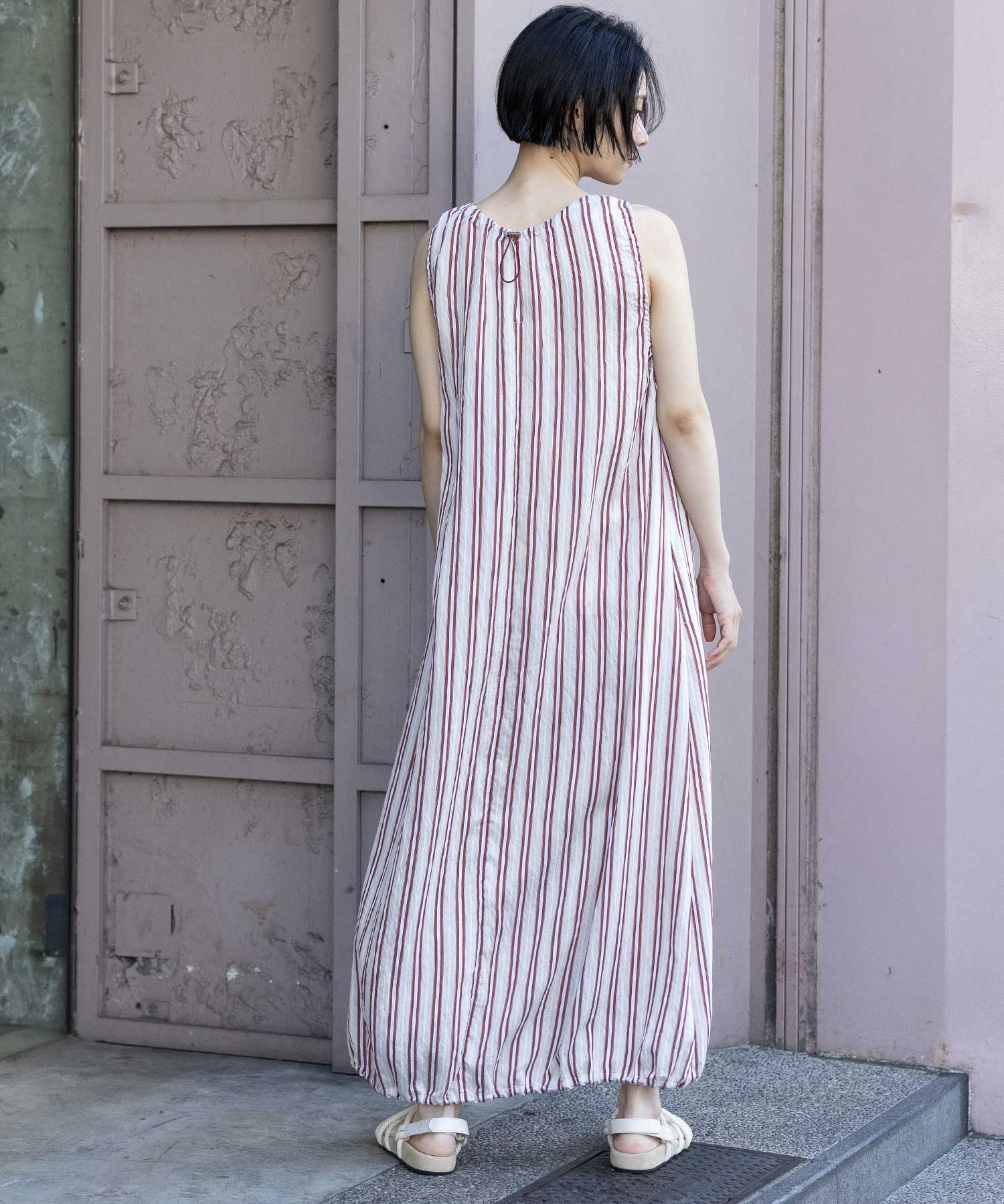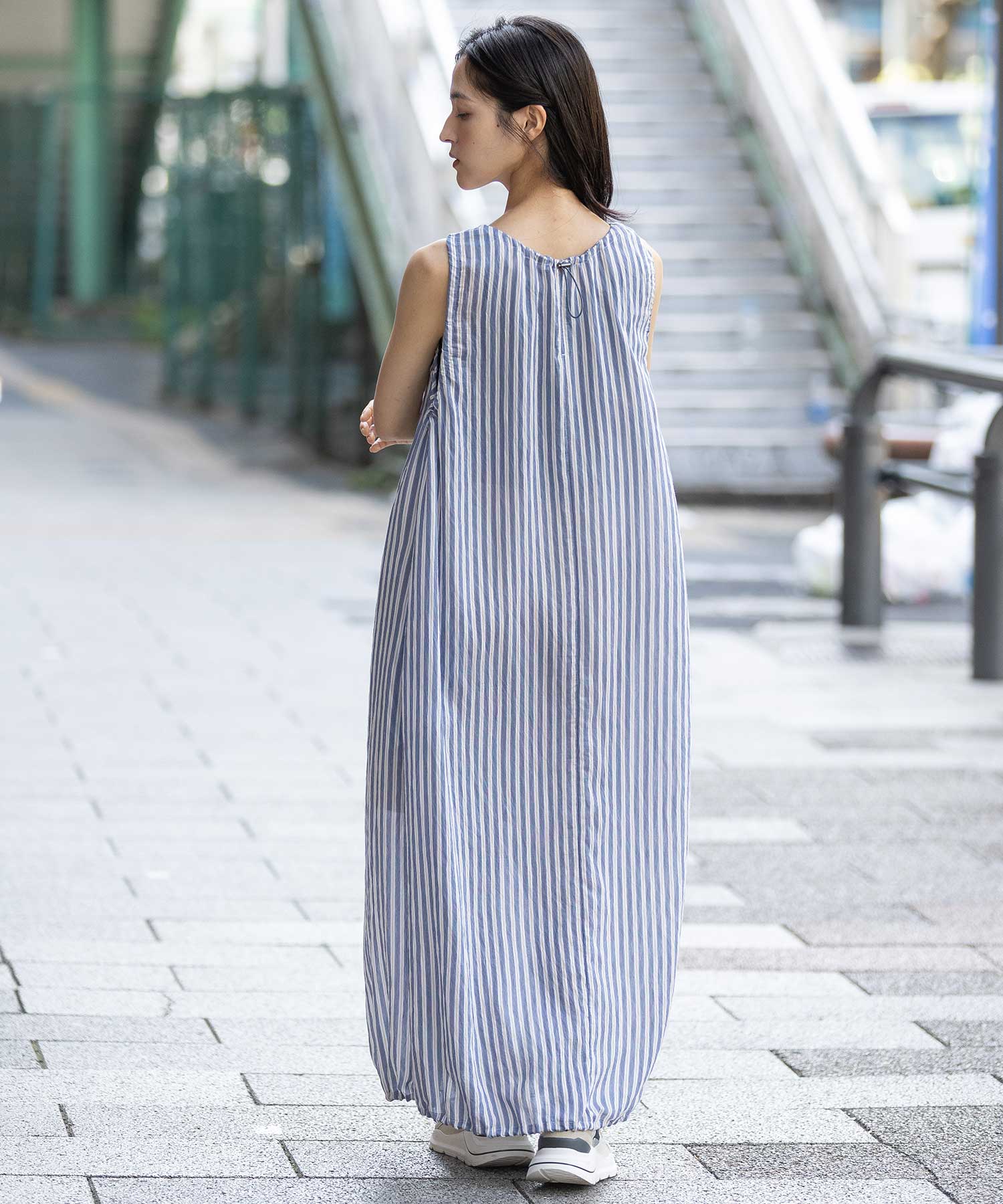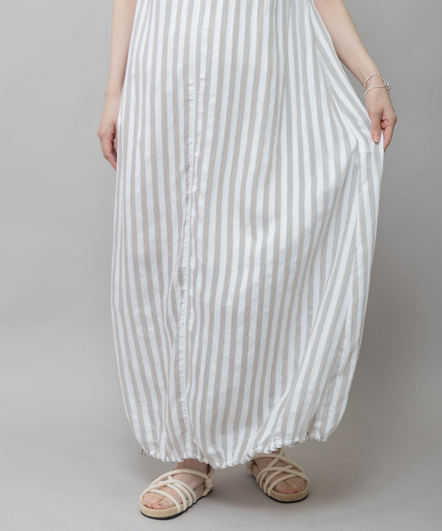 ◆インポートならではの表情豊かなストライプでリゾートにもデイリーにも使えるバルーンワンピース◆