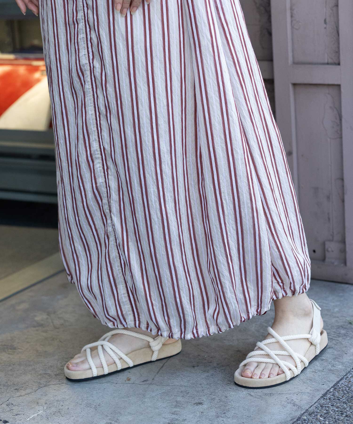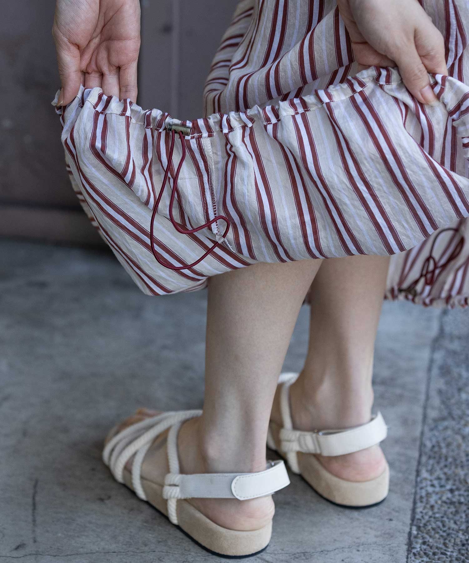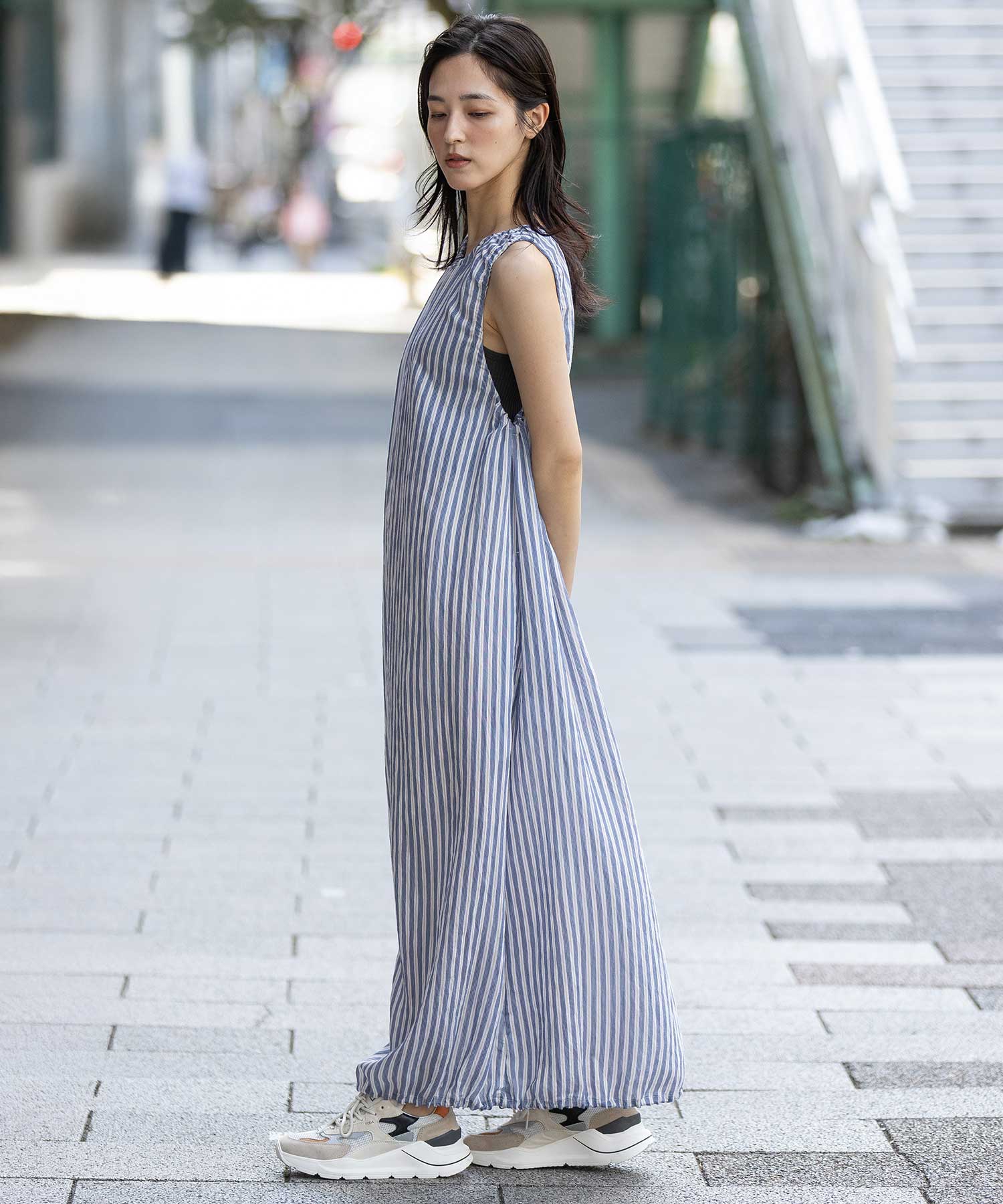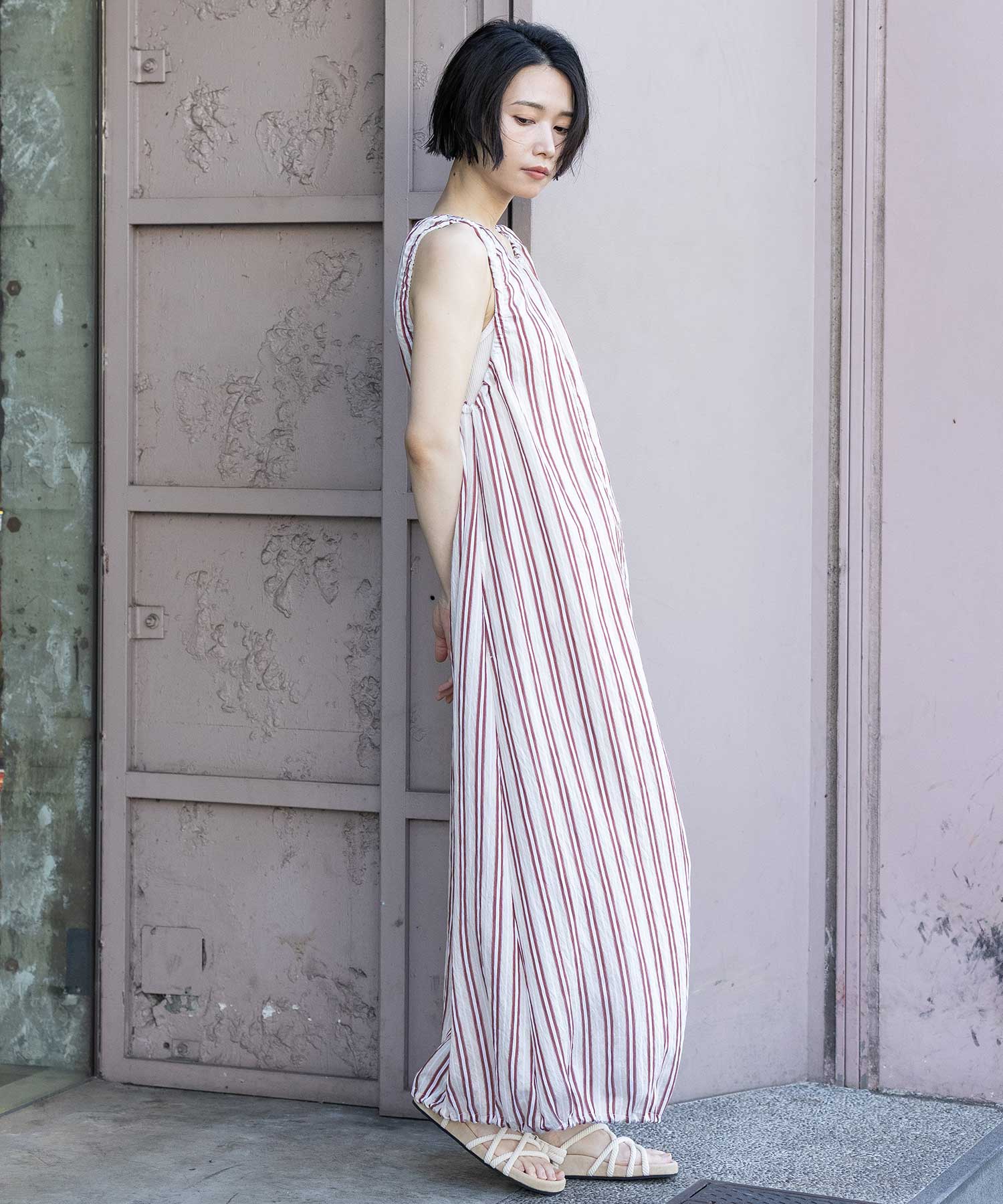 ACAR製のストライプでリゾート感もありながら、ジャケットやブルゾンを合わせて、デイリー使いもしやすい上品な印象に仕上がているのもポイントです。