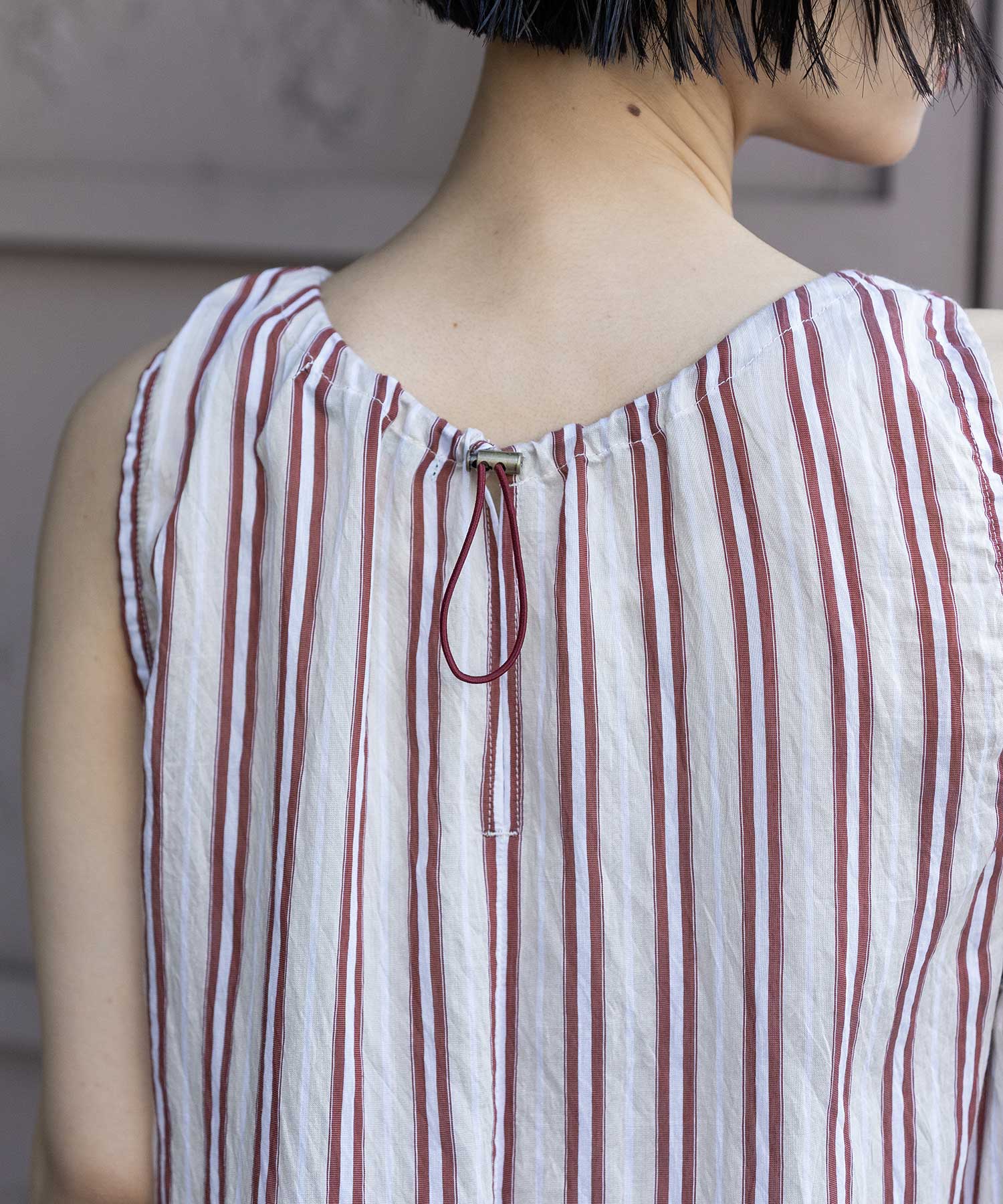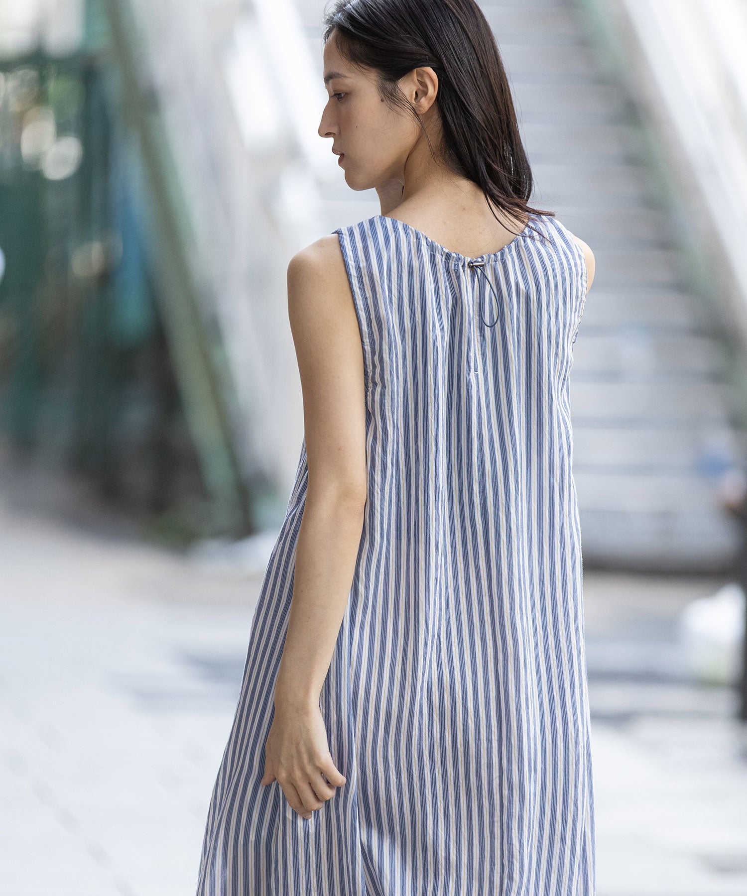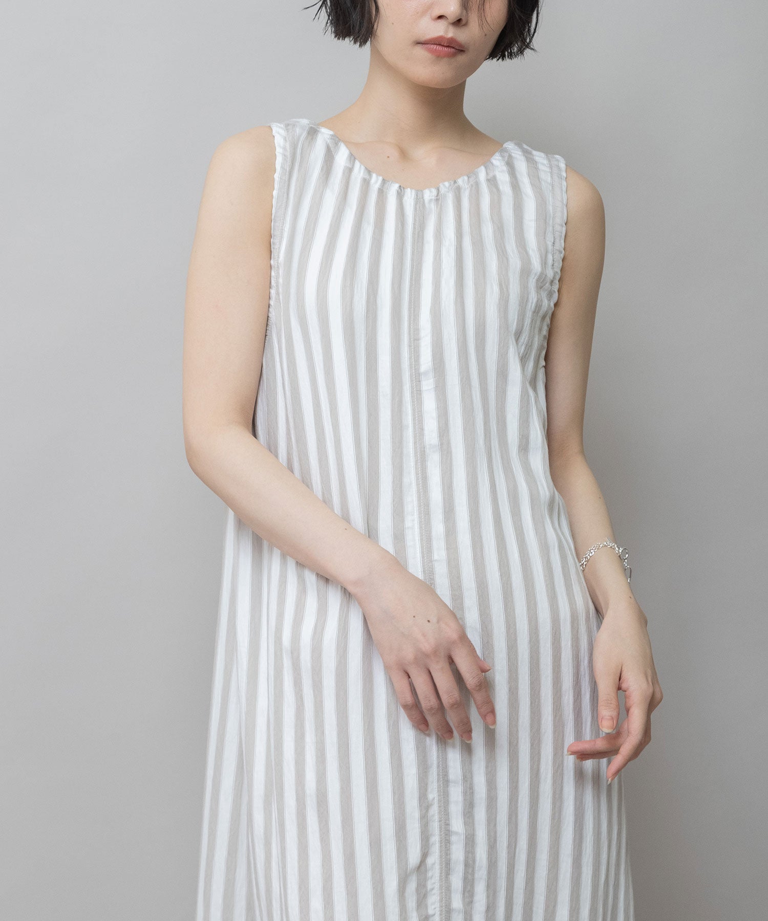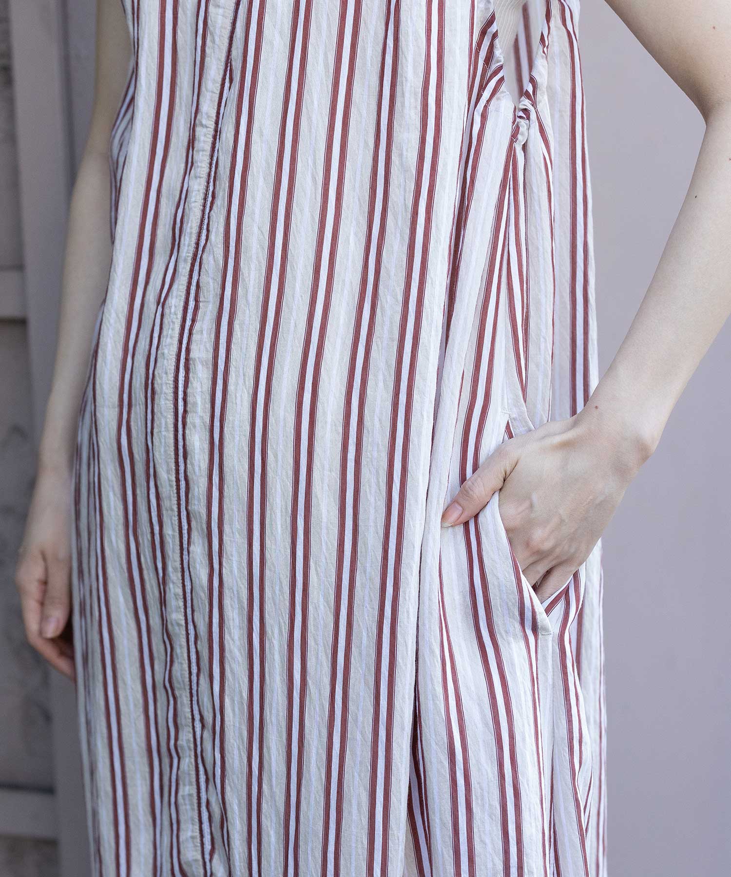 ACAR製のストライプでリゾート感もありながら、ジャケットやブルゾンを合わせて、デイリー使いもしやすい上品な印象に仕上がているのもポイントです。