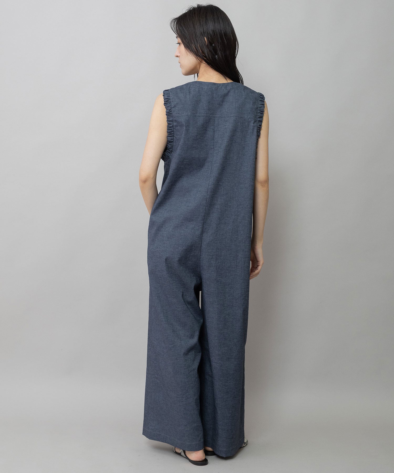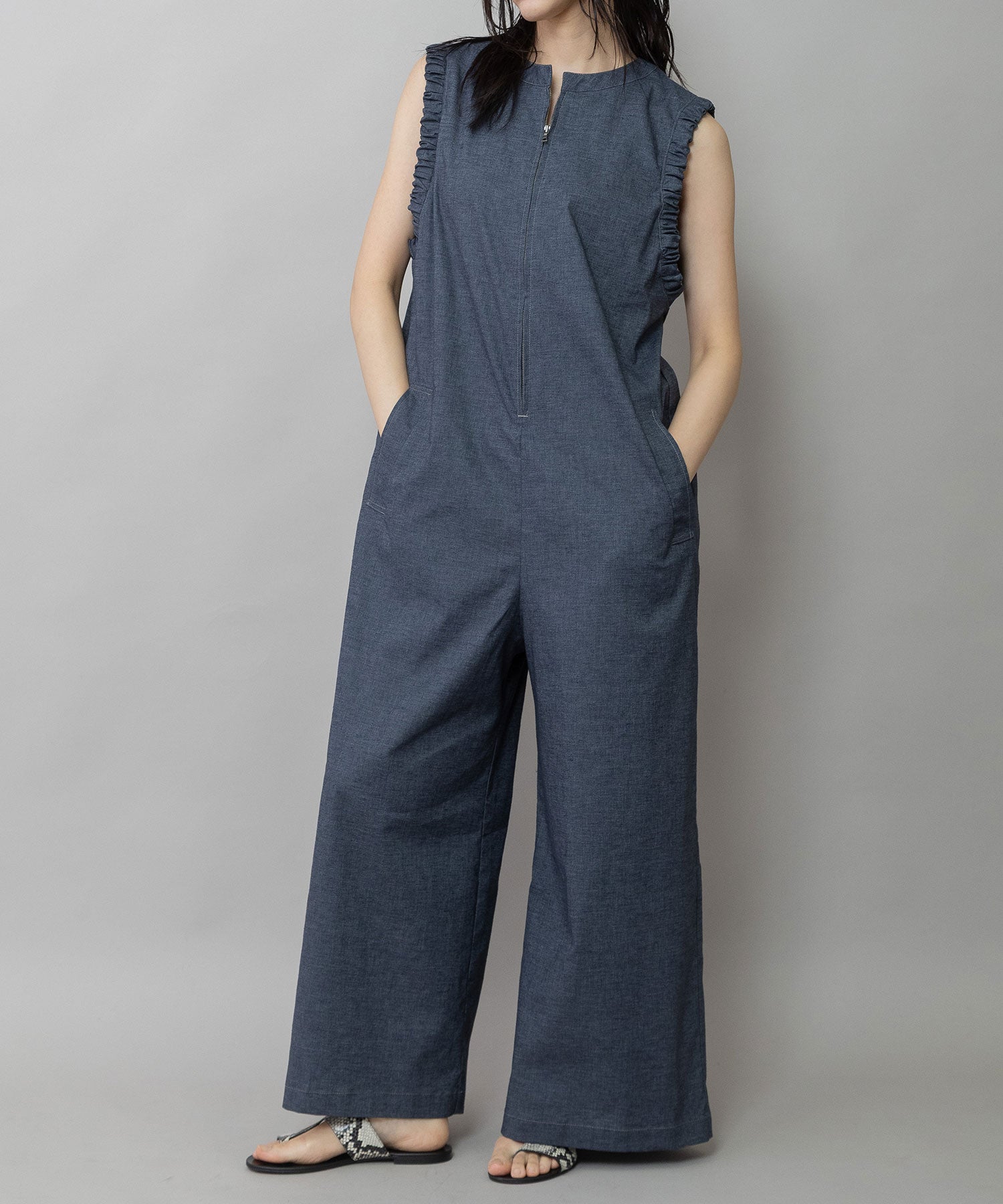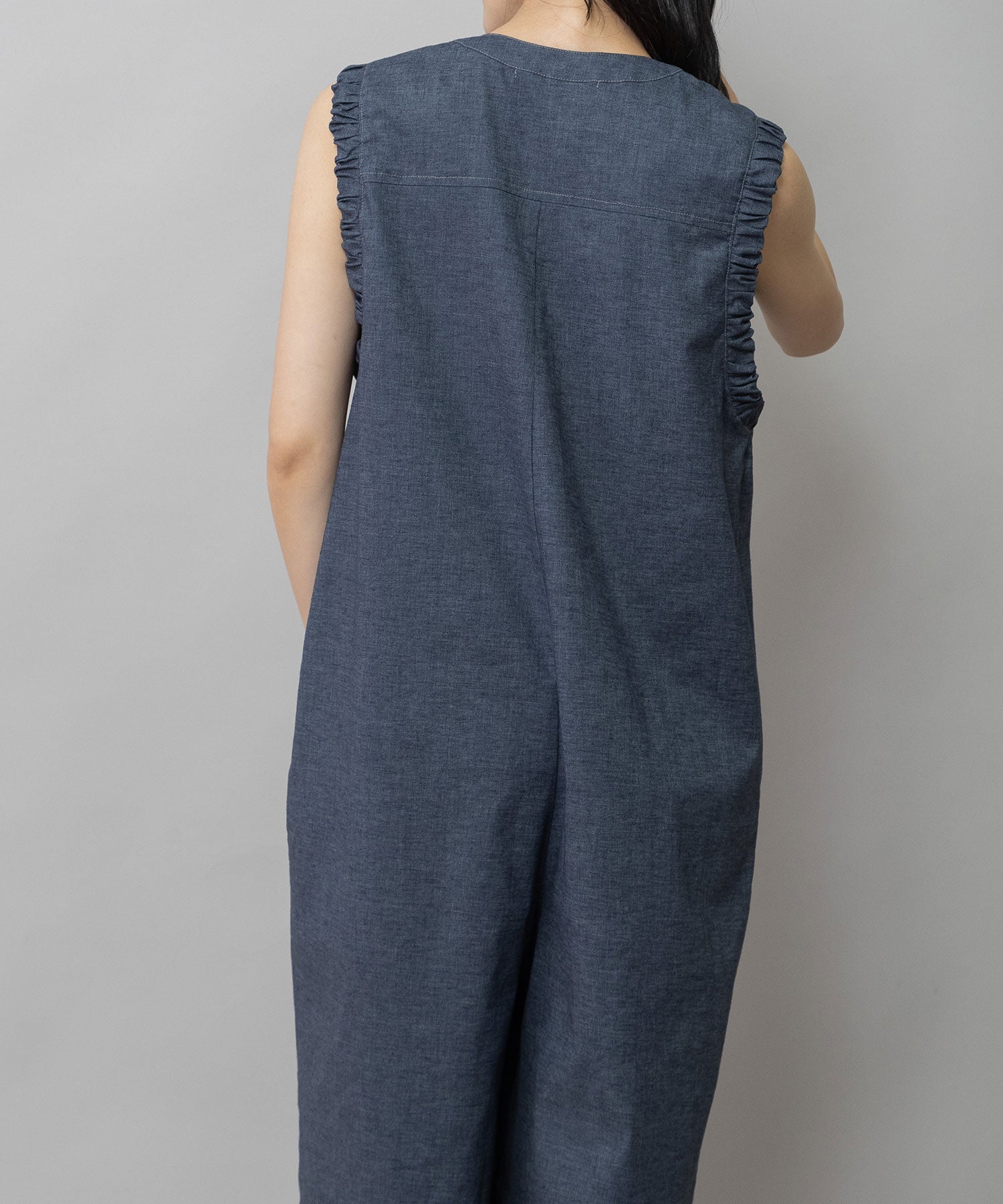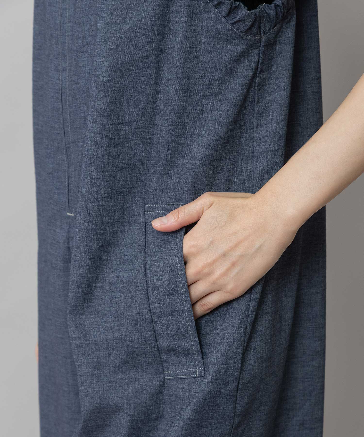 ◆程よいハリコシでシルエットをキープするヘンプシャンブレー使いのコンビネゾン◆
