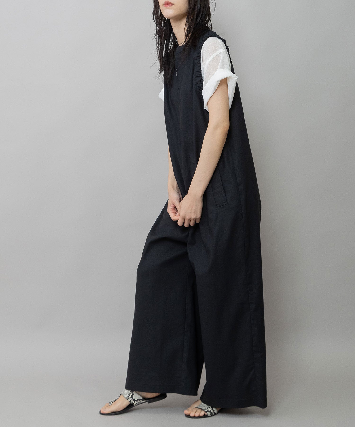 リラックス感がありながらルーズ過ぎず、すっきり目のシルエットがスタイルアップ効果を期待させてくれるコンビネゾンです。