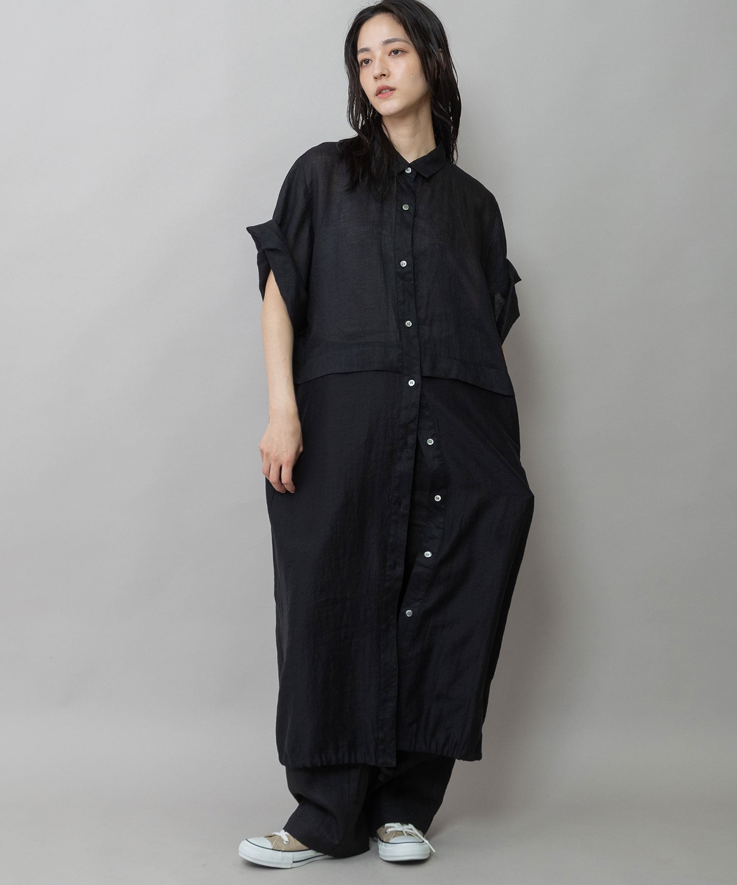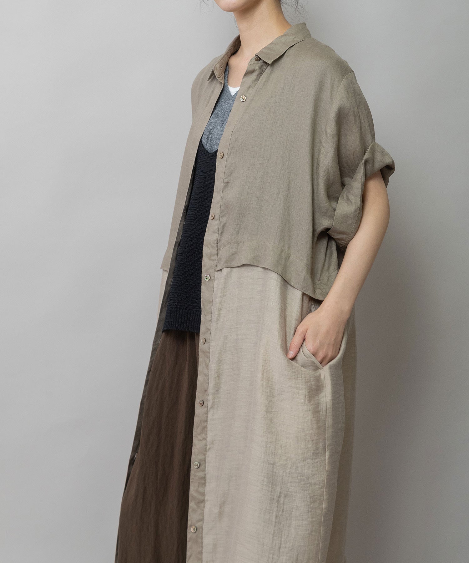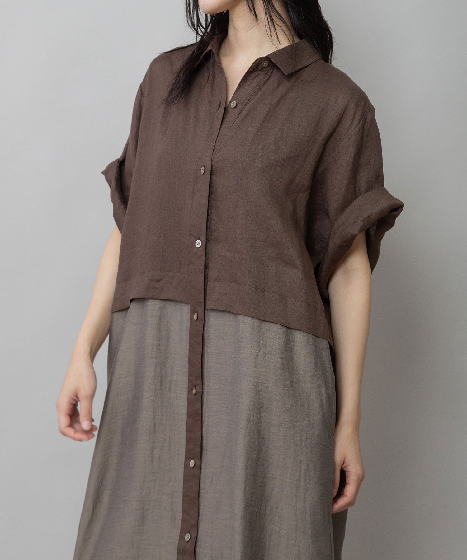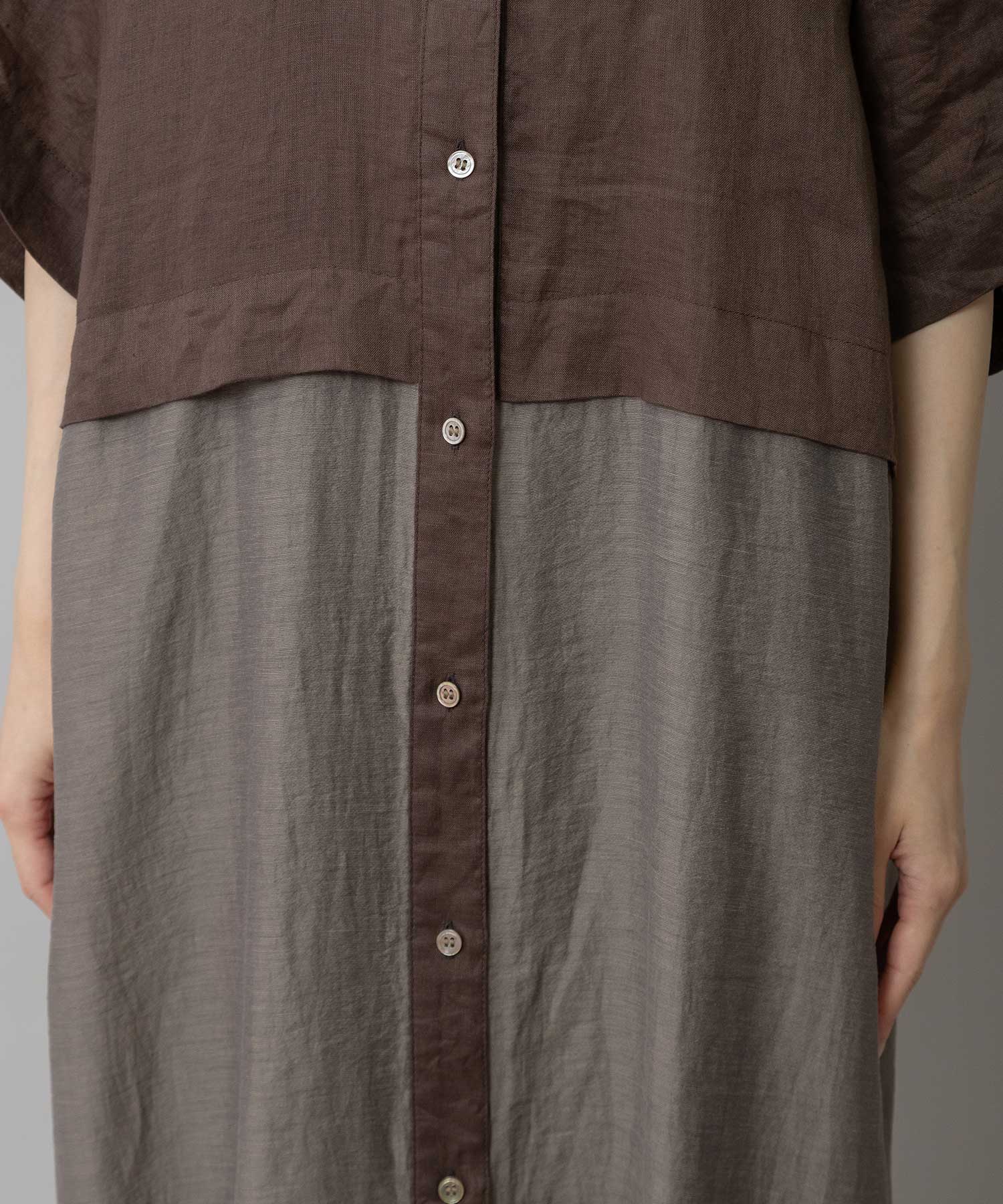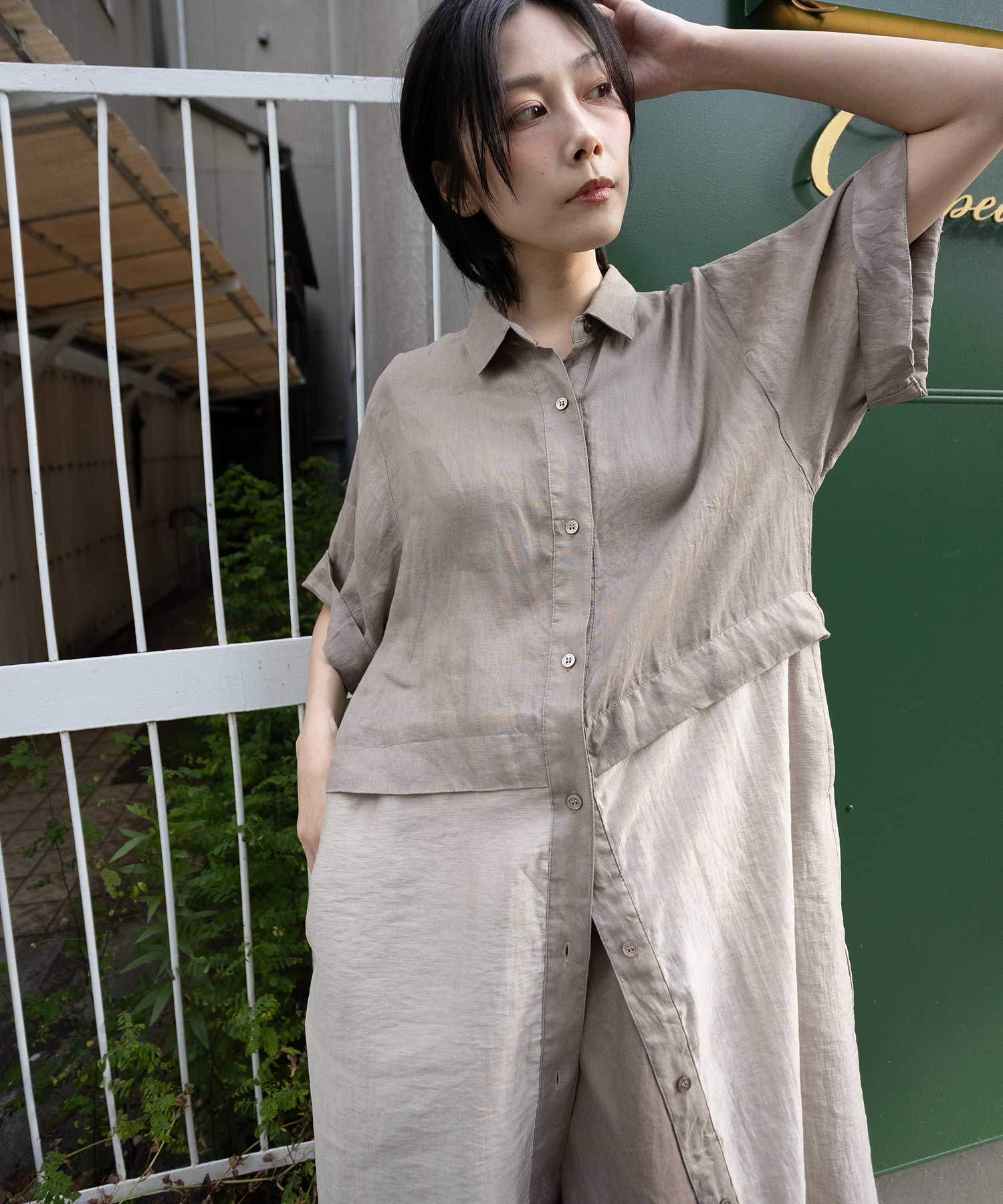 【吸水性】【発散性】60sフレンチリネン×シアーローンドッキングシャツワンピース