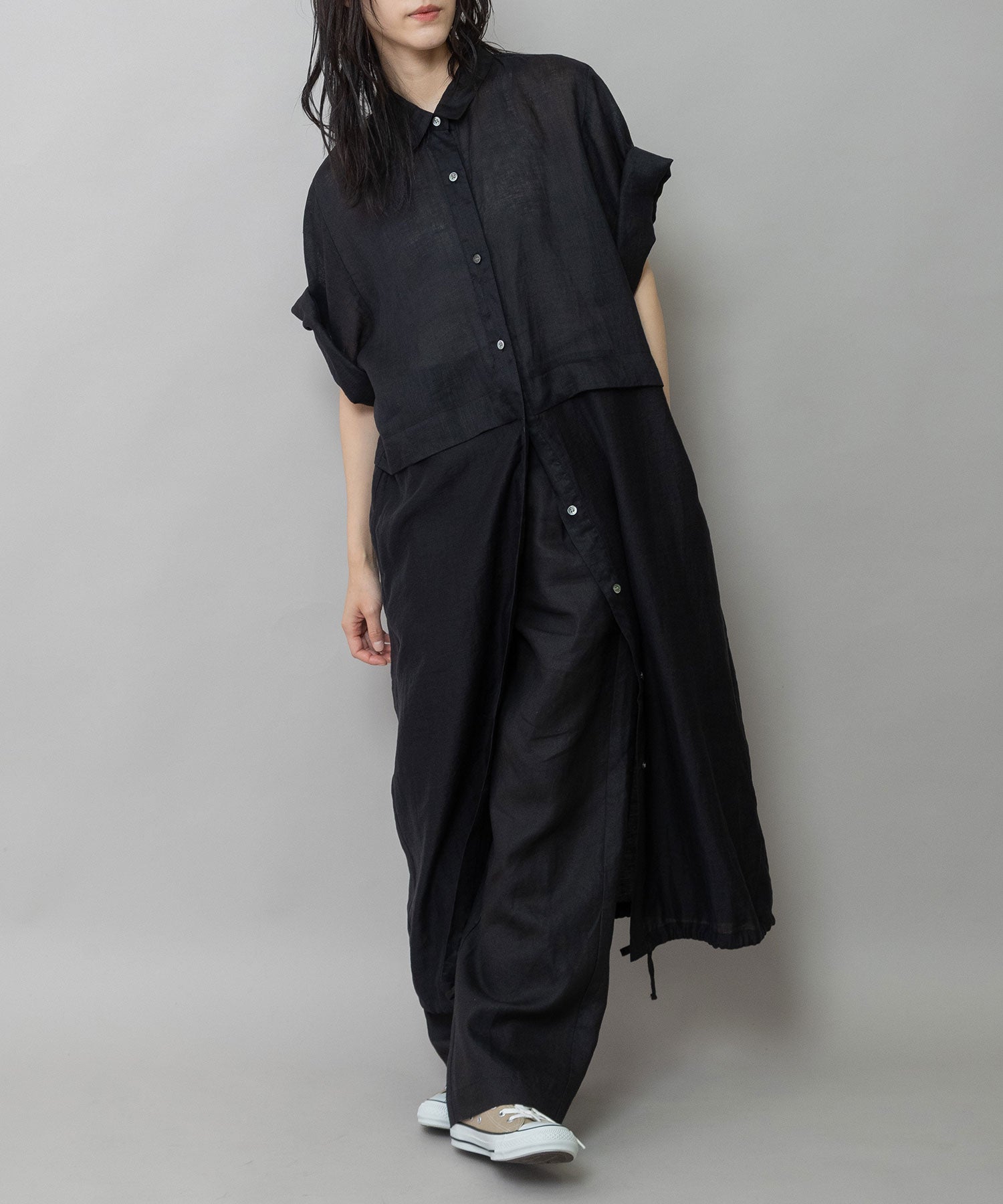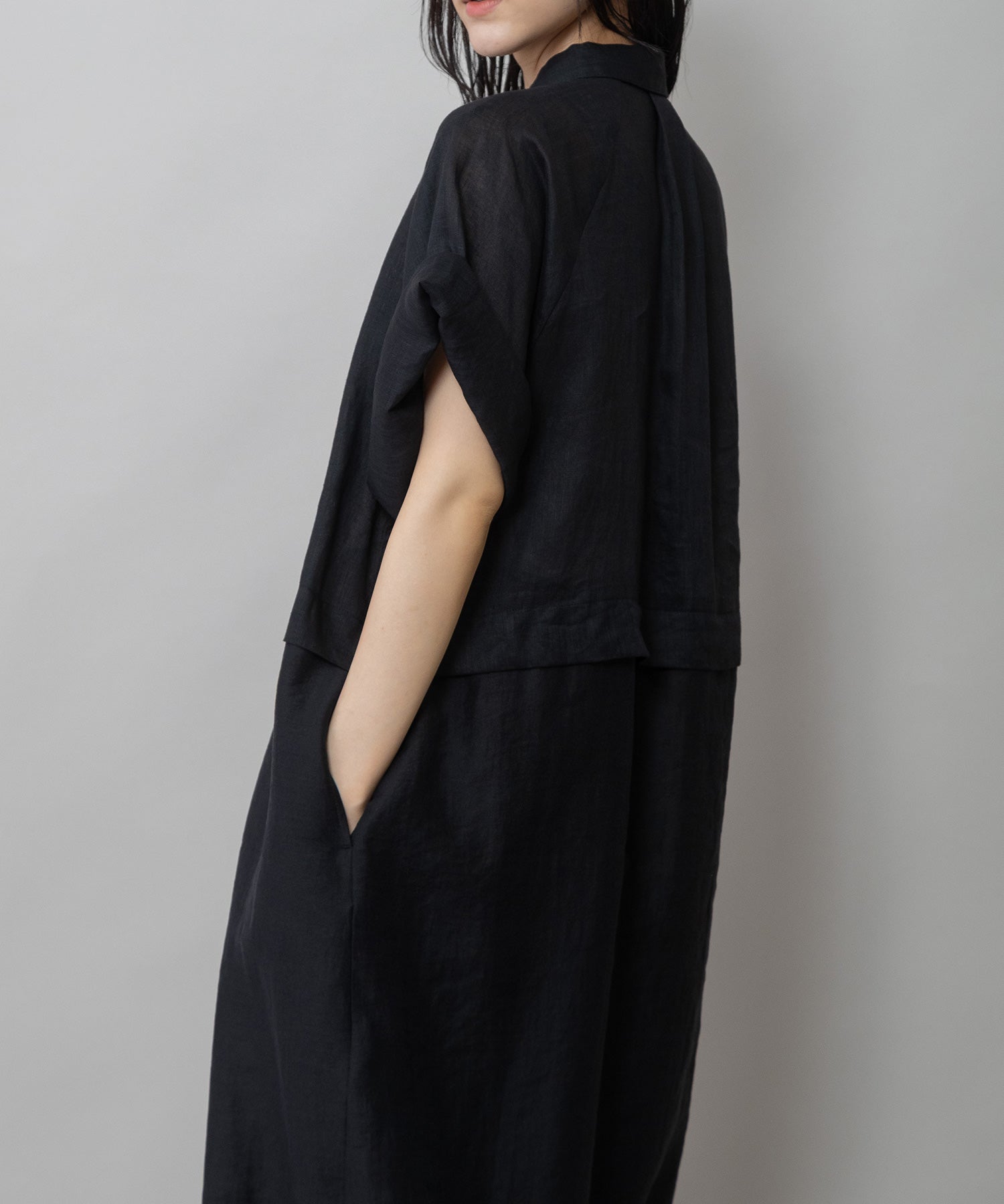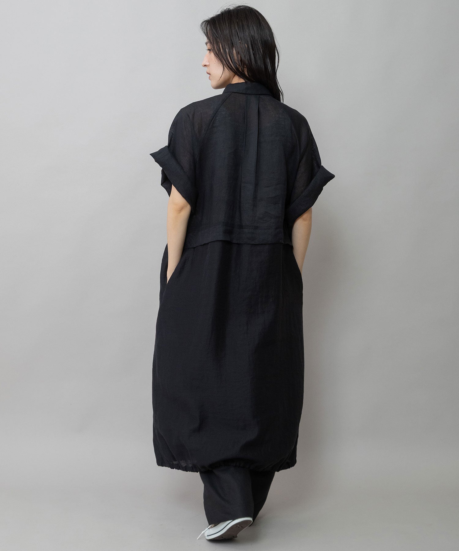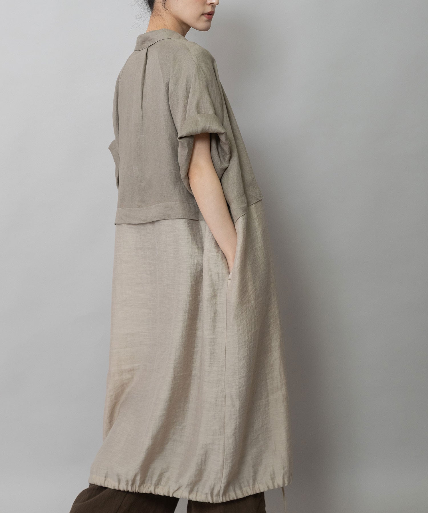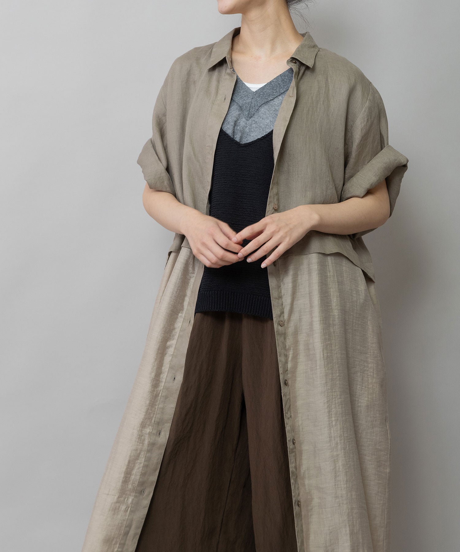 【吸水性】【発散性】60sフレンチリネン×シアーローンドッキングシャツワンピース