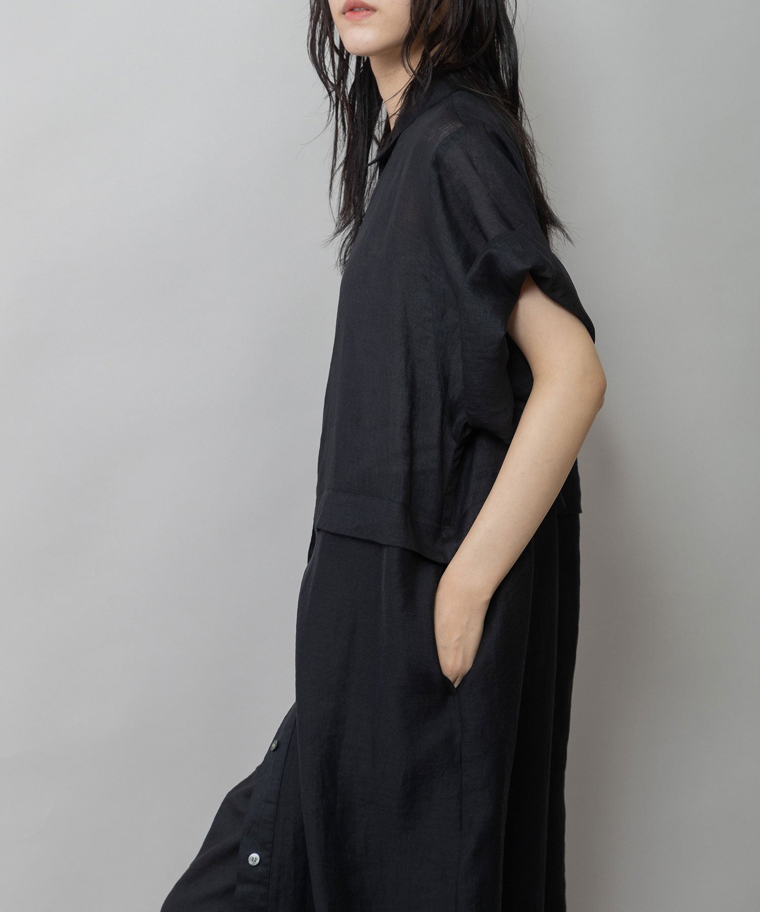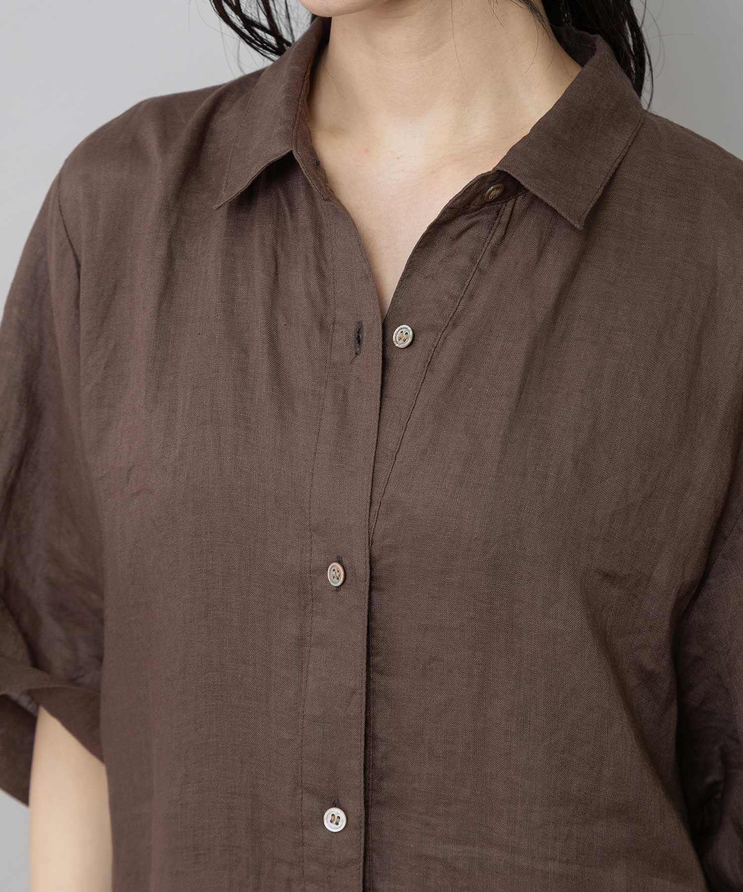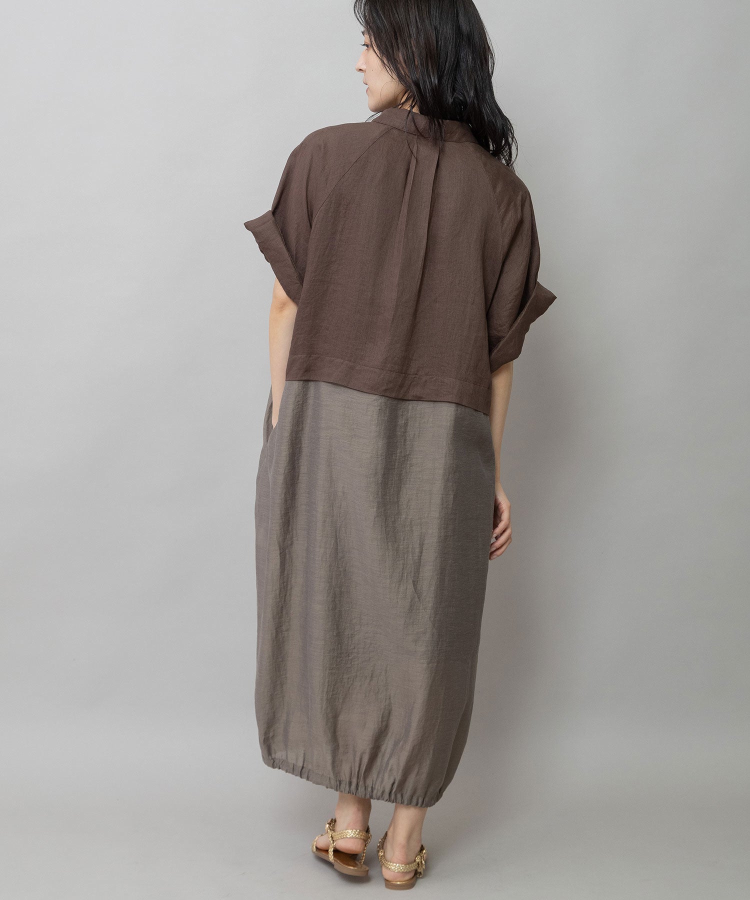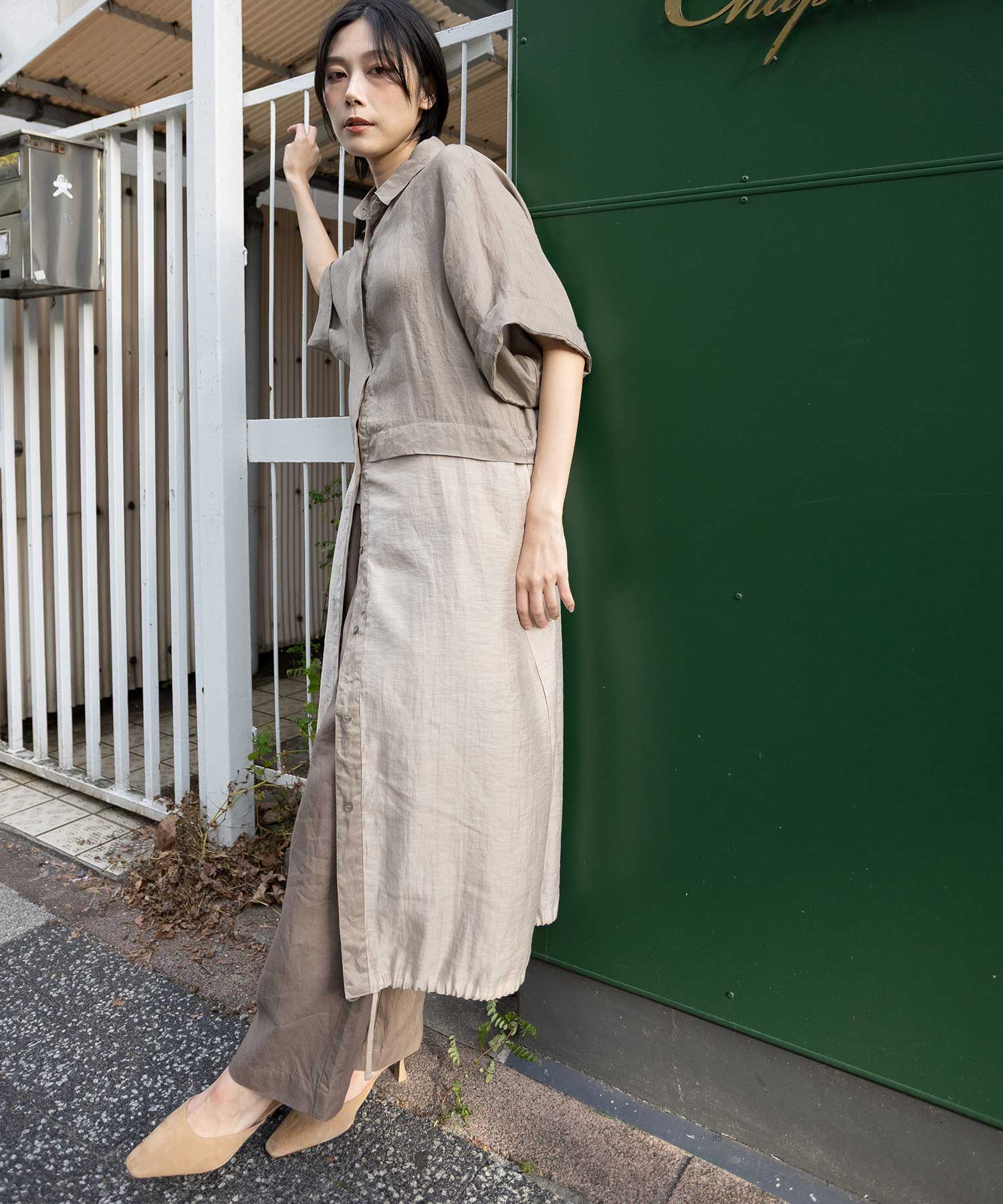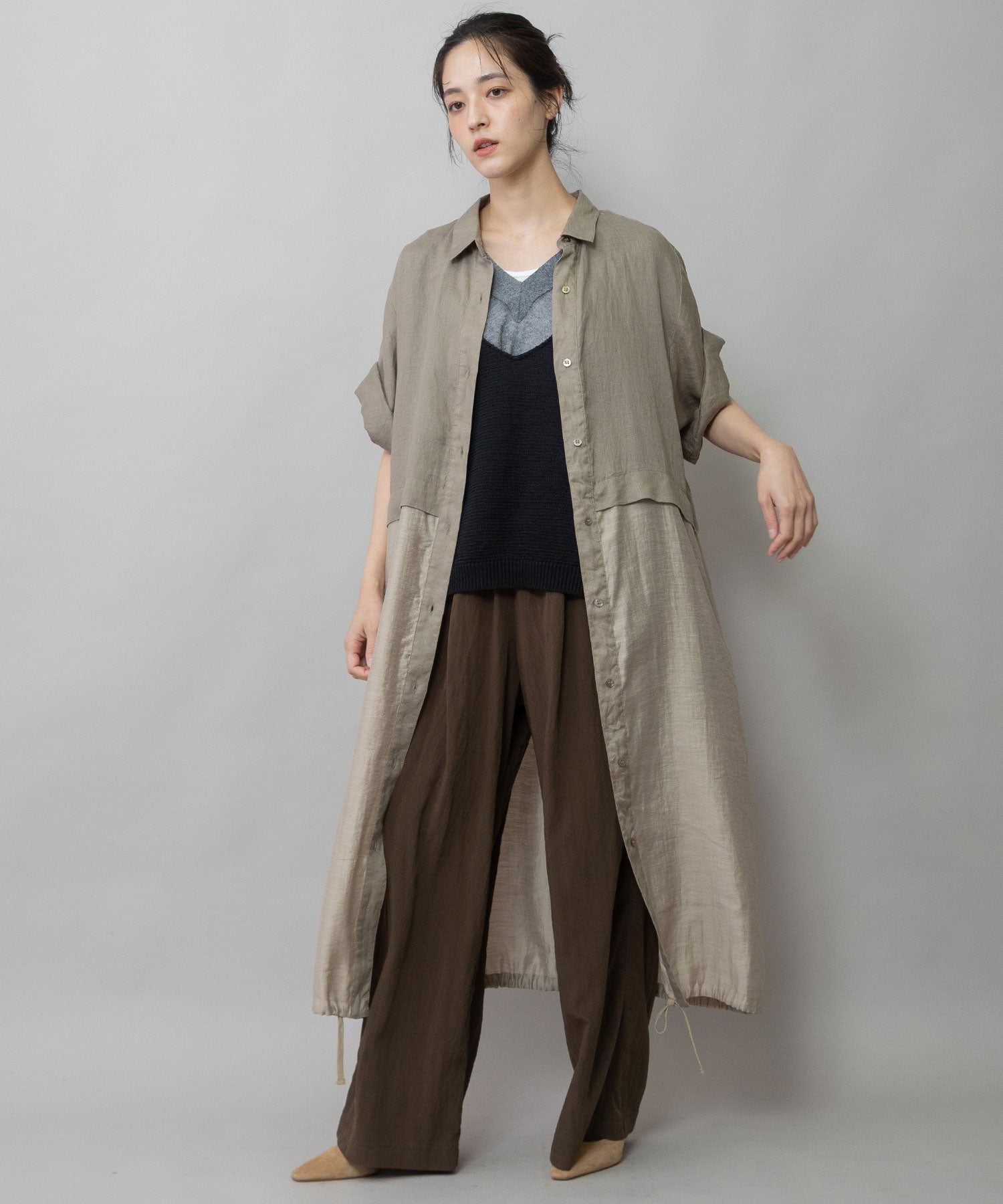 【吸水性】【発散性】60sフレンチリネン×シアーローンドッキングシャツワンピース