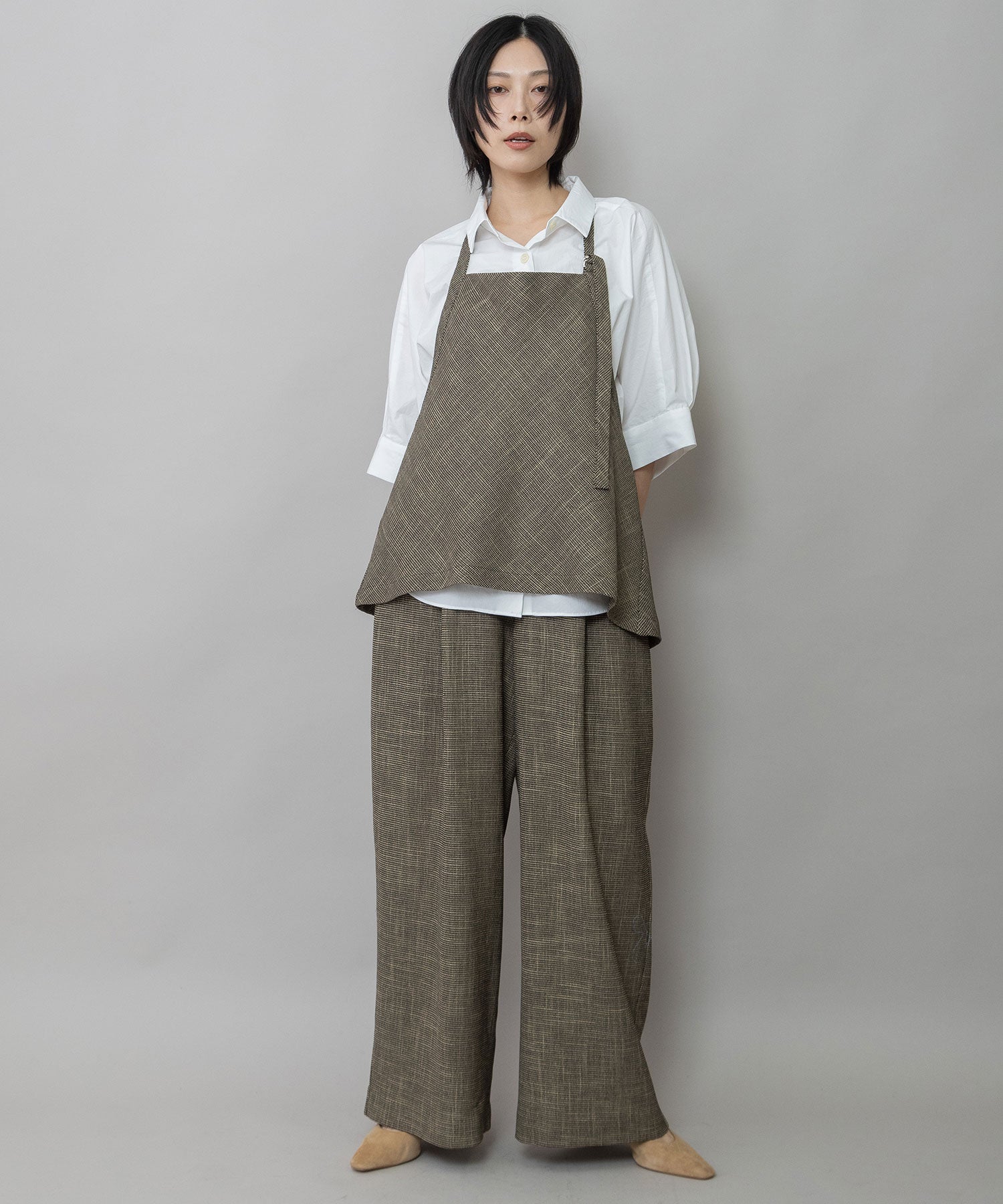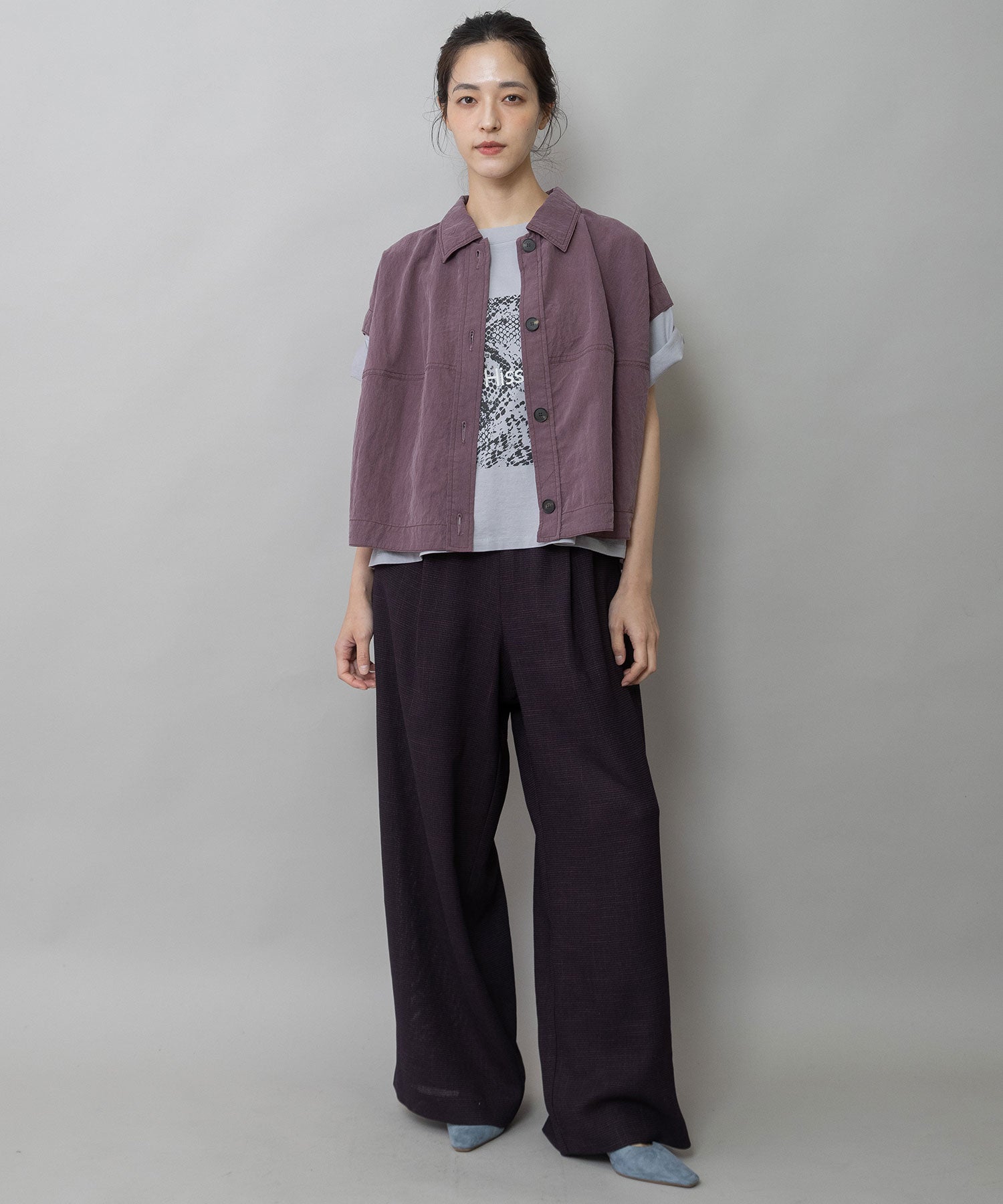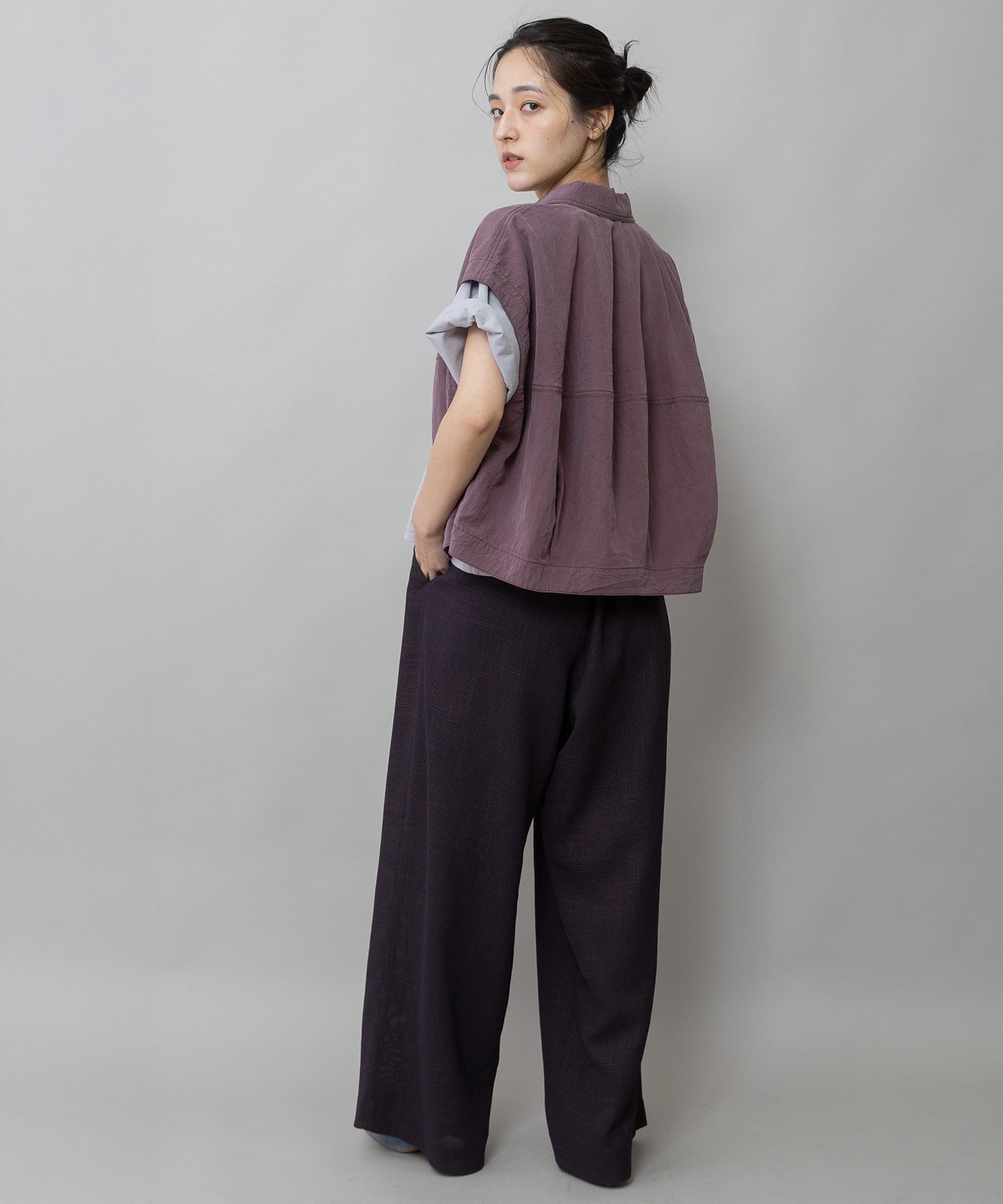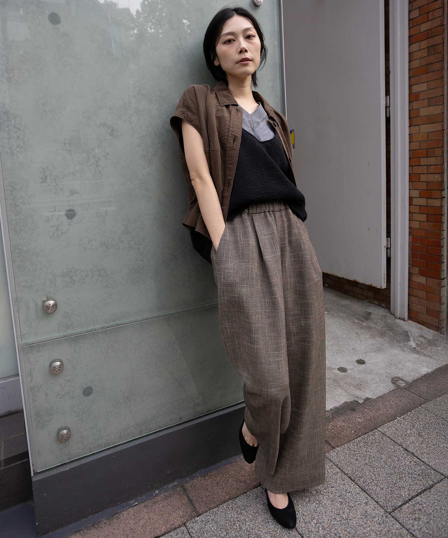 同素材のジレ(ブランド品番MN261B46)とのセットアップでトレンド感ある着こなしもオススメです。