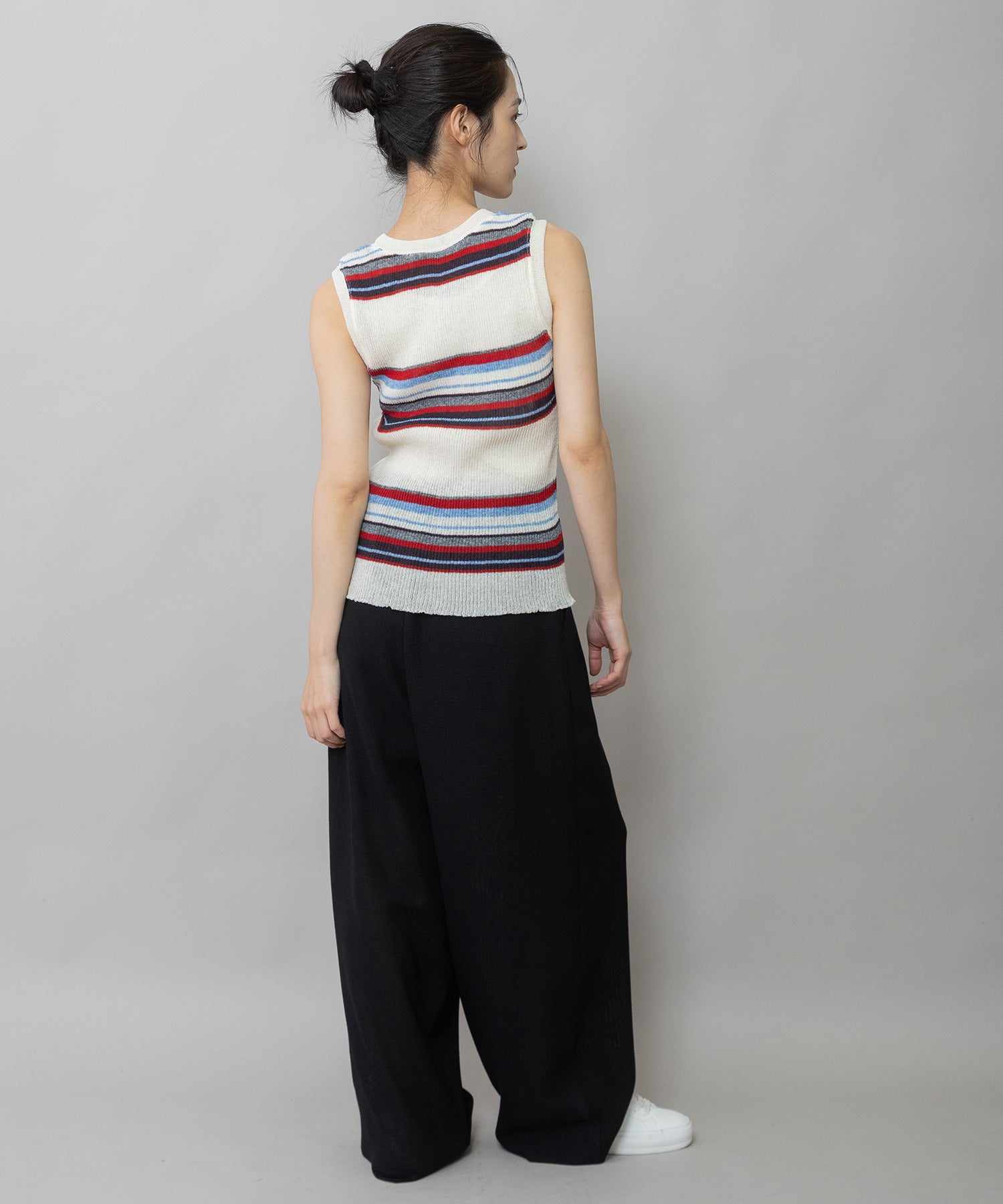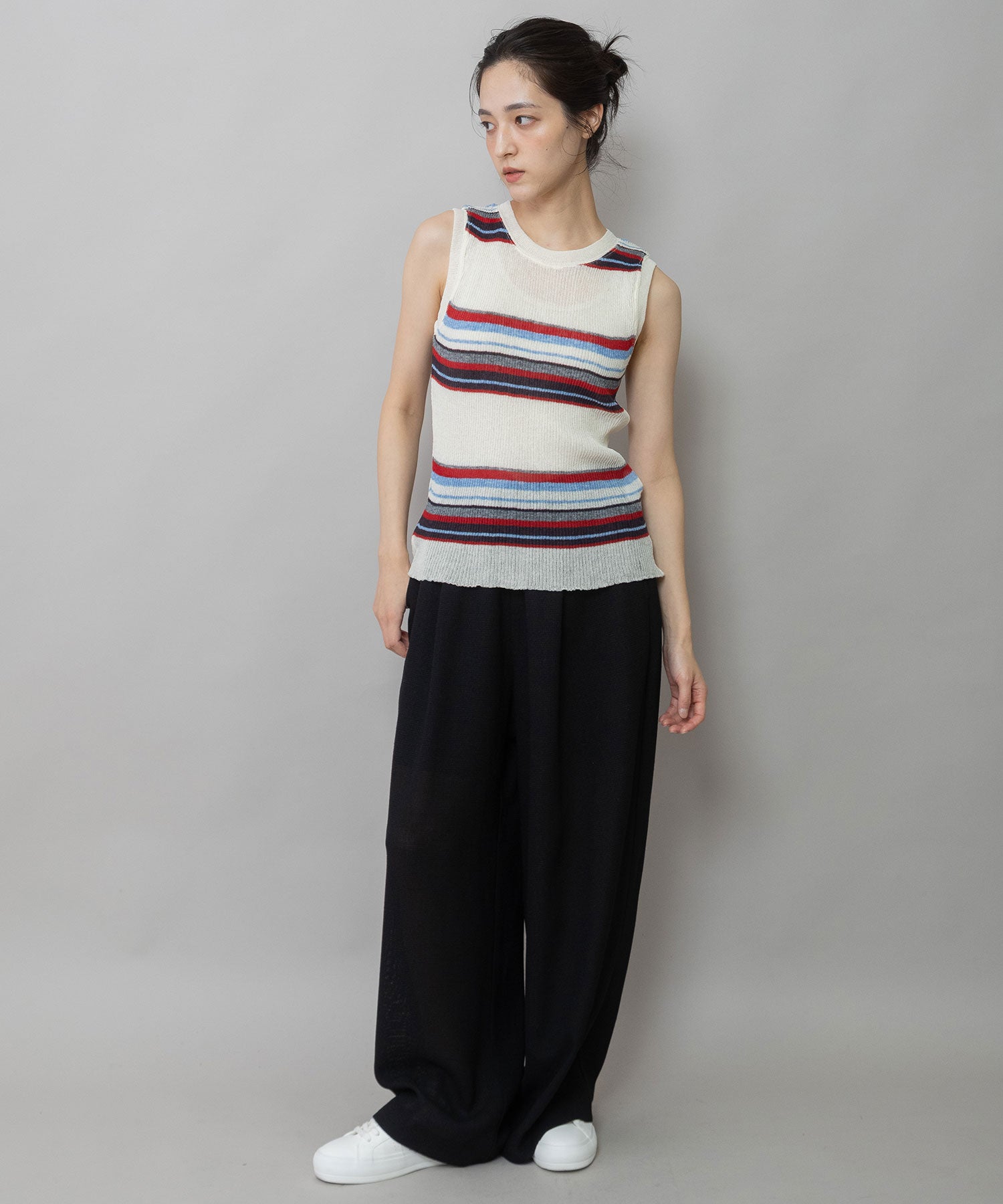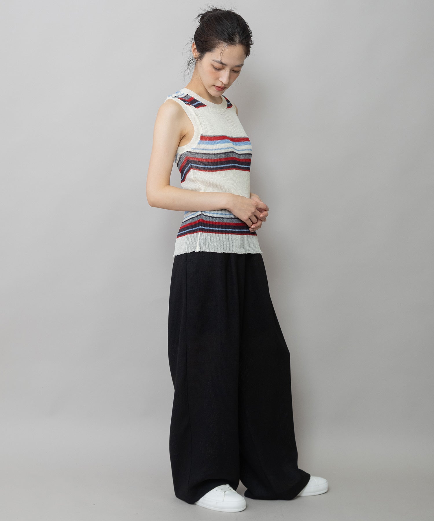 ショート丈やコンパクトなトップスと相性がよく、タンクトップやTシャツからブラウス合わせまで幅広いアイテムと組み合わせできるアイテムです。