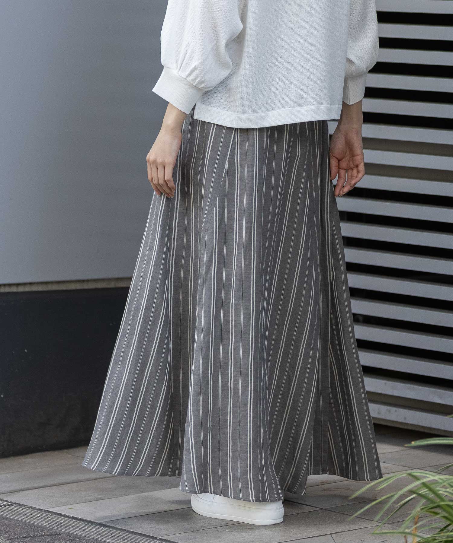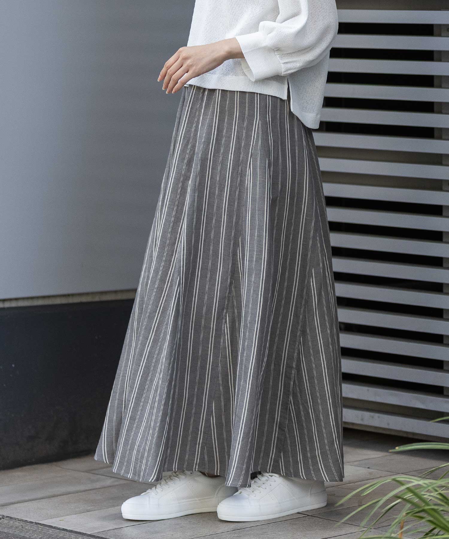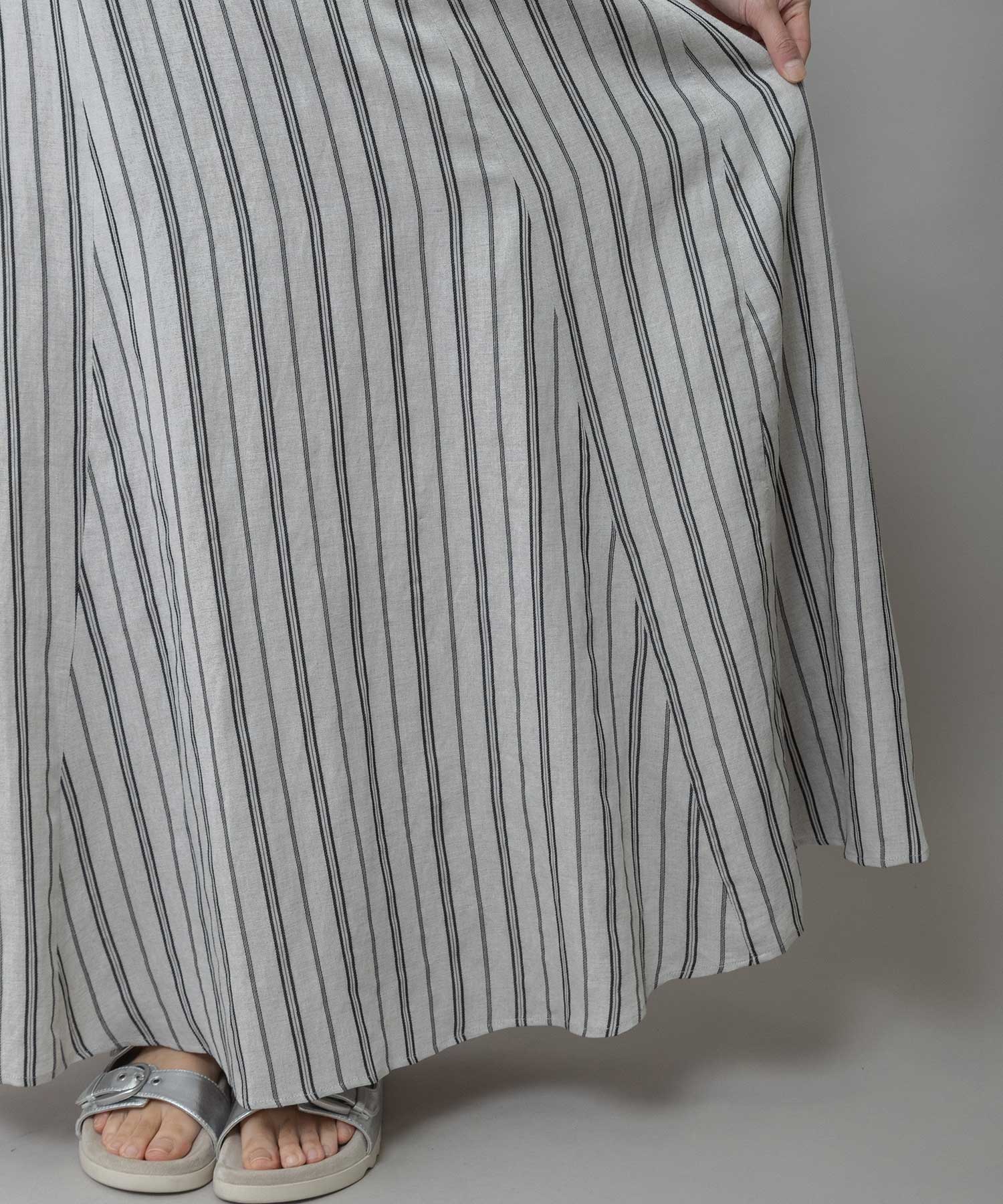 リネンビスコースマルチストライプフレアスカート