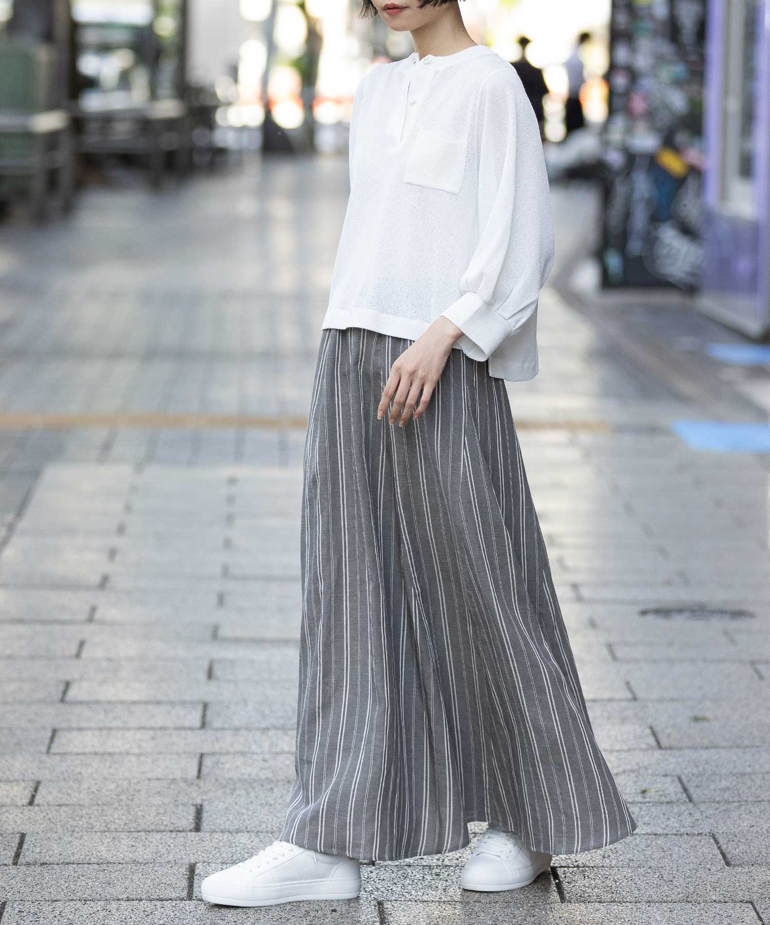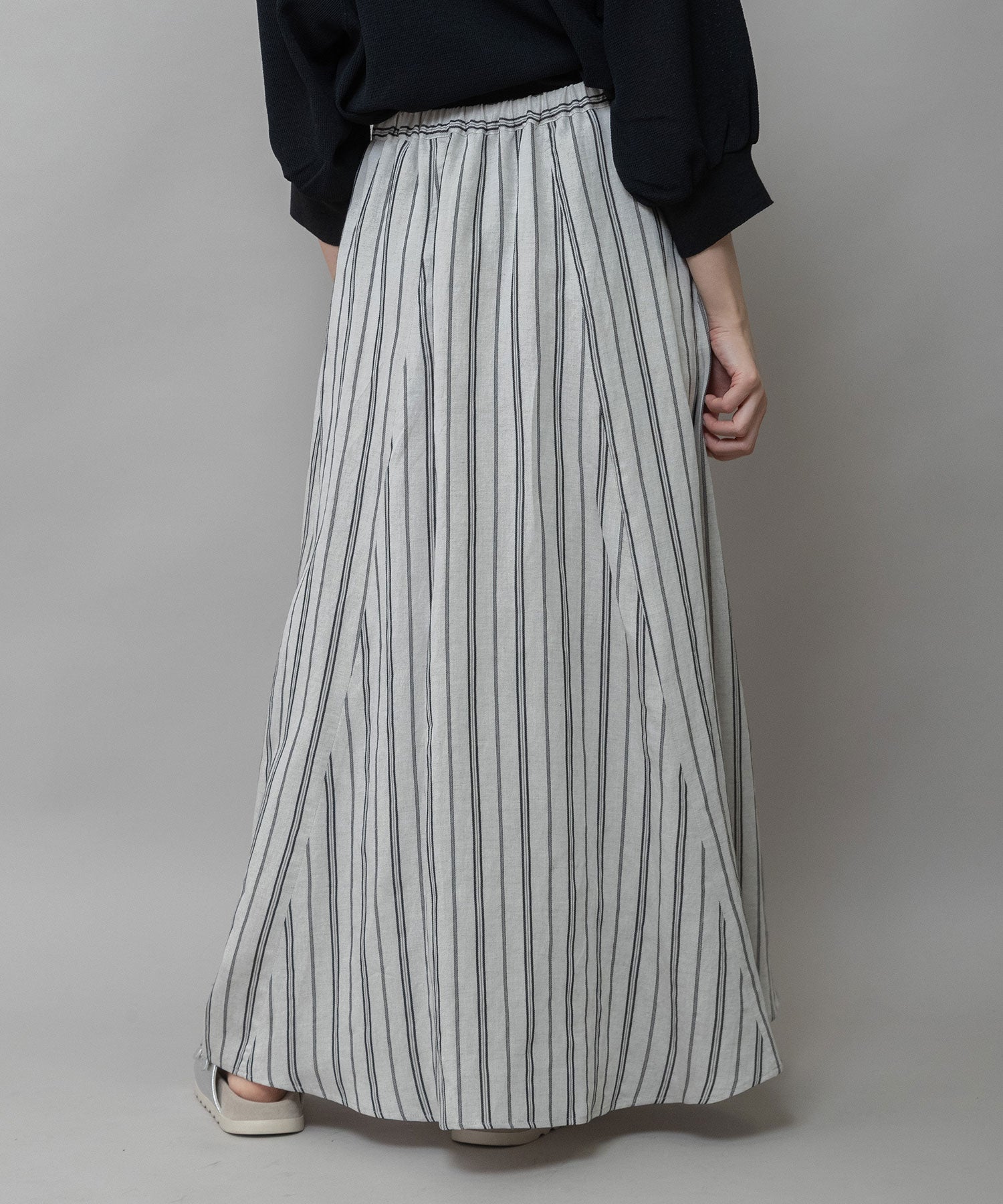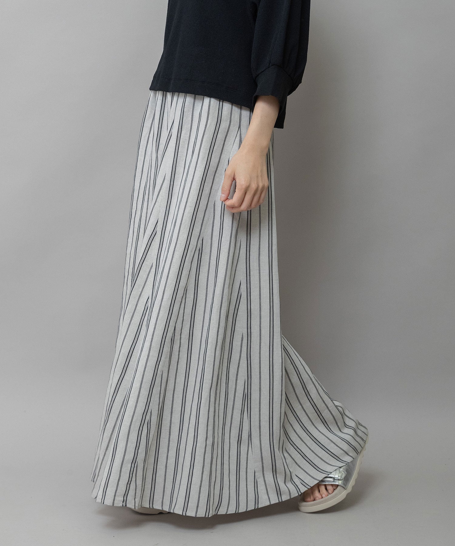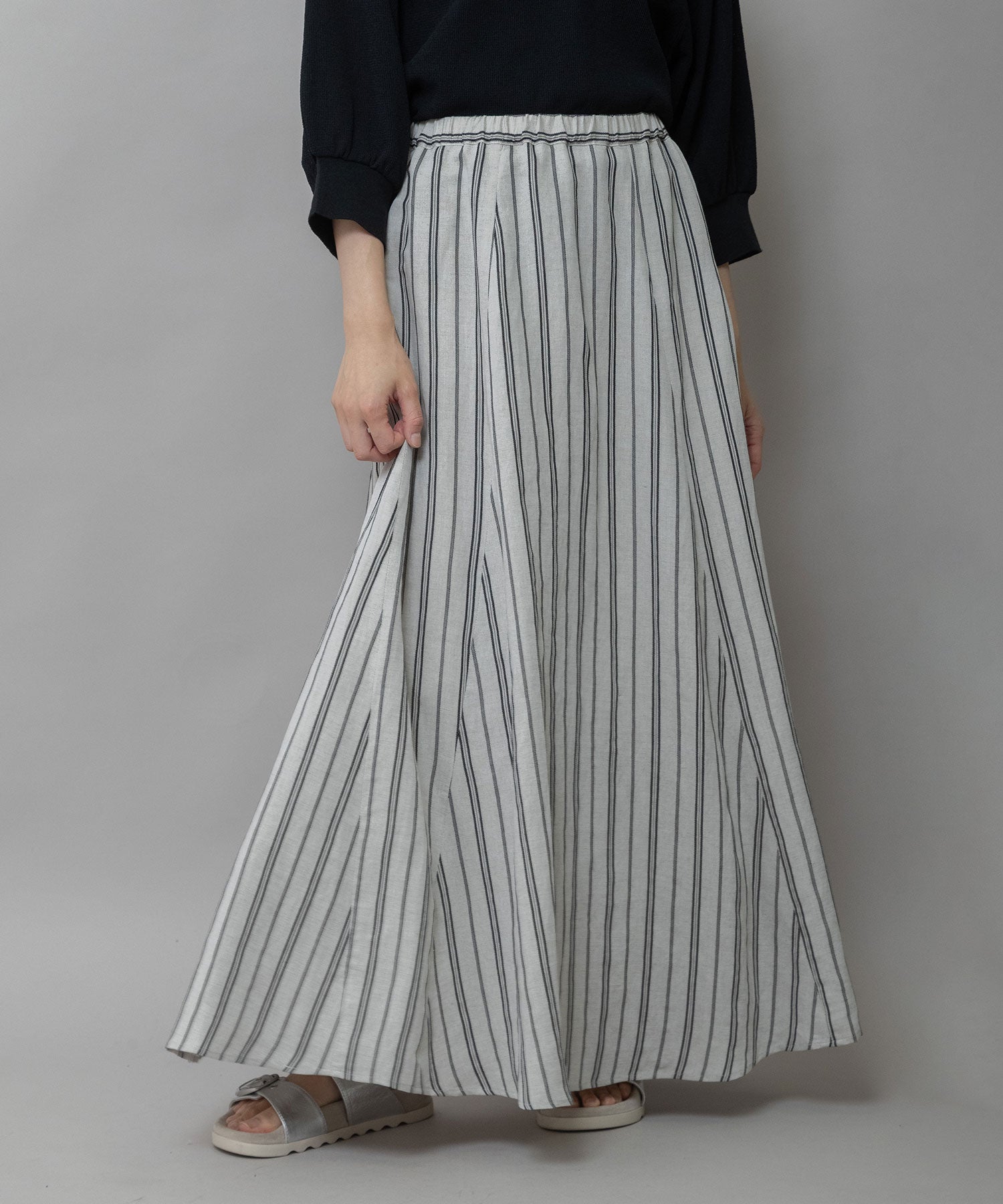 リネンビスコースマルチストライプフレアスカート