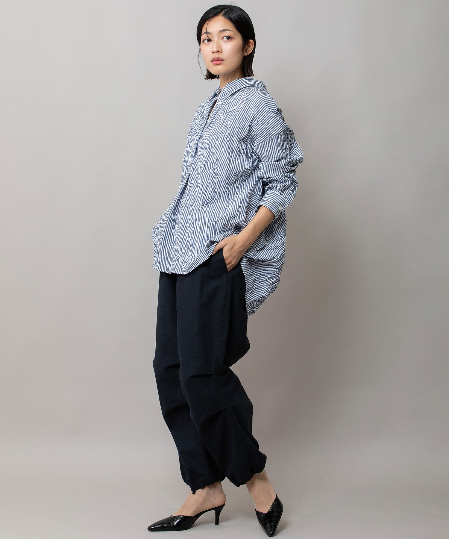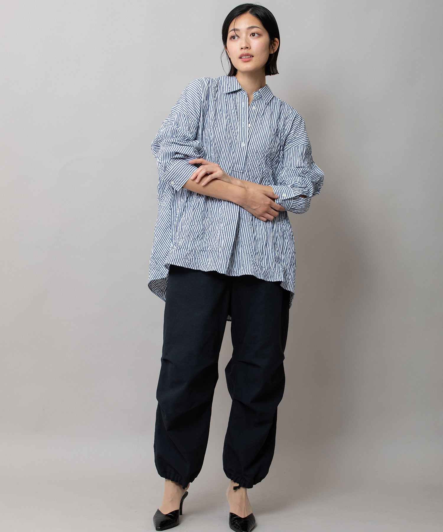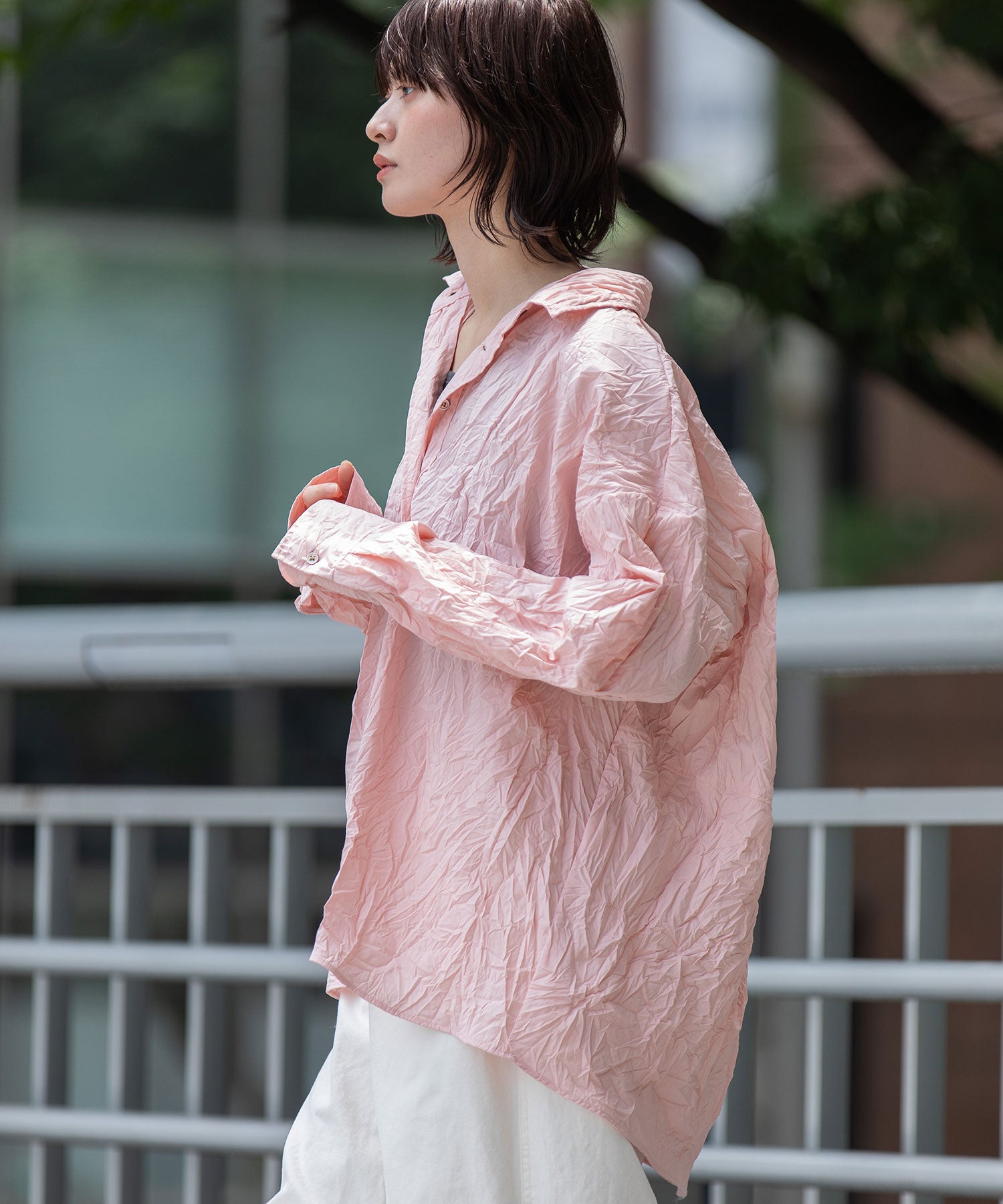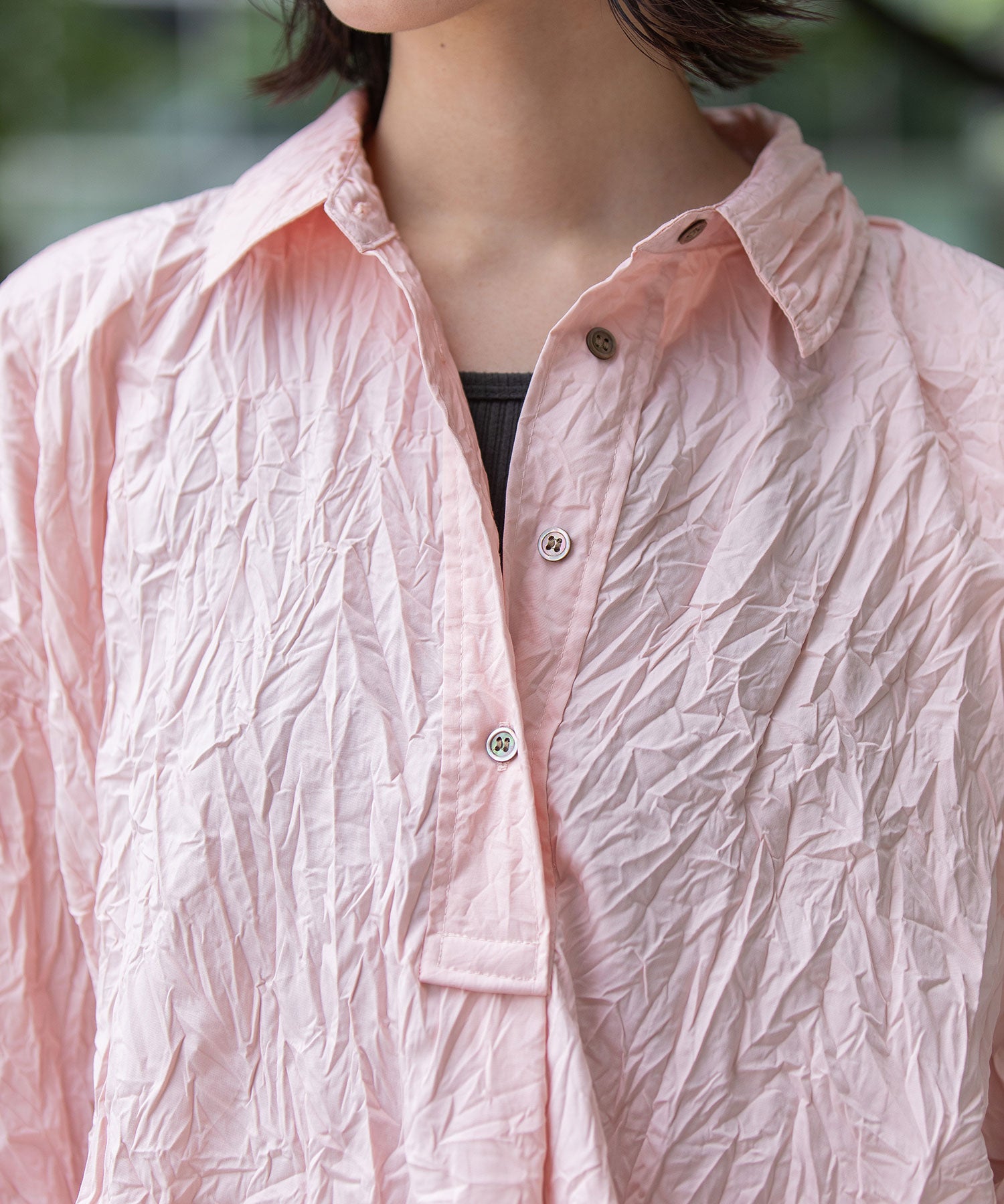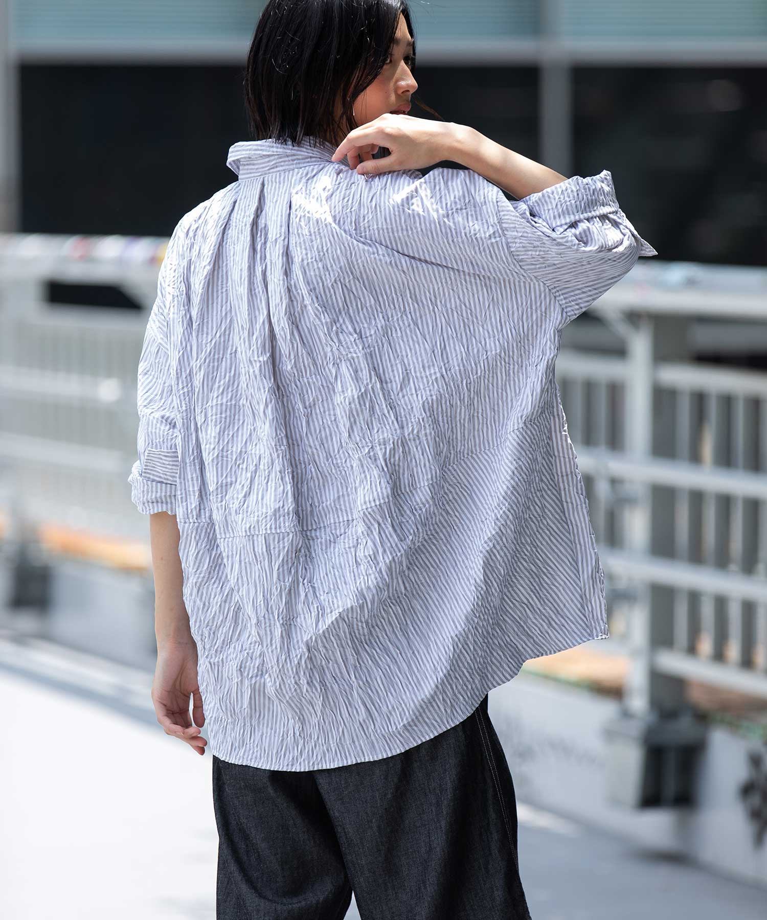 ◆キャッチワッシャーでニュアンスをつけたほんのりバルーンヘムのショートシャツ◆