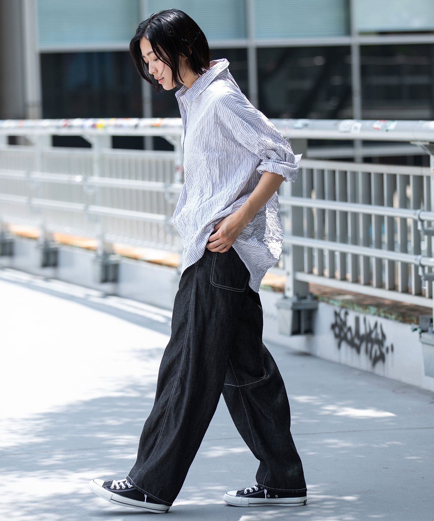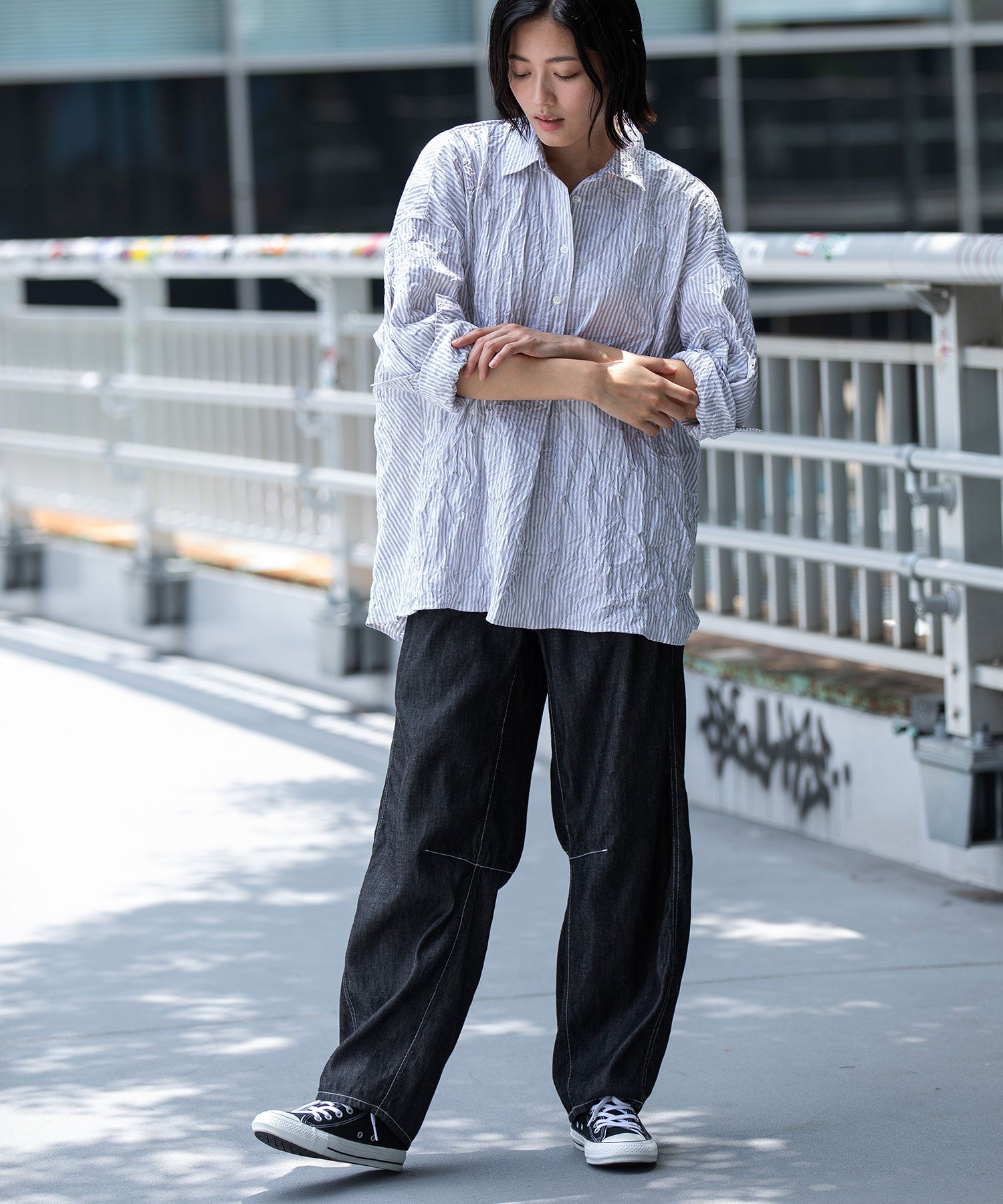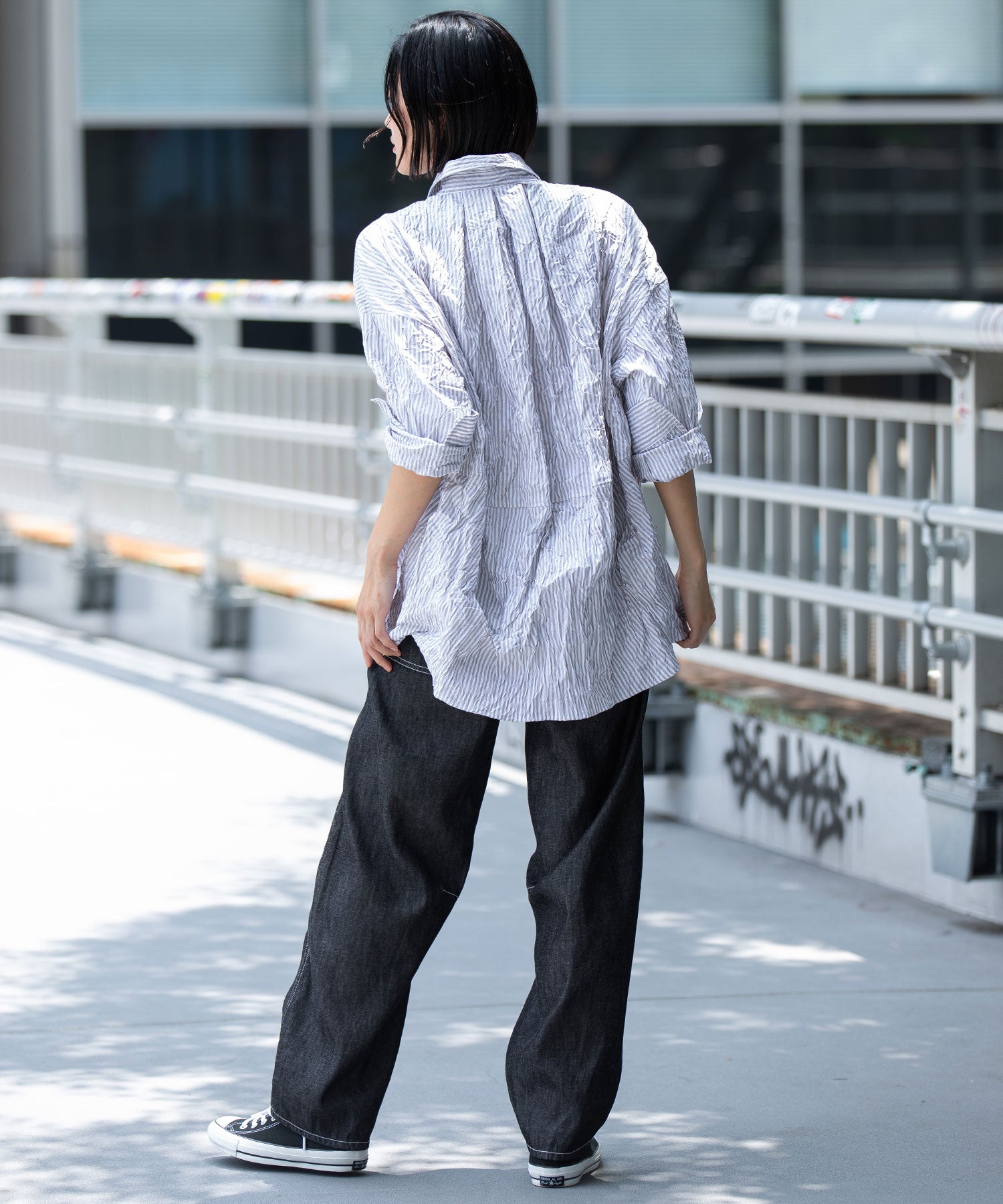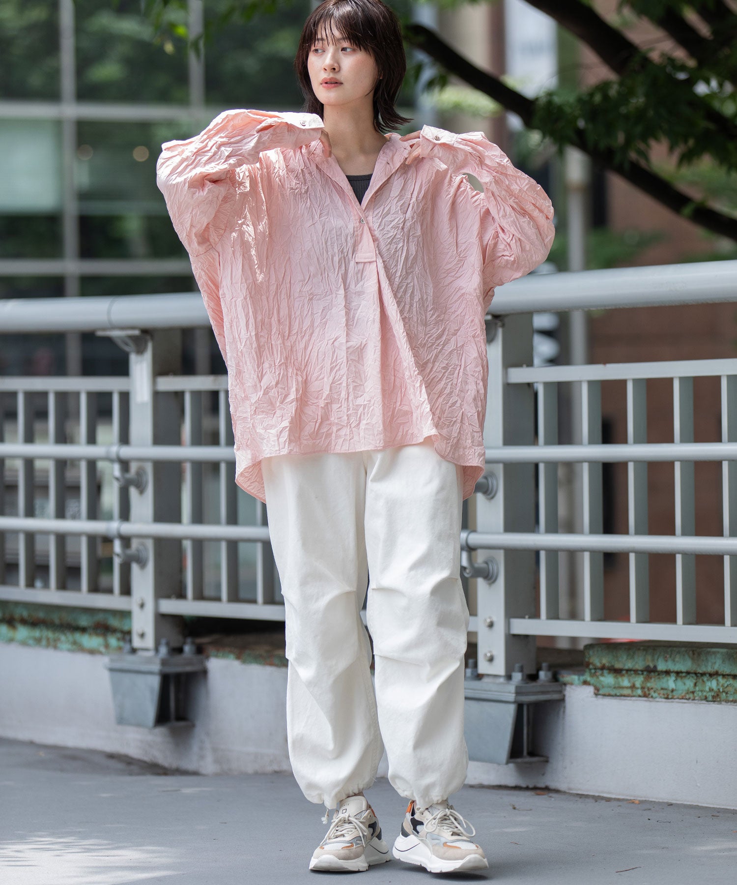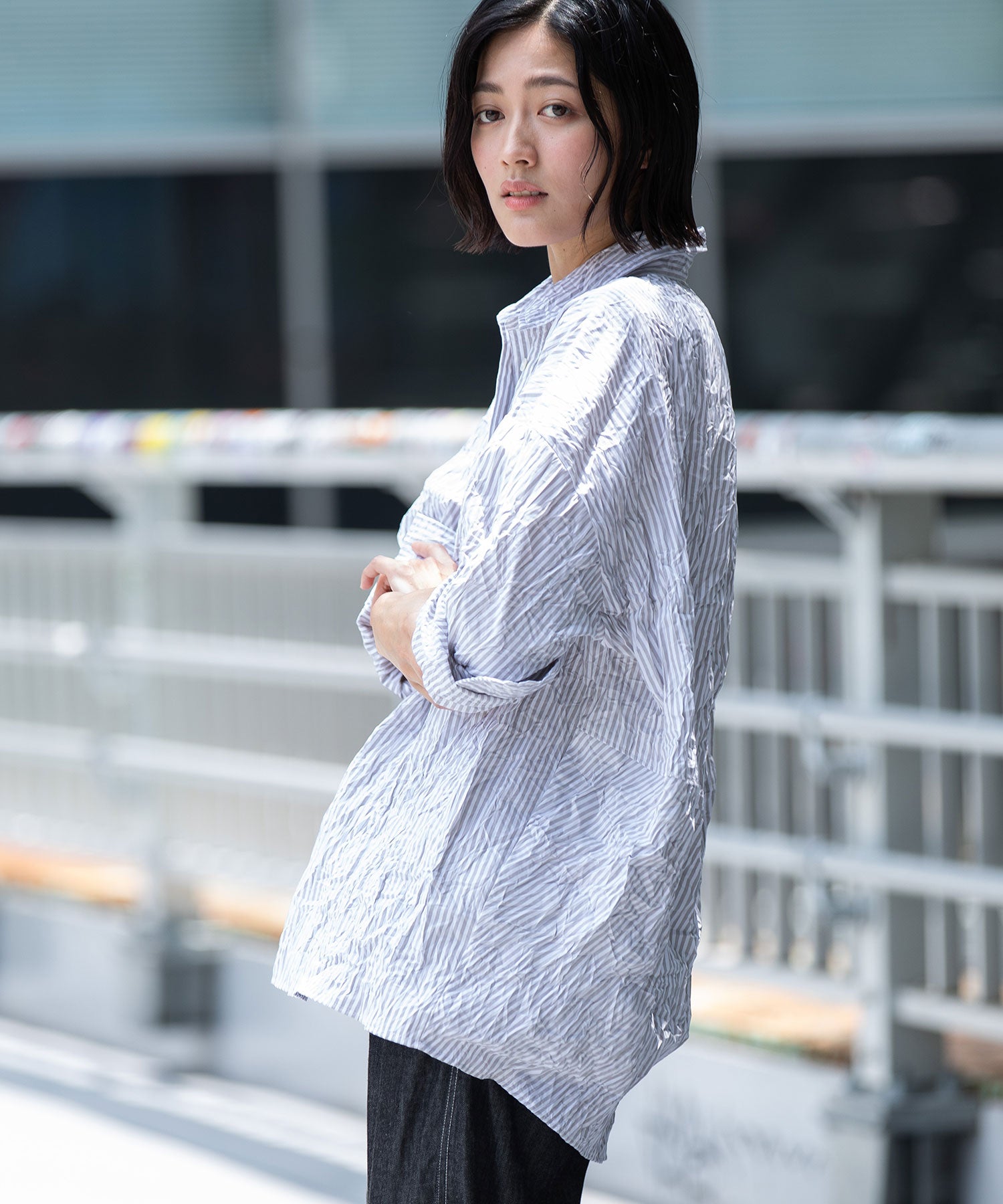 ◆キャッチワッシャーでニュアンスをつけたほんのりバルーンヘムのショートシャツ◆