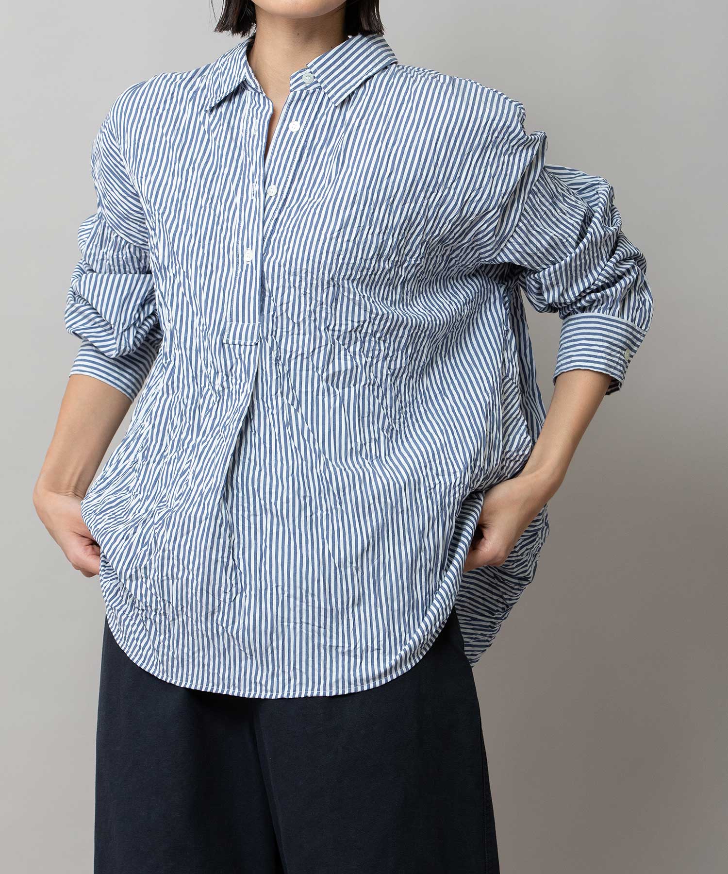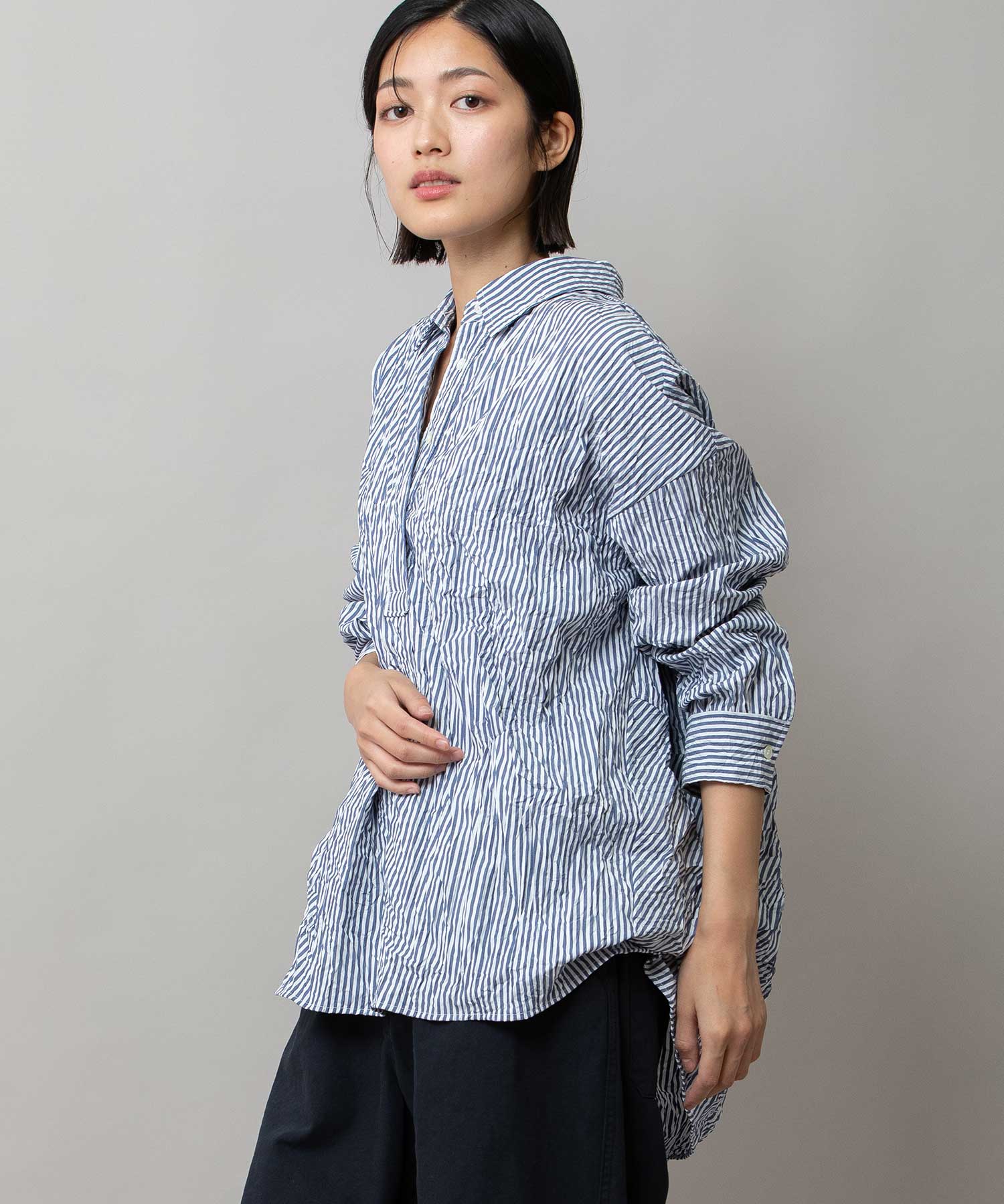 ワッシャーブロード&ストライププルオーバーシャツ