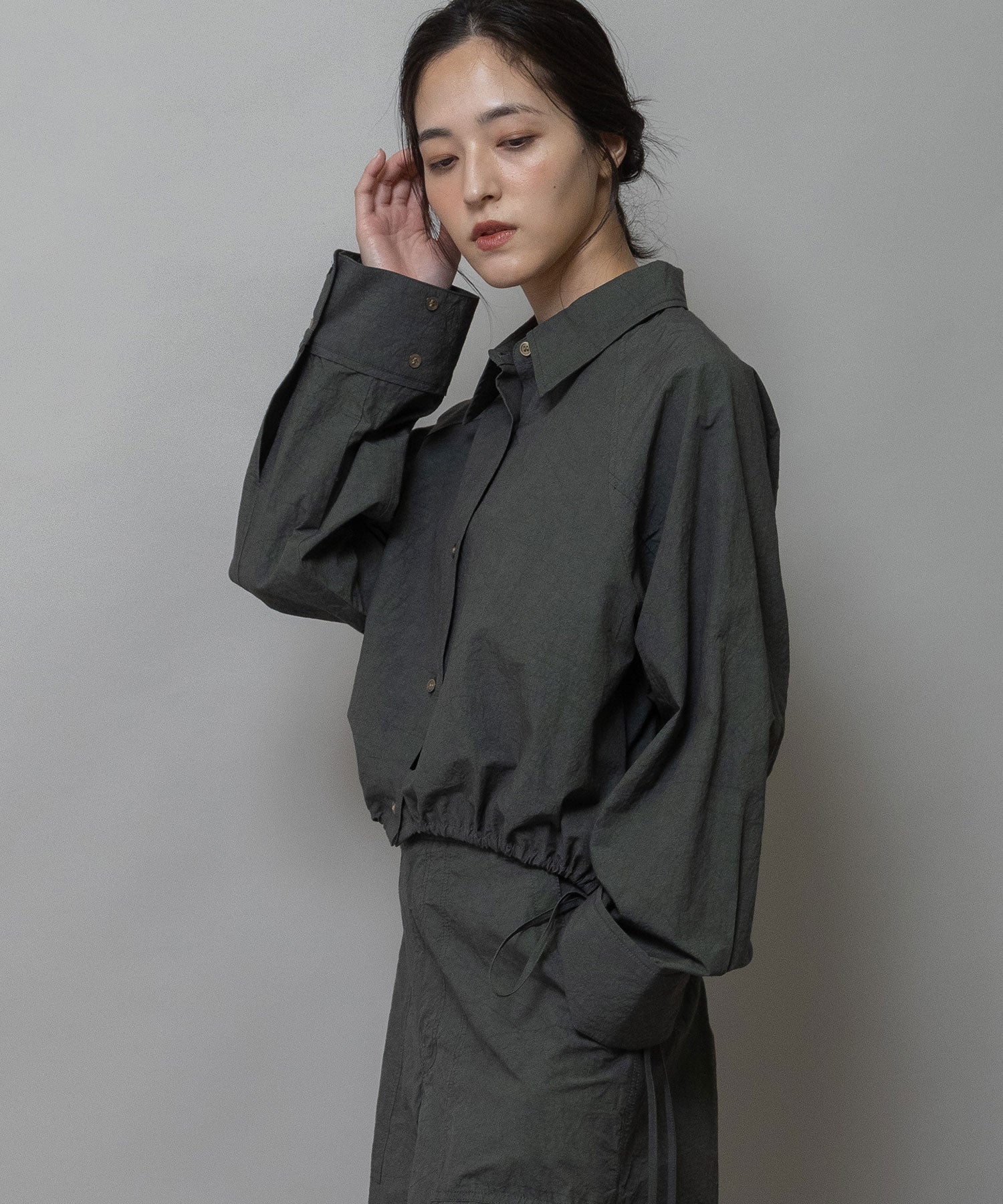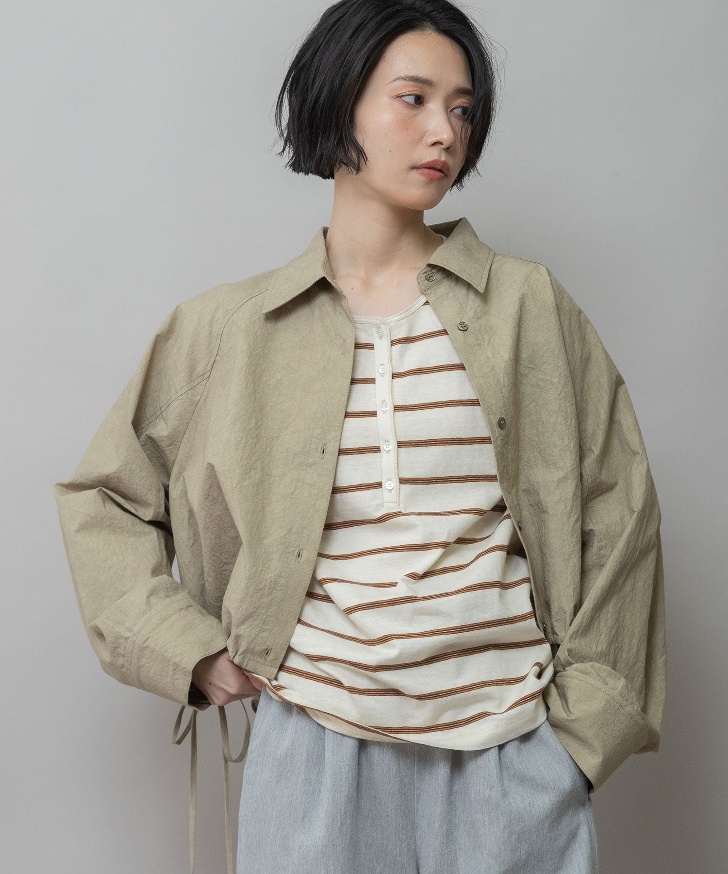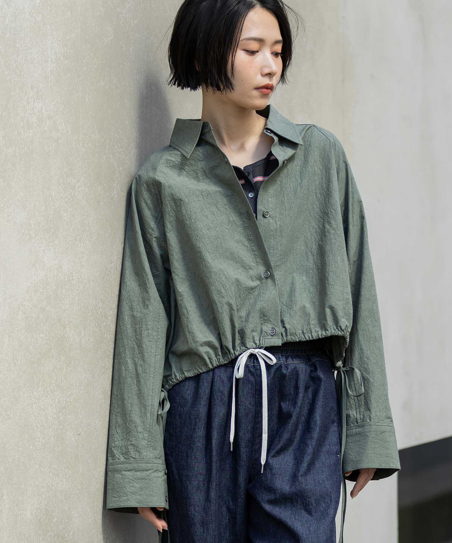 ◆小技の効いたディティールでシルエットの変化も楽しめるライトアウター感覚のクロップドシャツ◆
