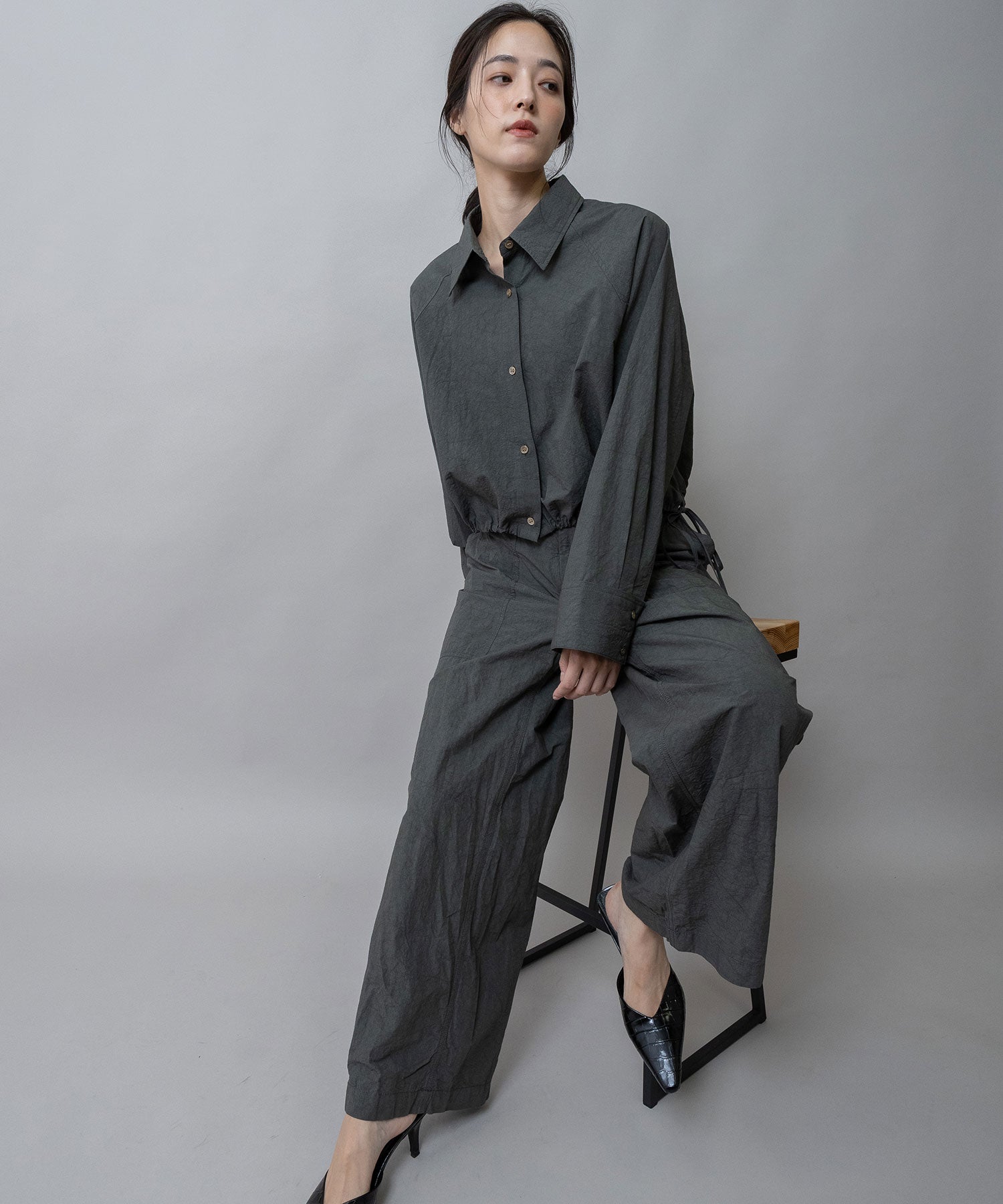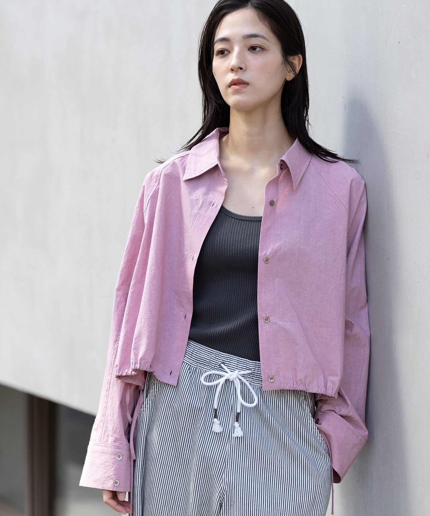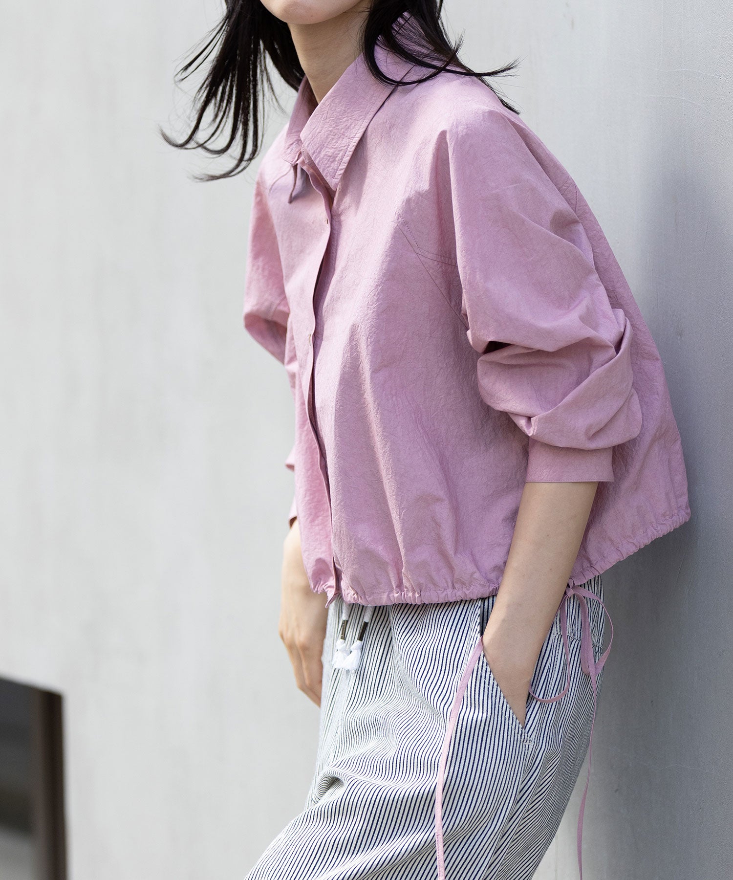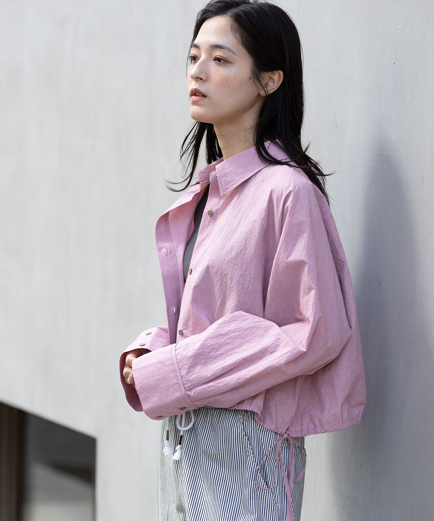◆小技の効いたディティールでシルエットの変化も楽しめるライトアウター感覚のクロップドシャツ◆