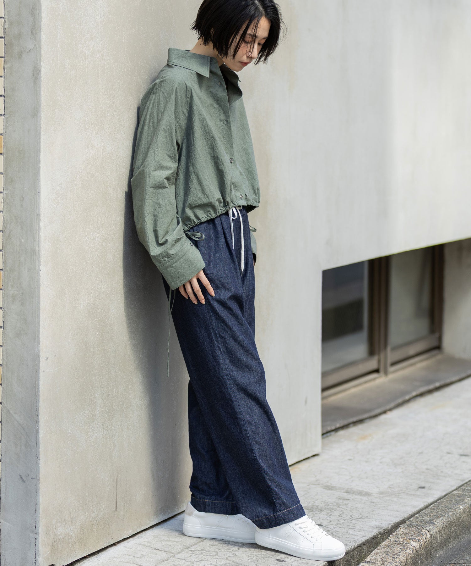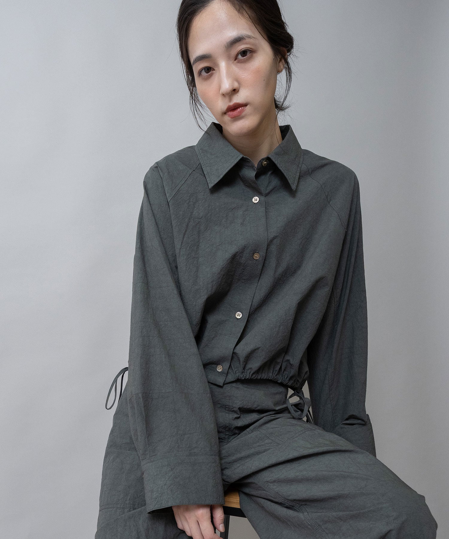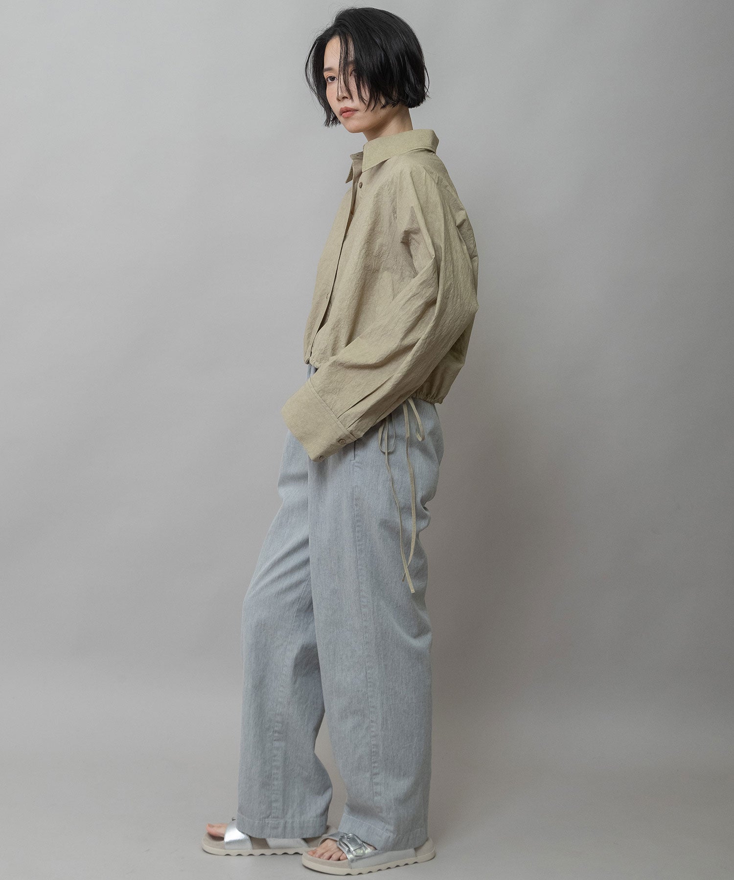 クロップド丈と太めの袖でバランス良く仕上げたショートシャツ。