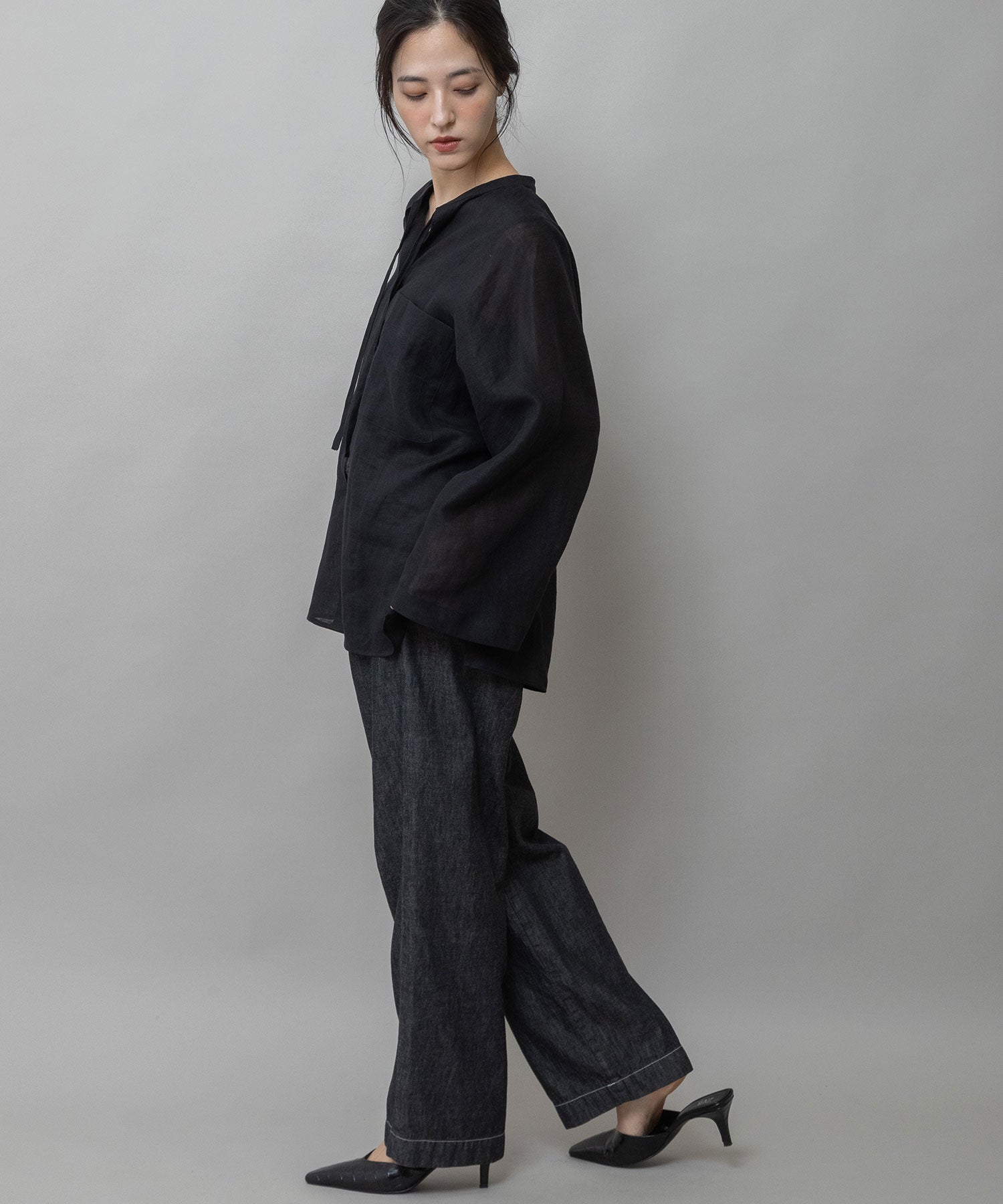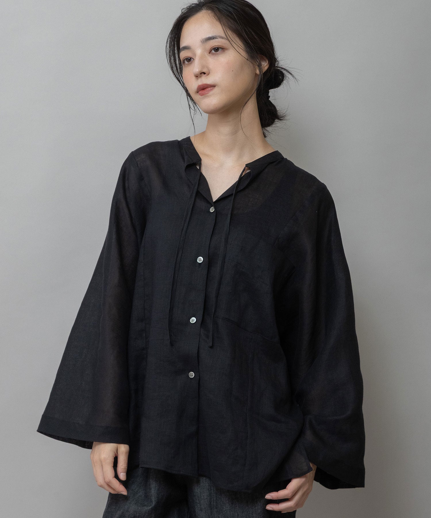 ■ブラック:深みのあるブラックがリネン素材と相まってモード感と抜け感を両立したカラー
