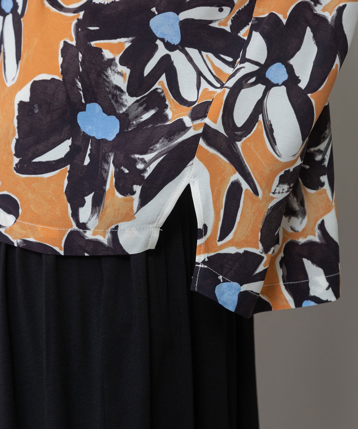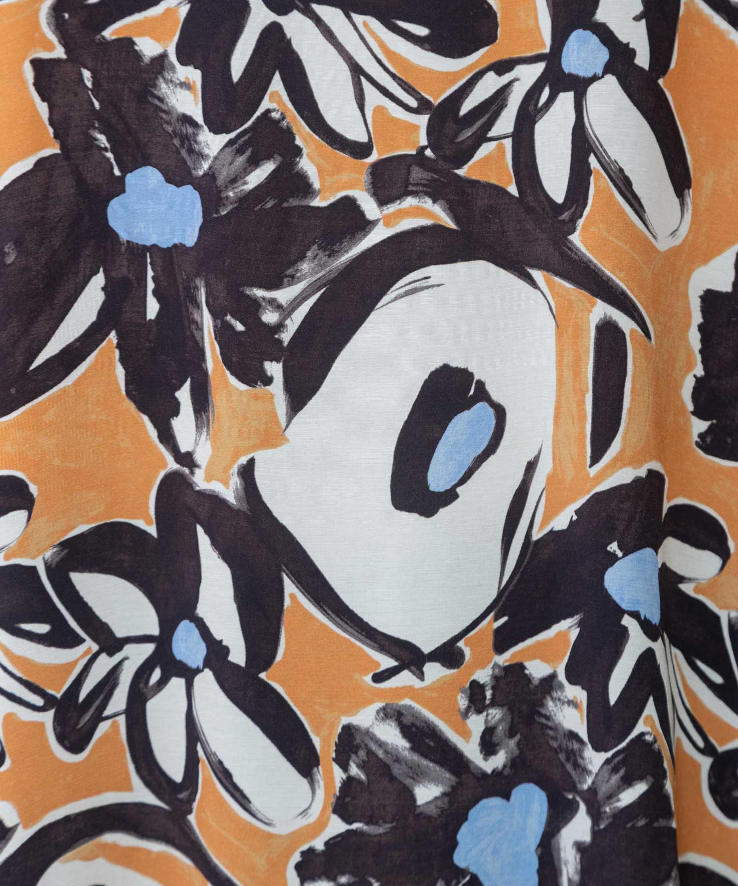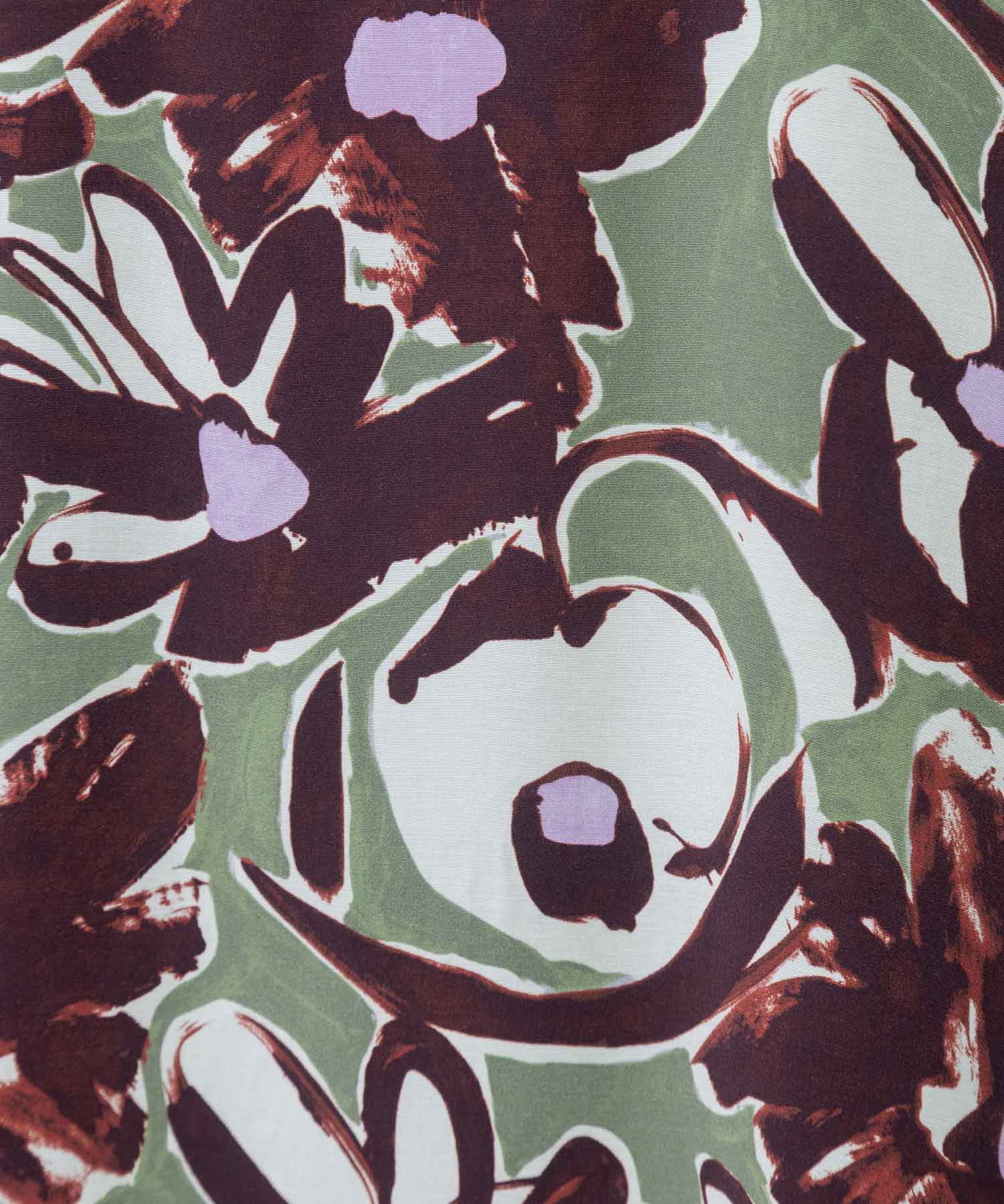 絵画のようなタッチの花柄プリントをのせ、インパクトがありながら上品で落ち着いた雰囲気をまとった素材となっています。