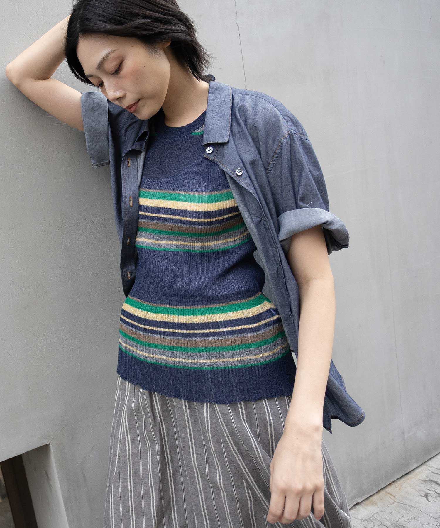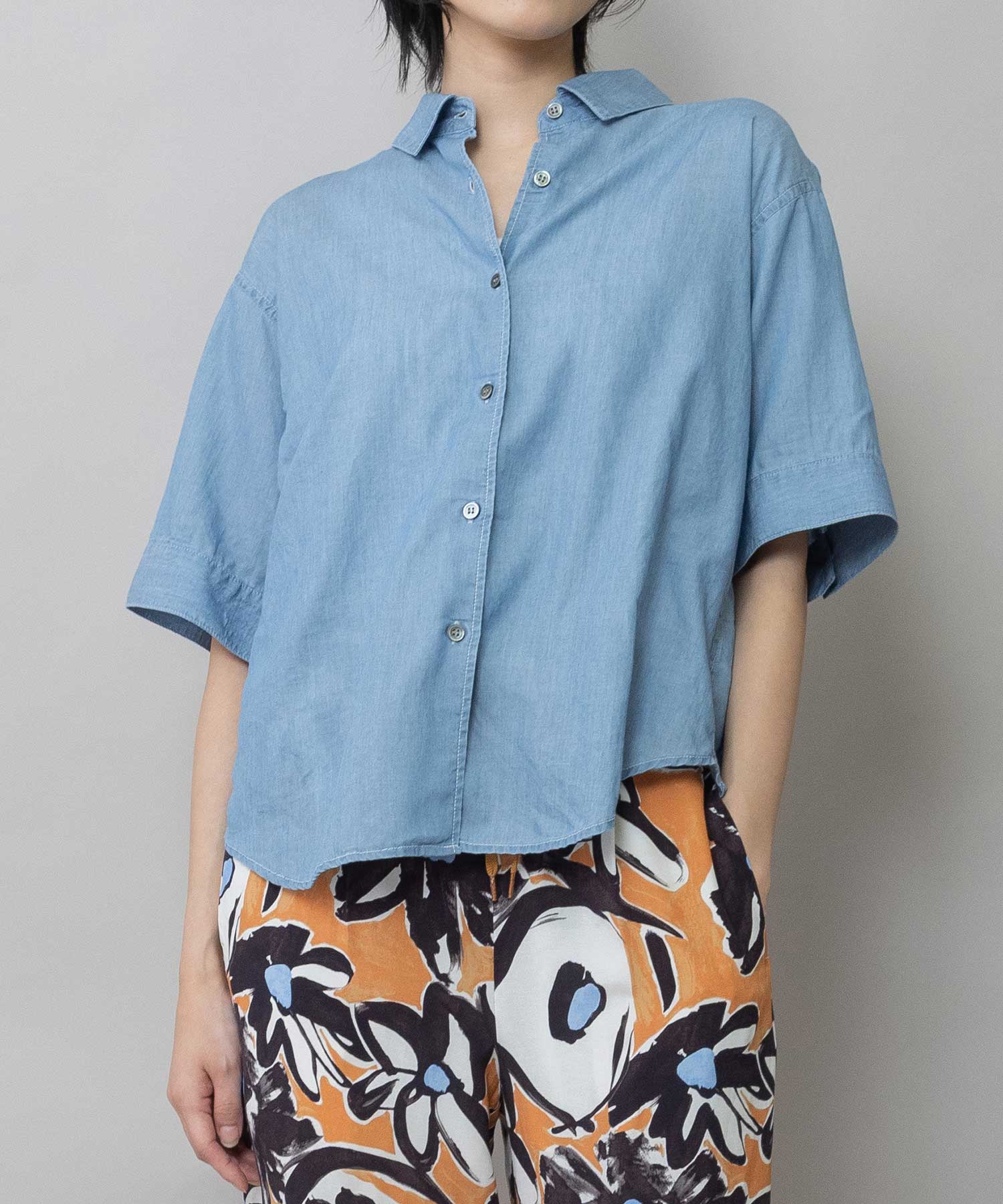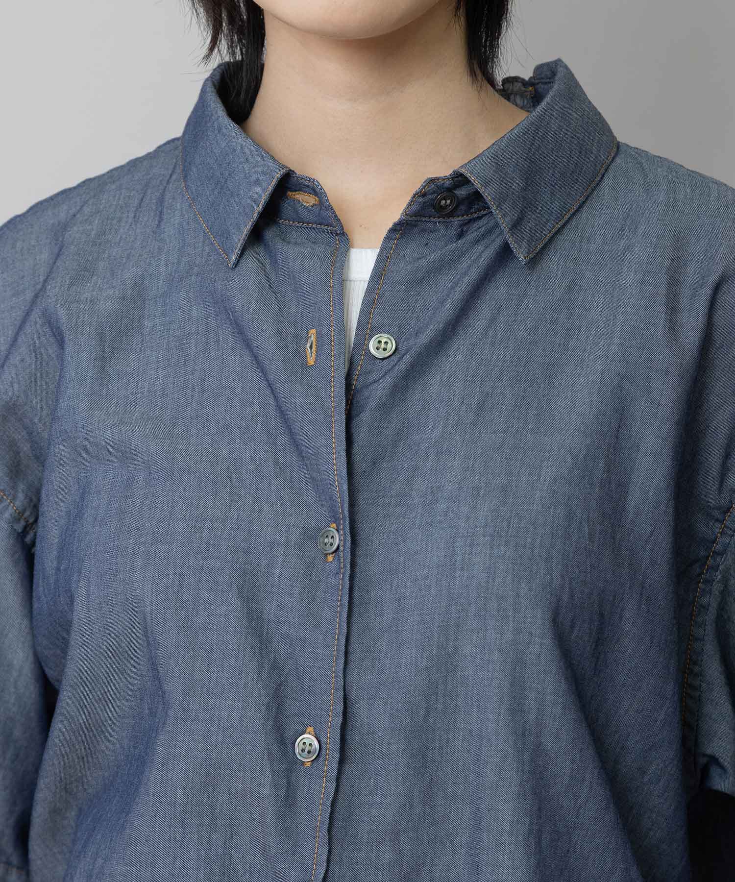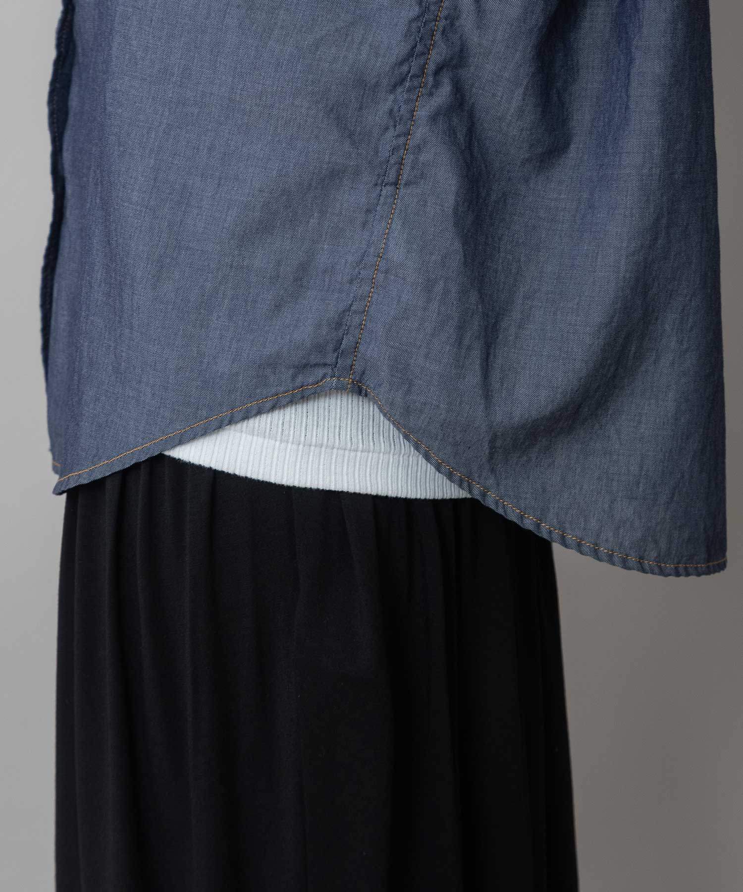 ◆デニムなのにほのかにシアーでエアリーなバックシャーリングシャツ◆