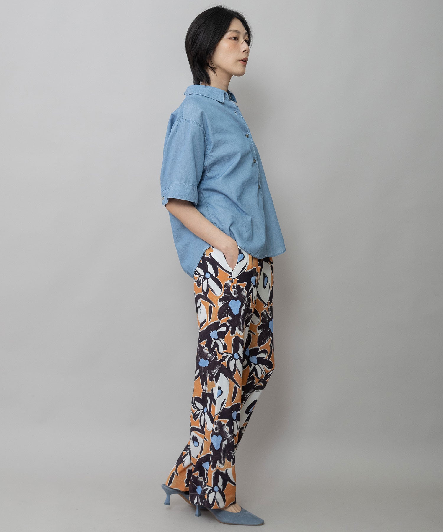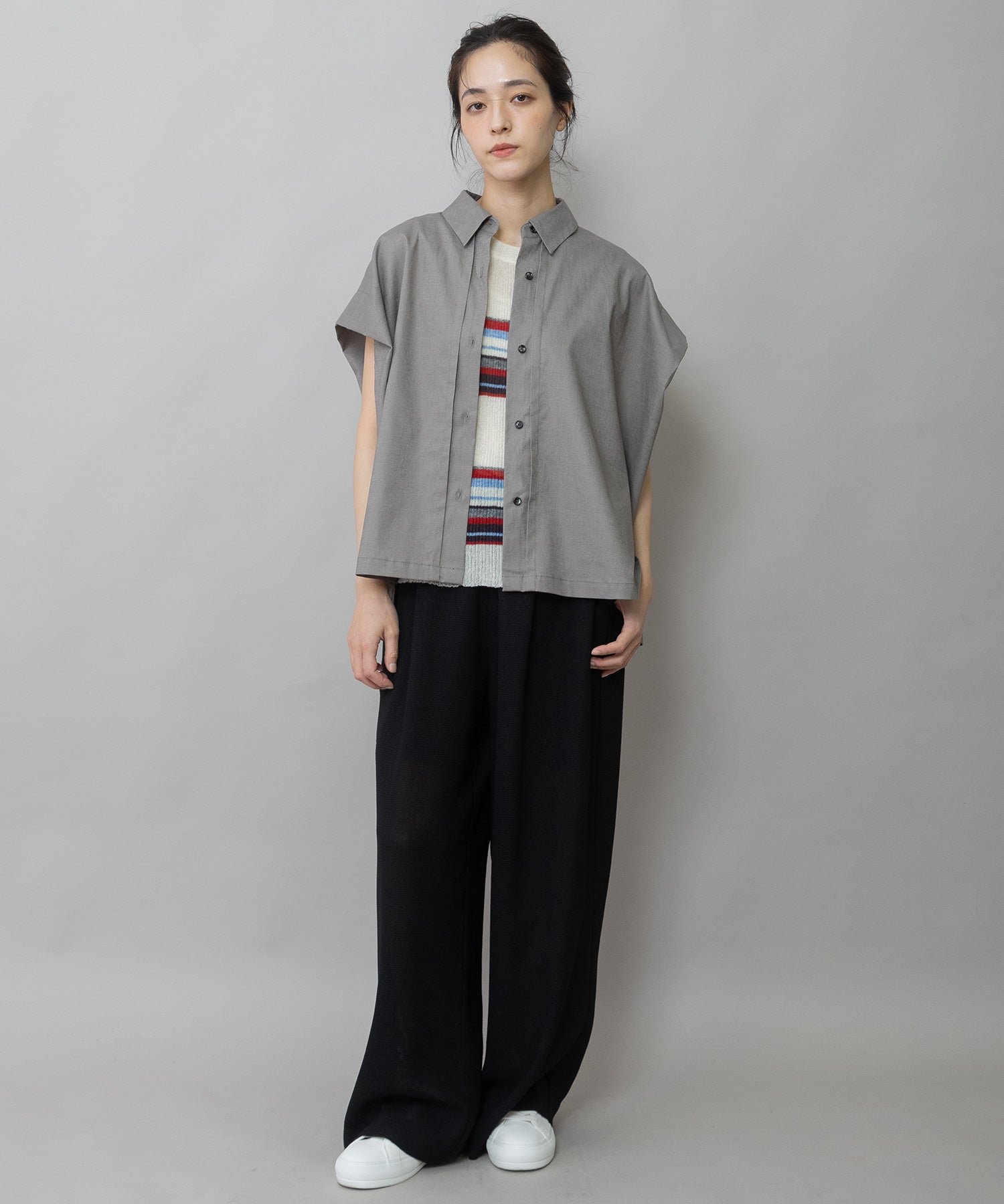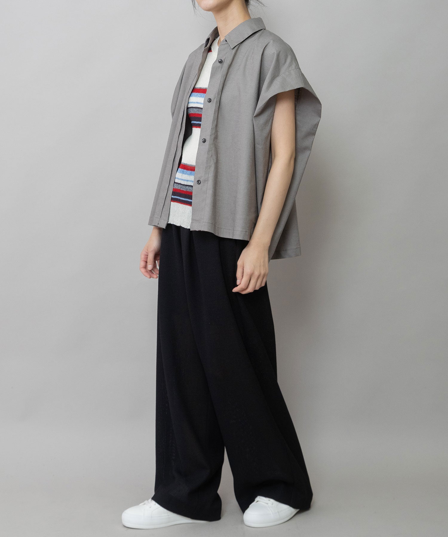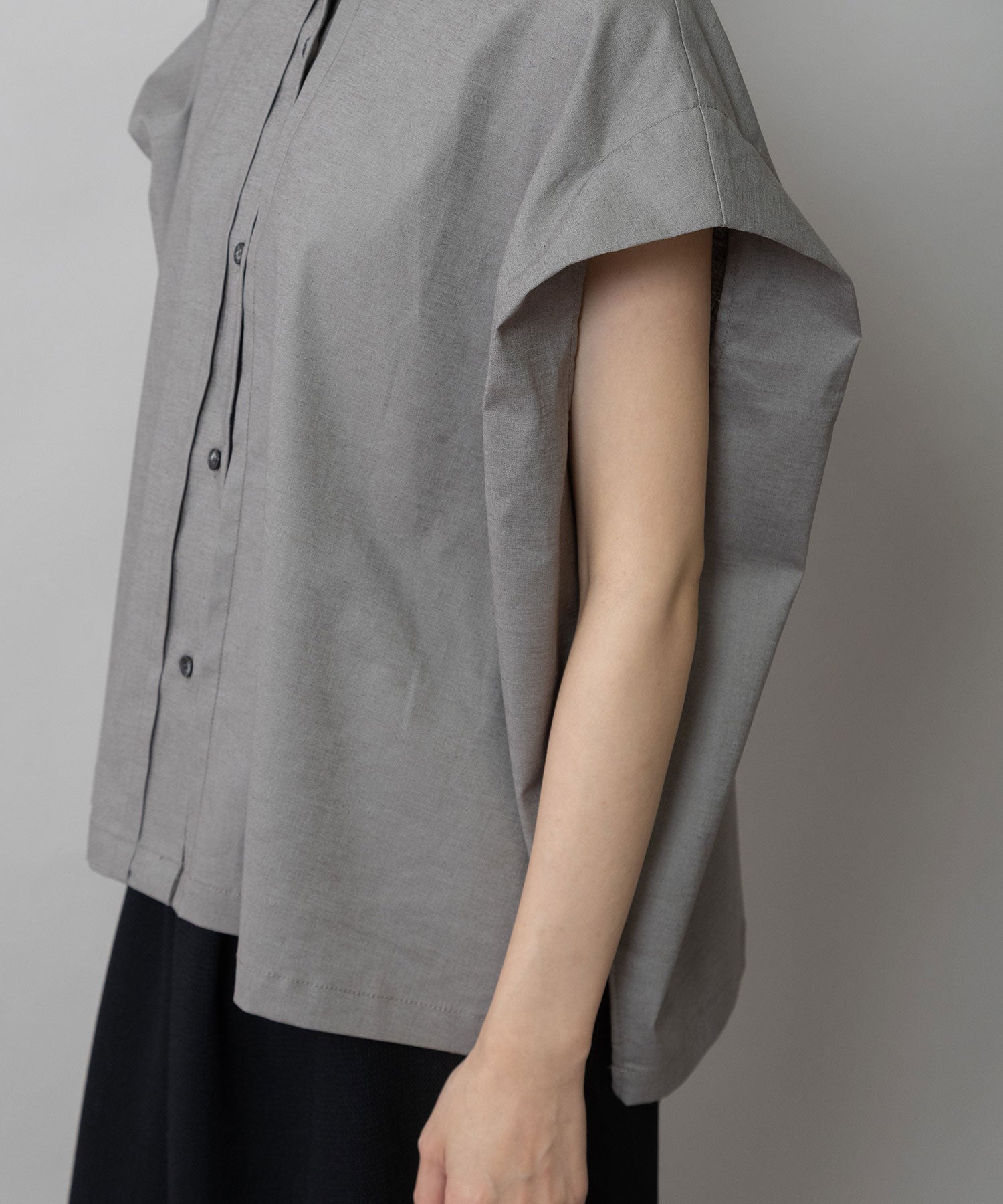 カフスの付いた五分袖をオーソドックスな袖幅にしているのでエアリーな雰囲気をキープしつつより着やすいアイテムになってます。