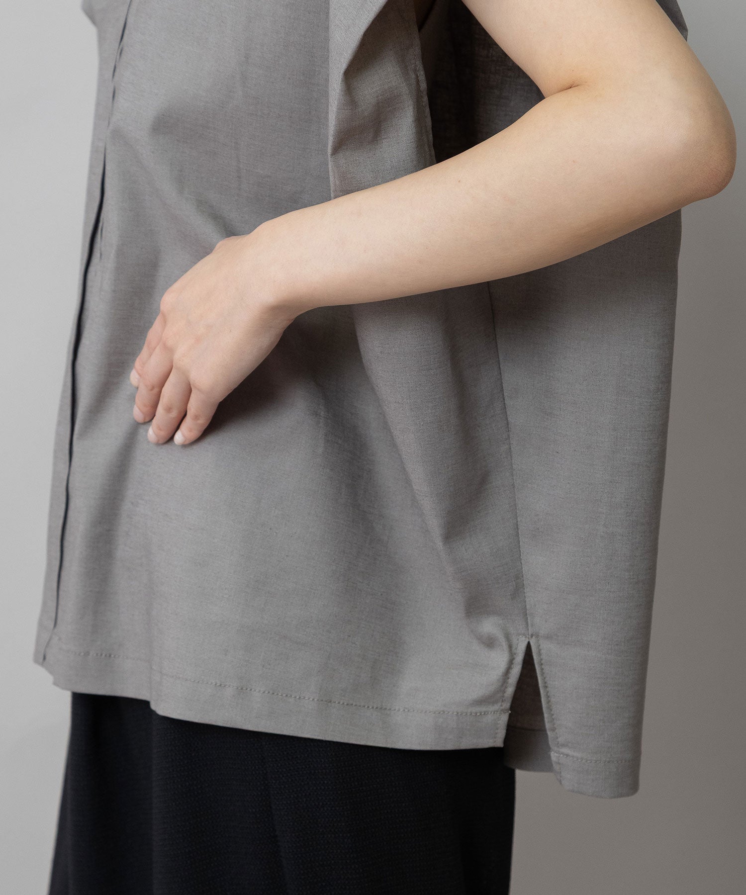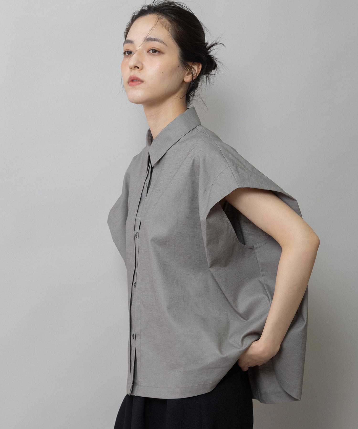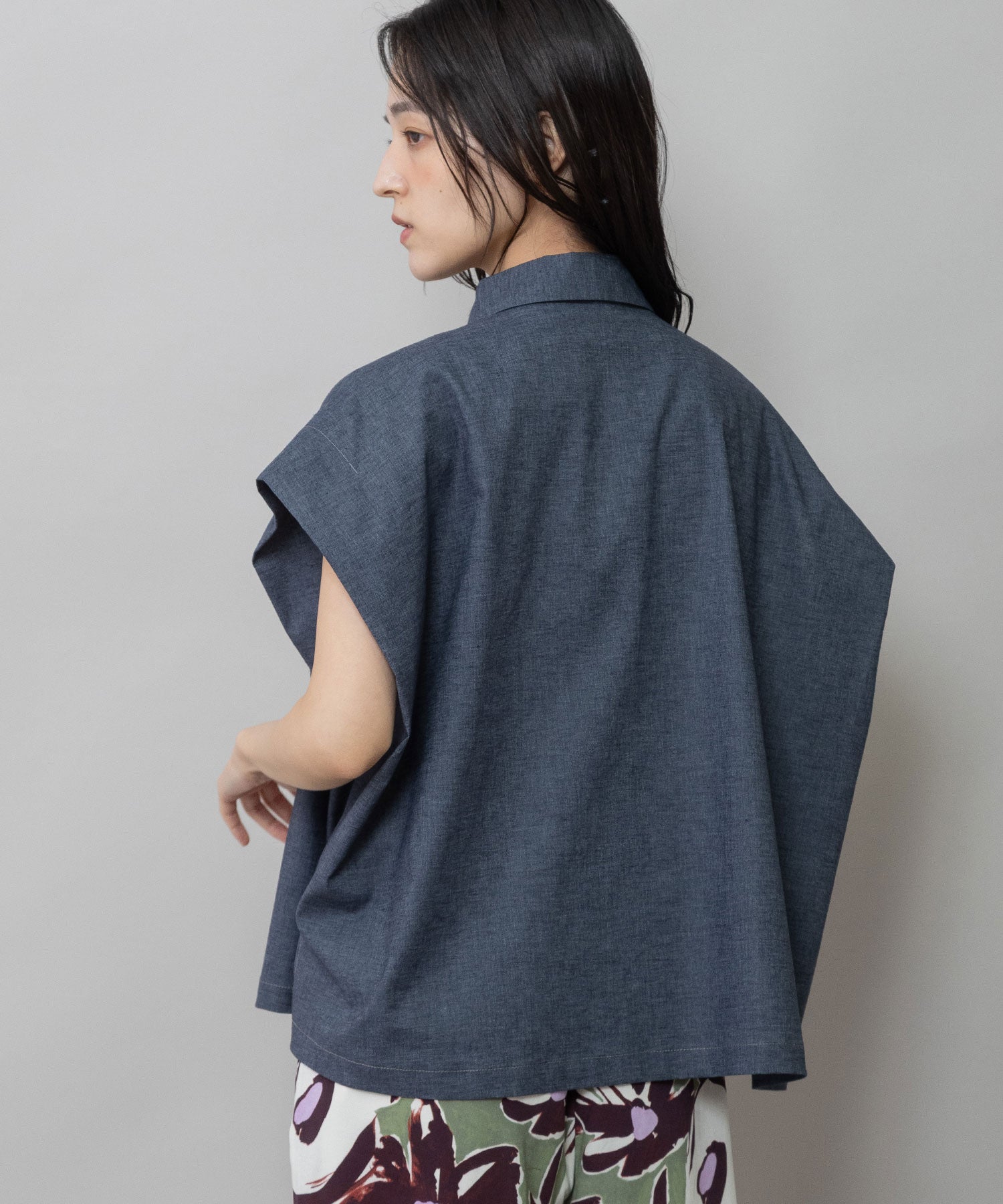 ◆羽織としても使いやすいヘンプシャンブレーのタックスリーブシャツ◆