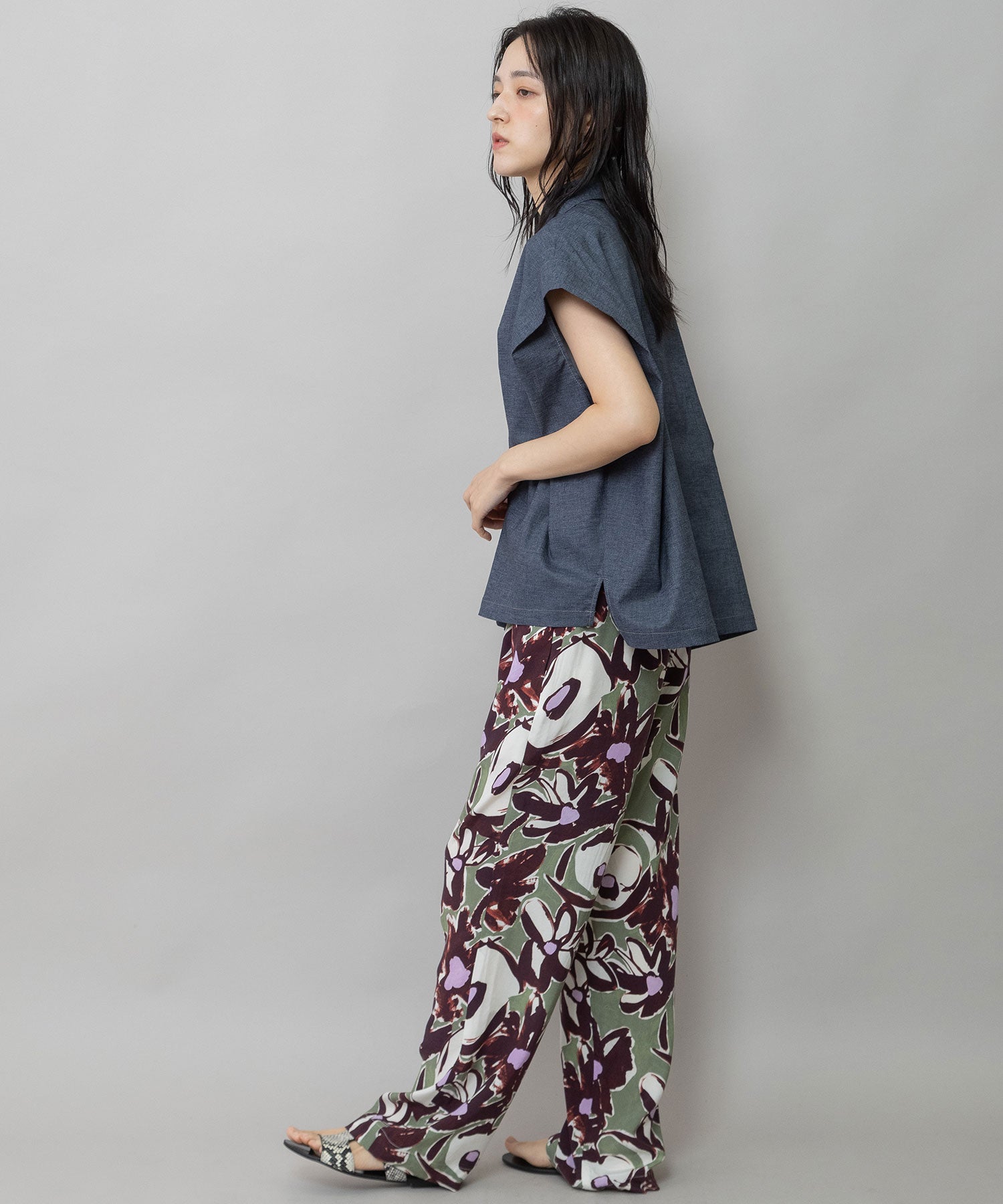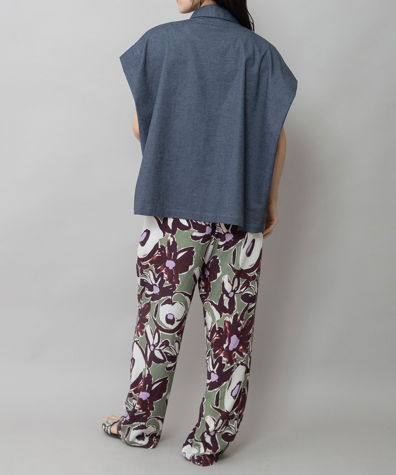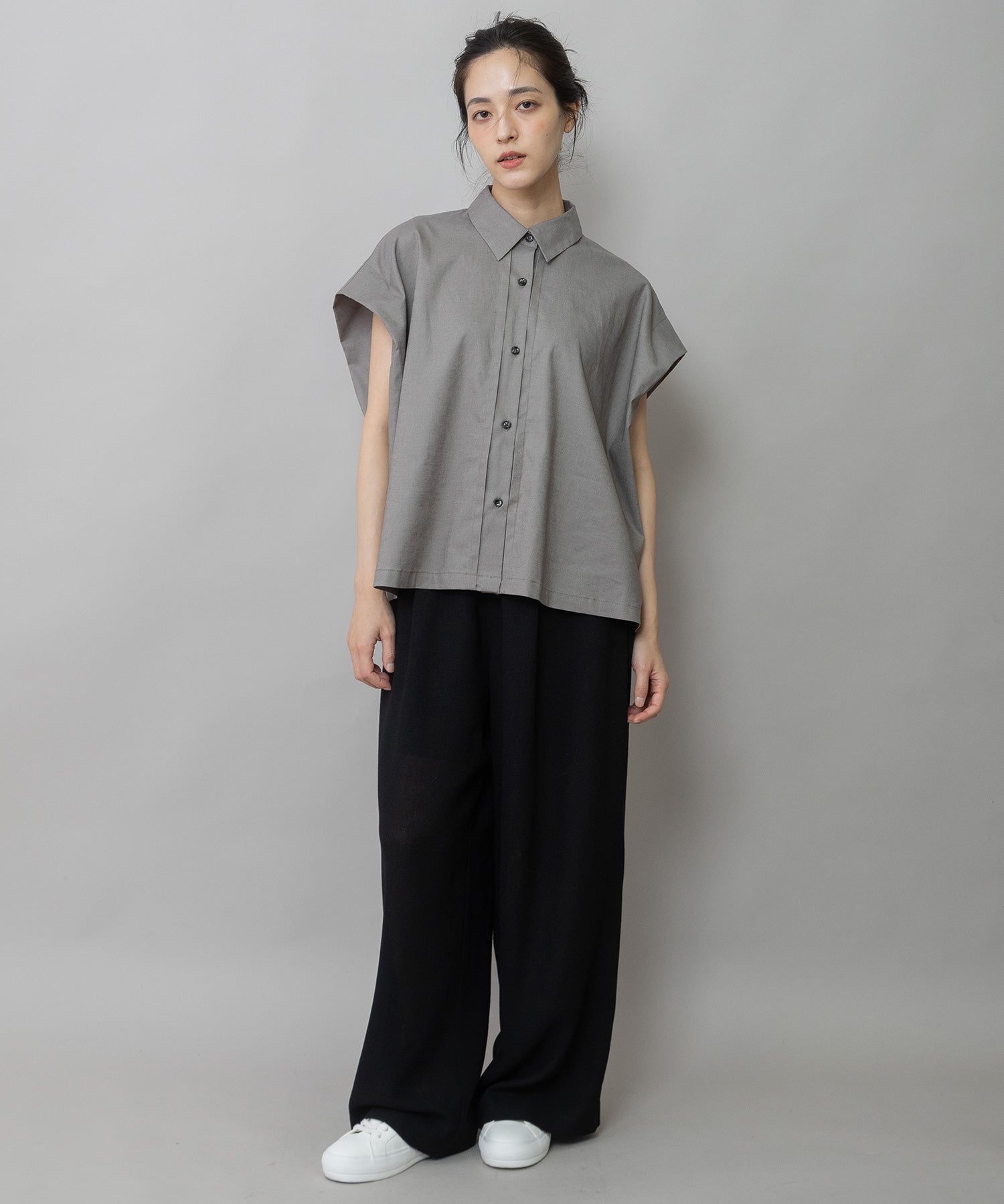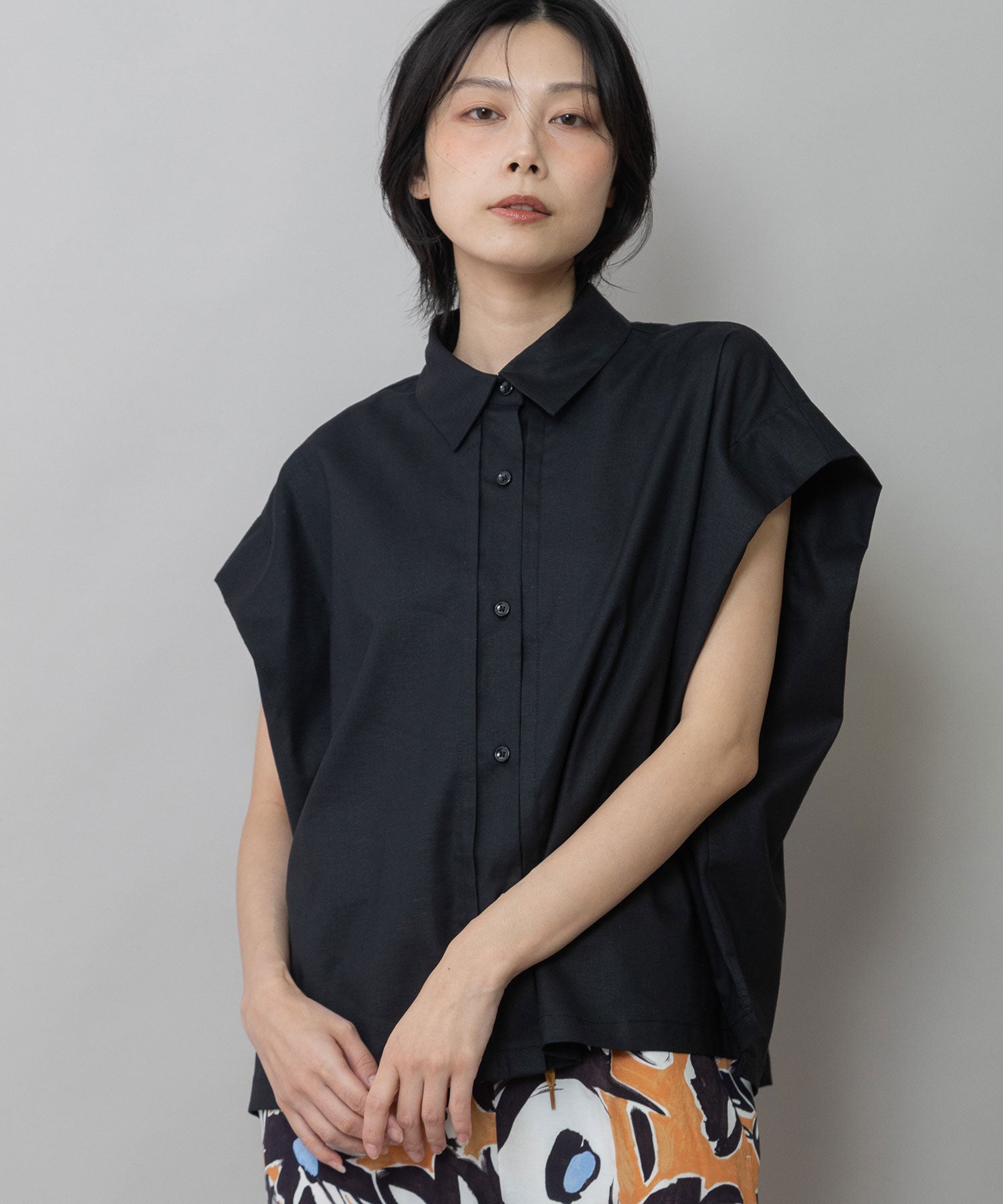 ◆羽織としても使いやすいヘンプシャンブレーのタックスリーブシャツ◆