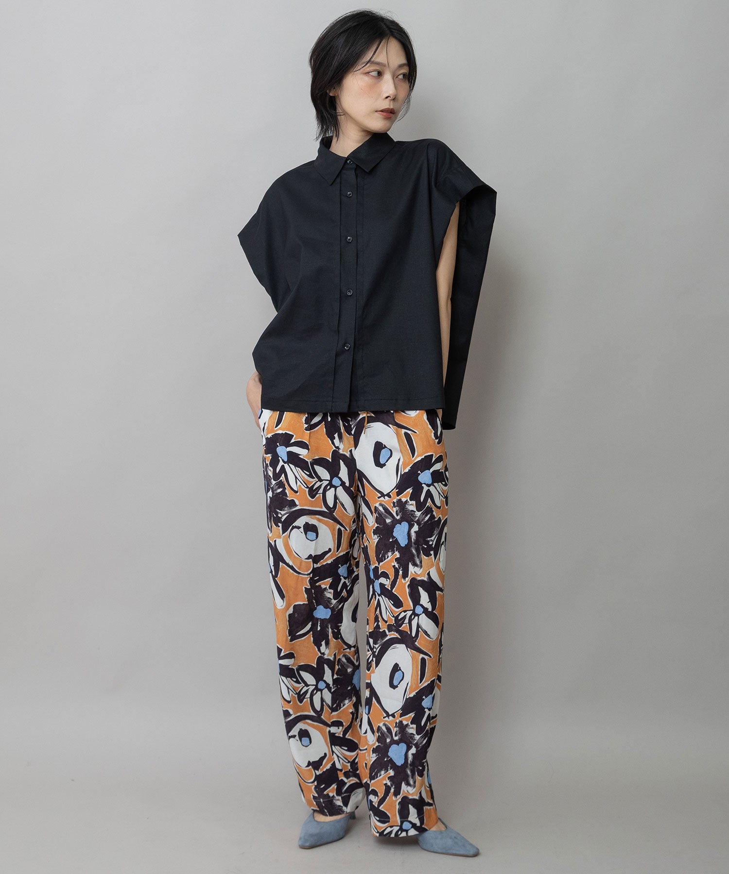 同型プリントバージョンのシャツ(ブランド品番MN261T40)よりも地厚でハリがあるので、こちらは羽織使いするのもおすすめです。