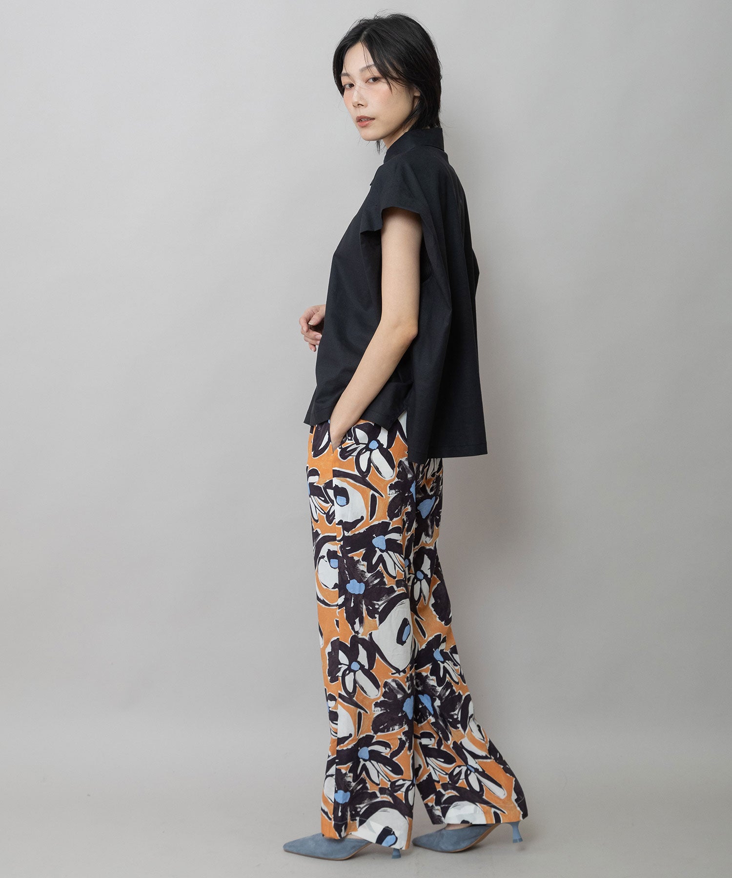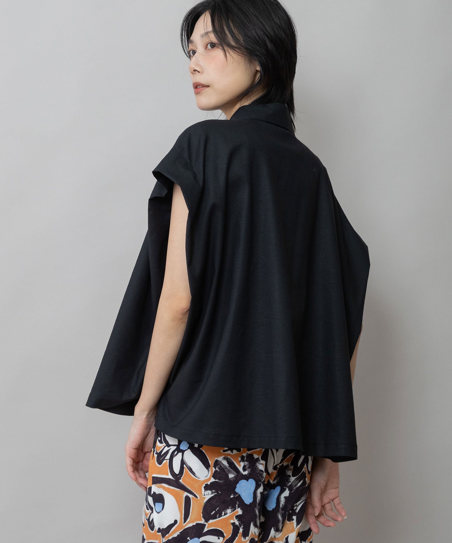 肩で大きくタックをとったタックスリーブは脇側がマチ状に厚みを持つためボリューミーなサイドシルエットになります。