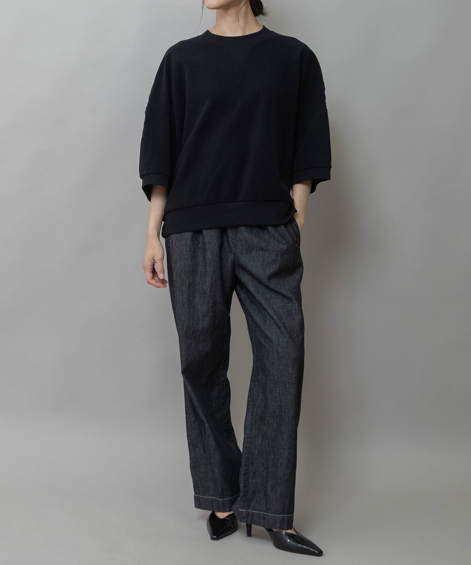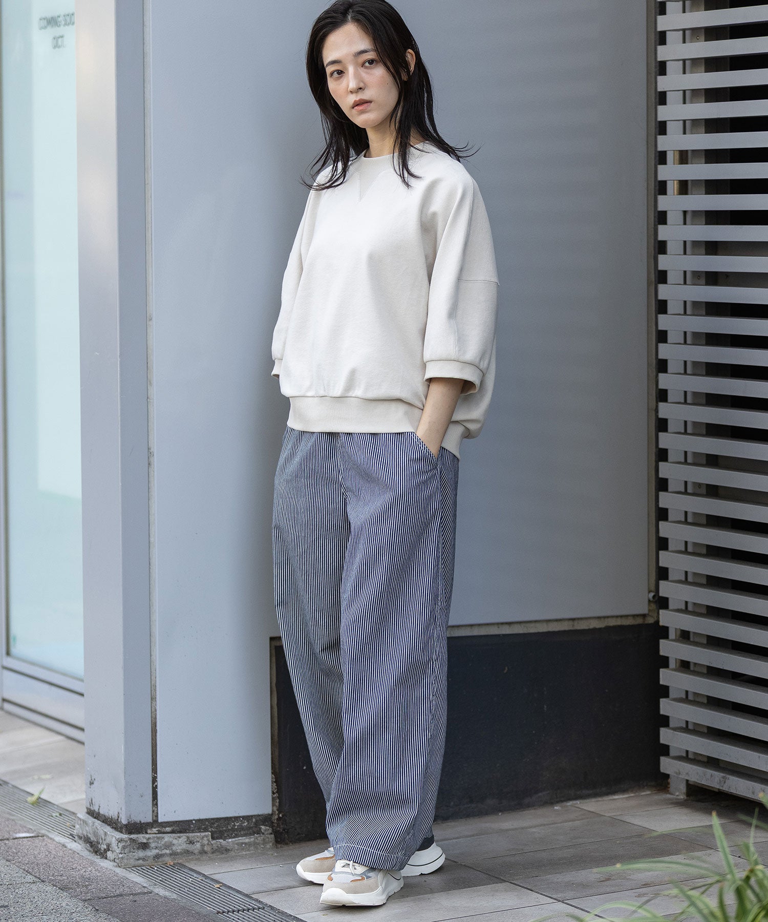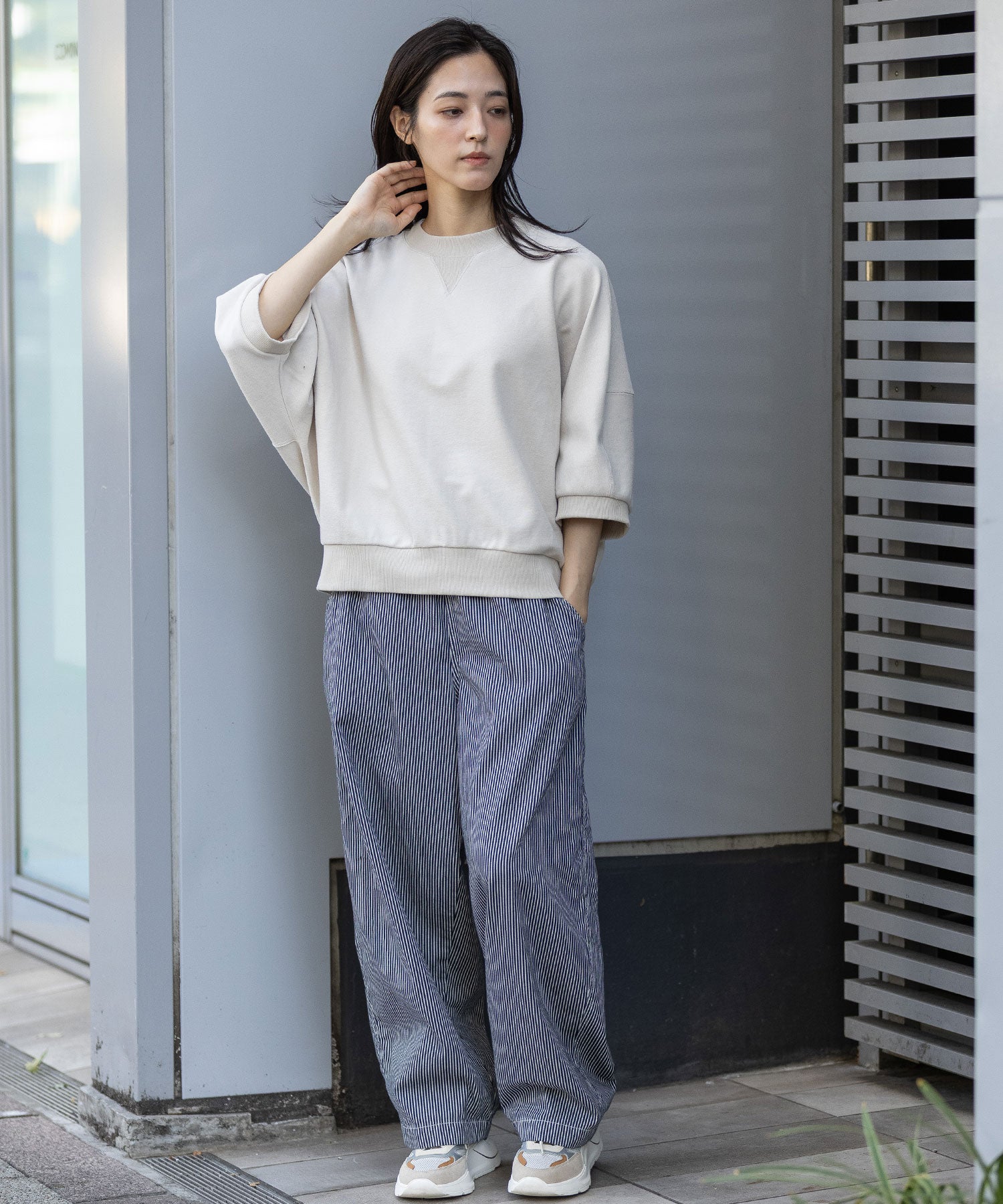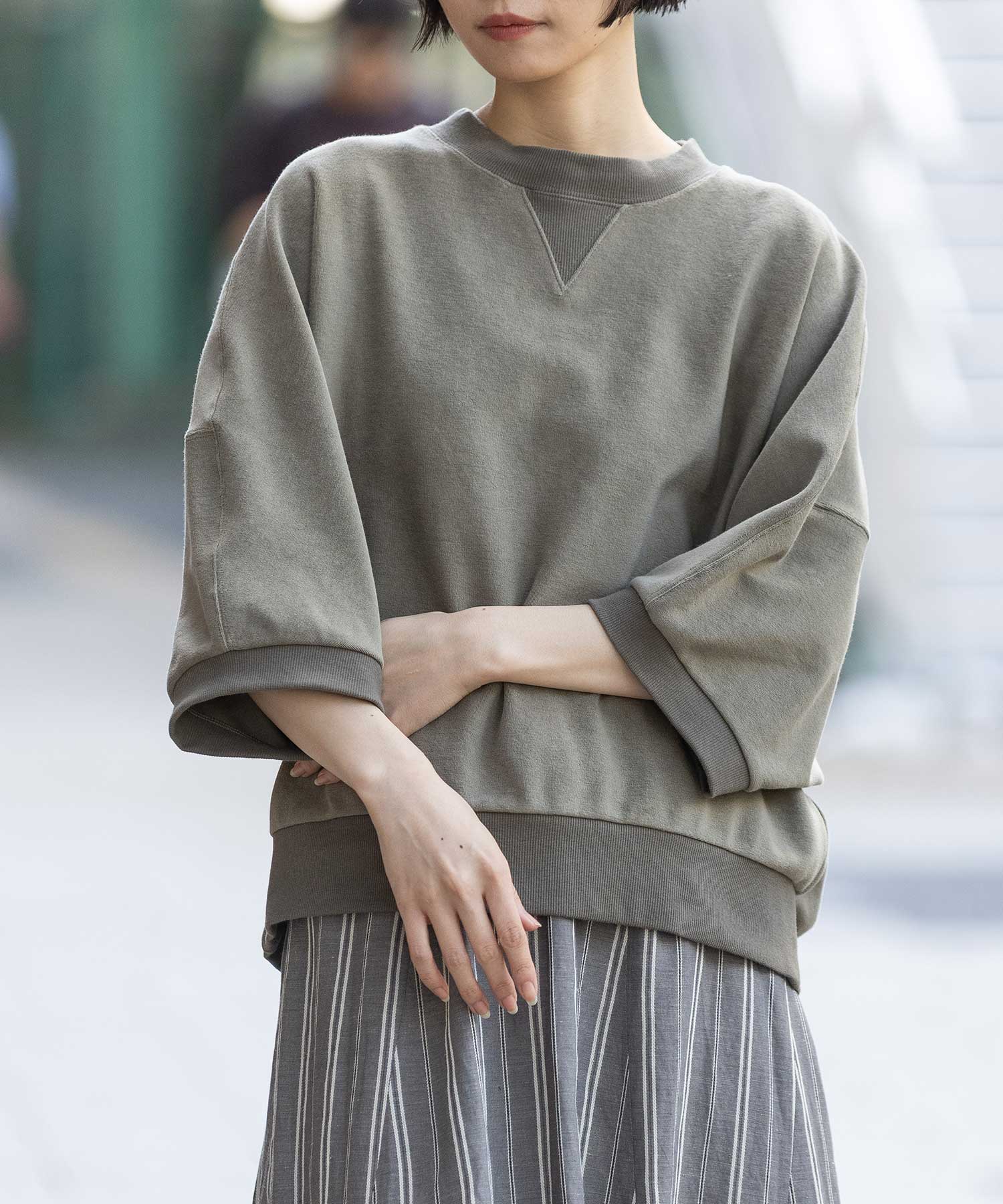 一見裏毛のスウェット見えしますが、毛足の短いパイル生地とテレコ素材を組み合わせ、自然な表情のある素材感で大人っぽいアイテムに仕上げています。