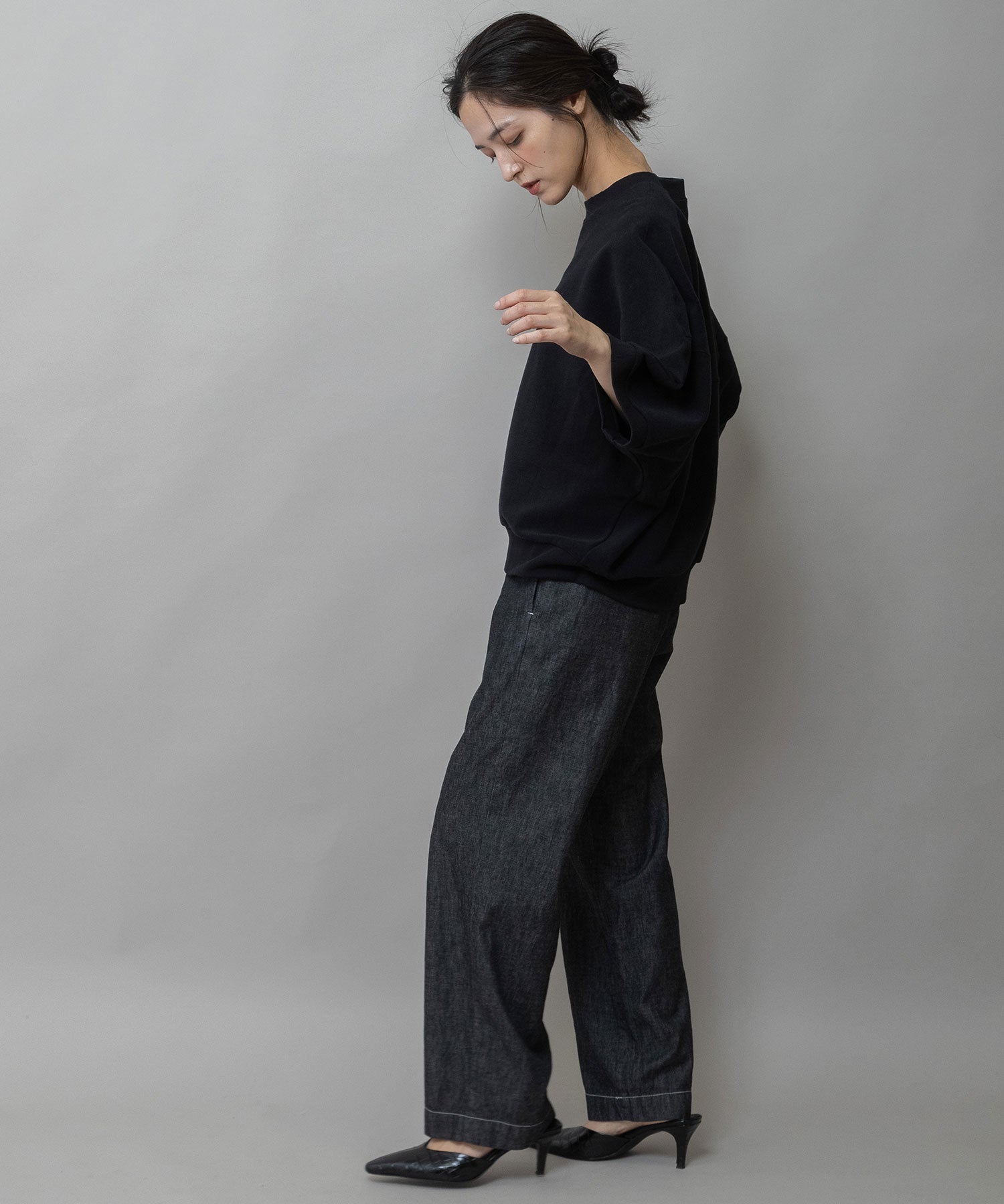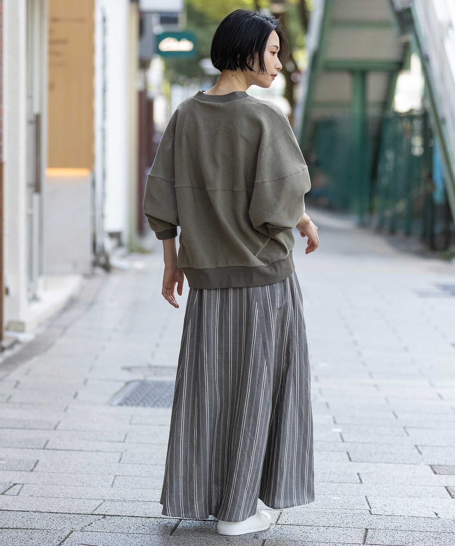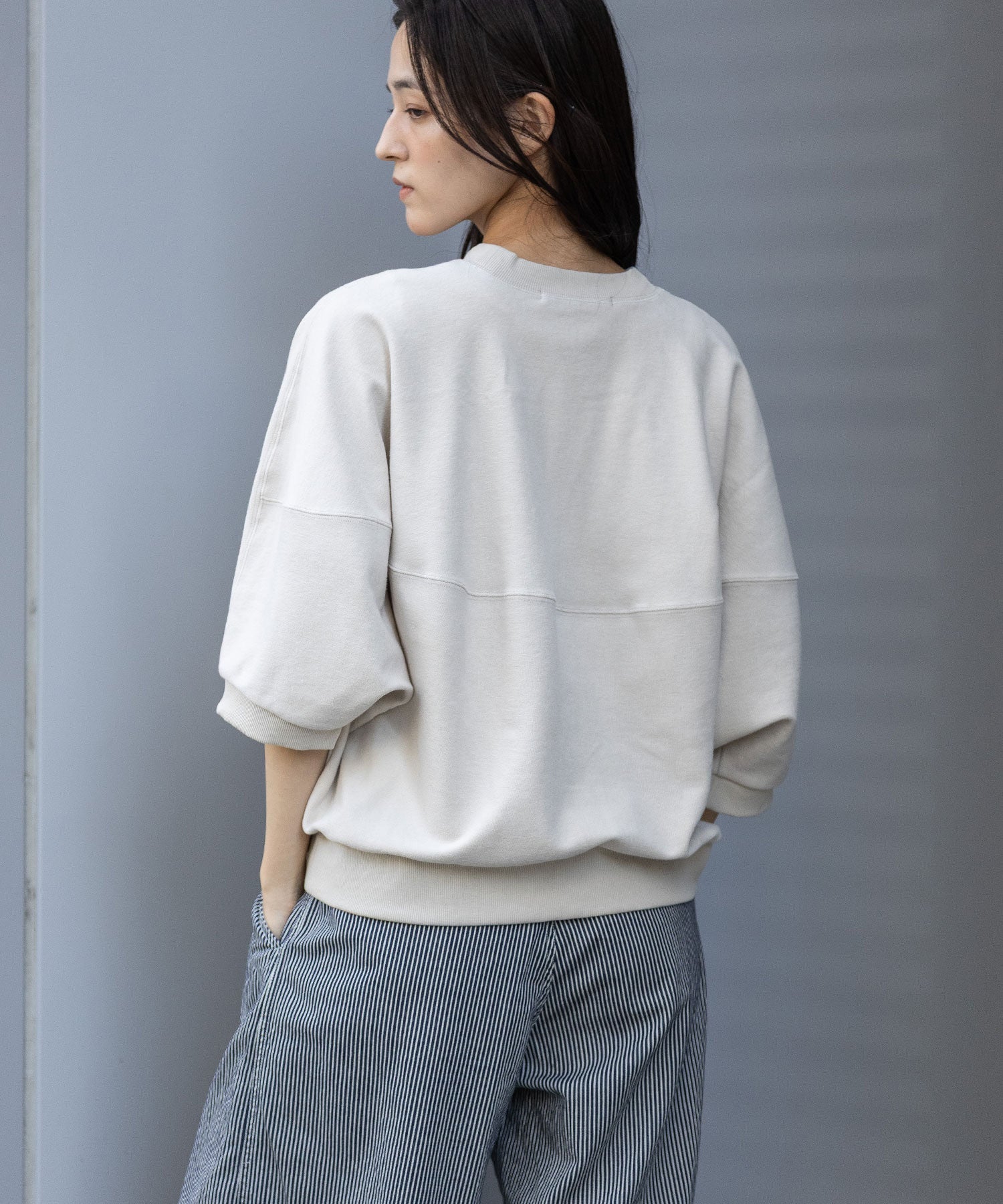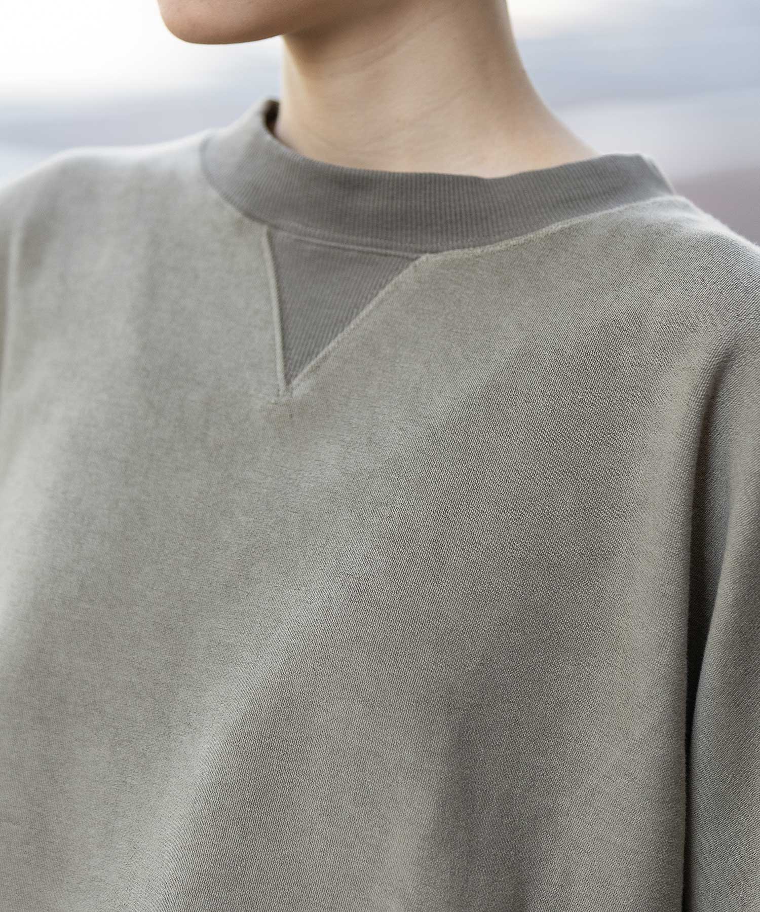 カマ底をたっぷりと深めにとったドルマンスリーブで、ゆったりとしたサイズでリラックス感のあるムードに。