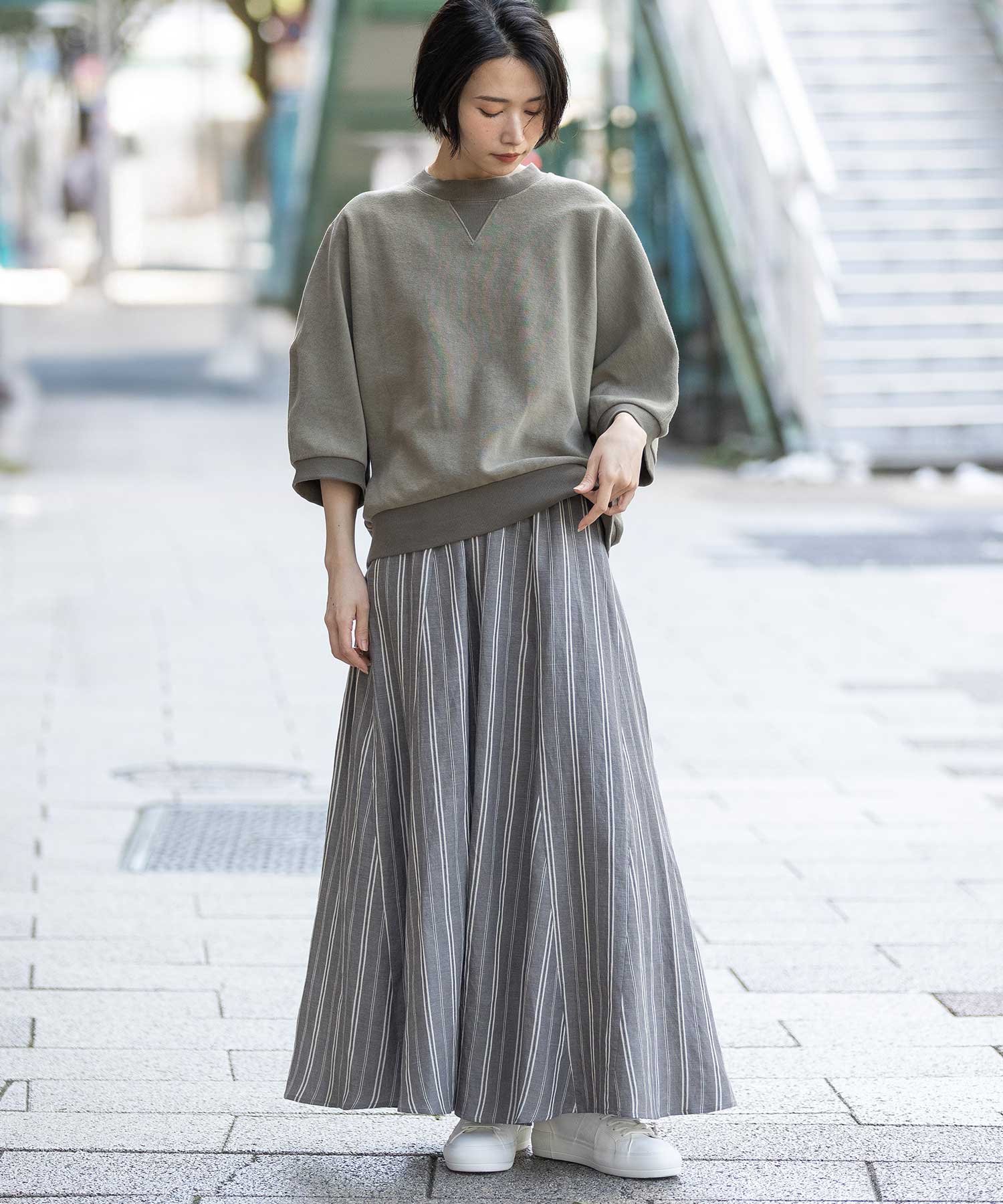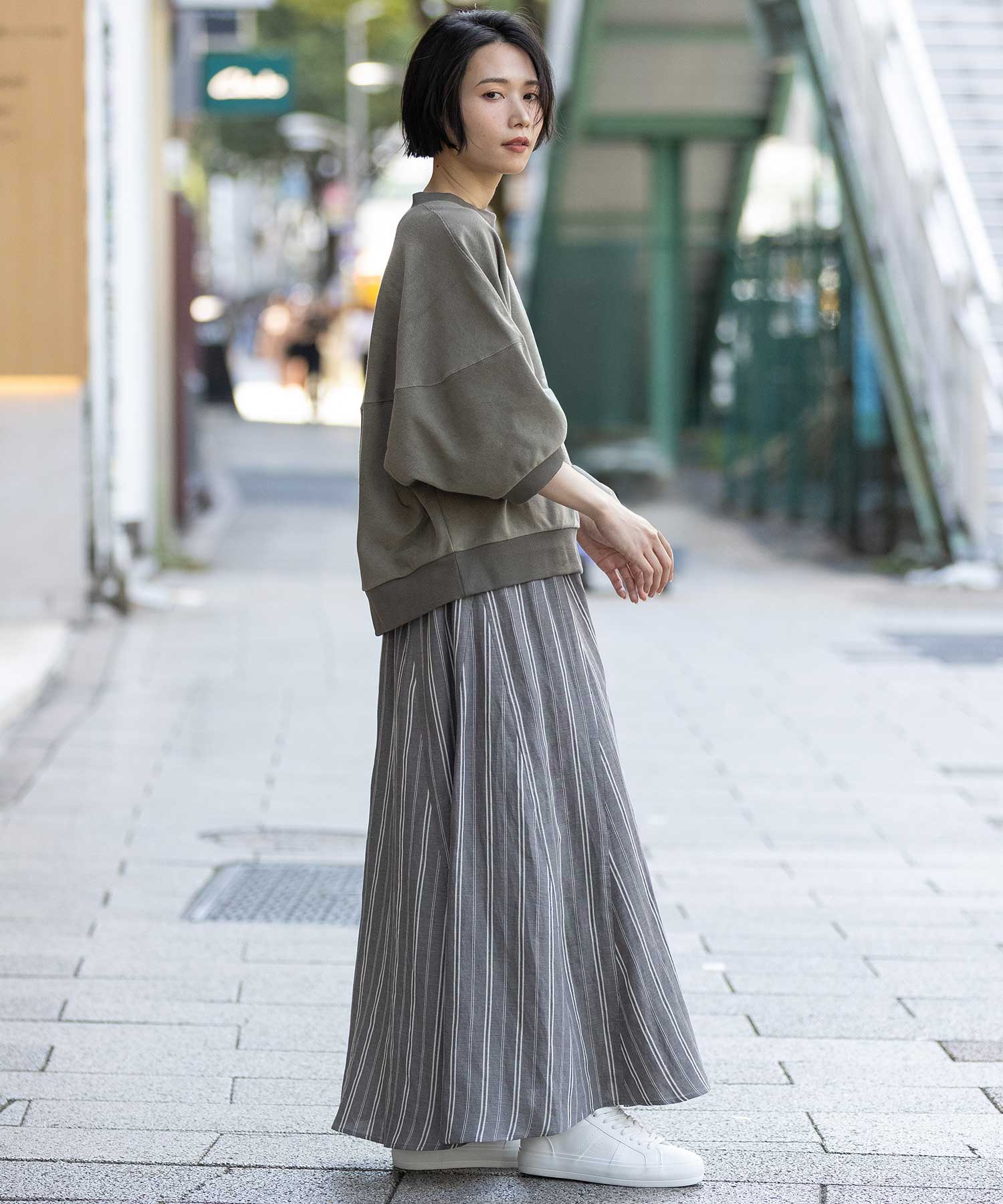 スカートにもパンツにも合わせやすい気軽なアイテムです。