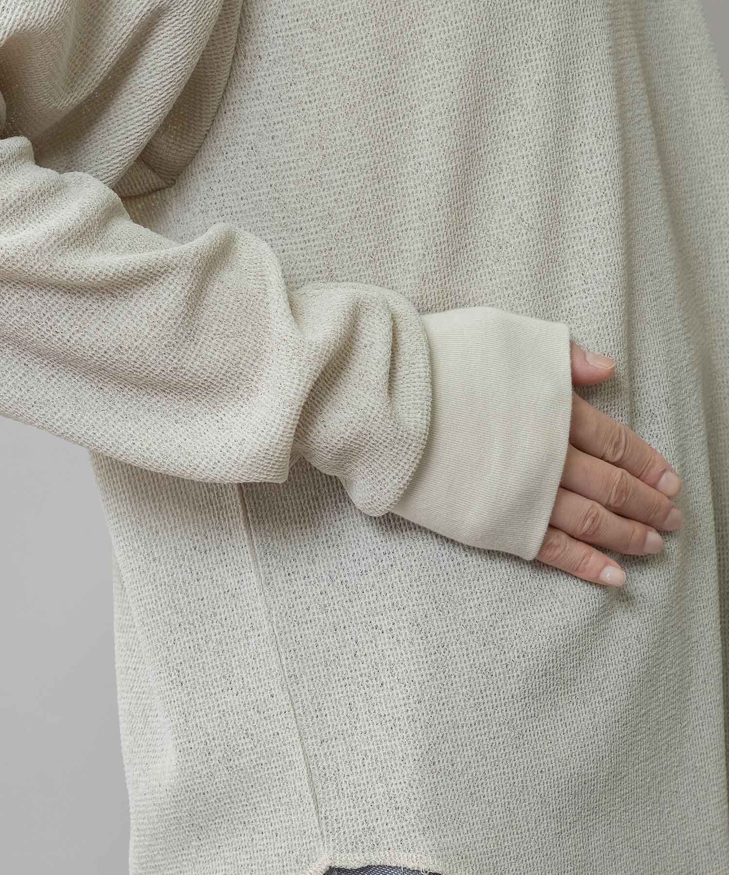原糸に特殊なポリエステル素材を使用し、ワッフル組織で編立てられた、圧倒的な軽さが魅力のシアーワッフル。