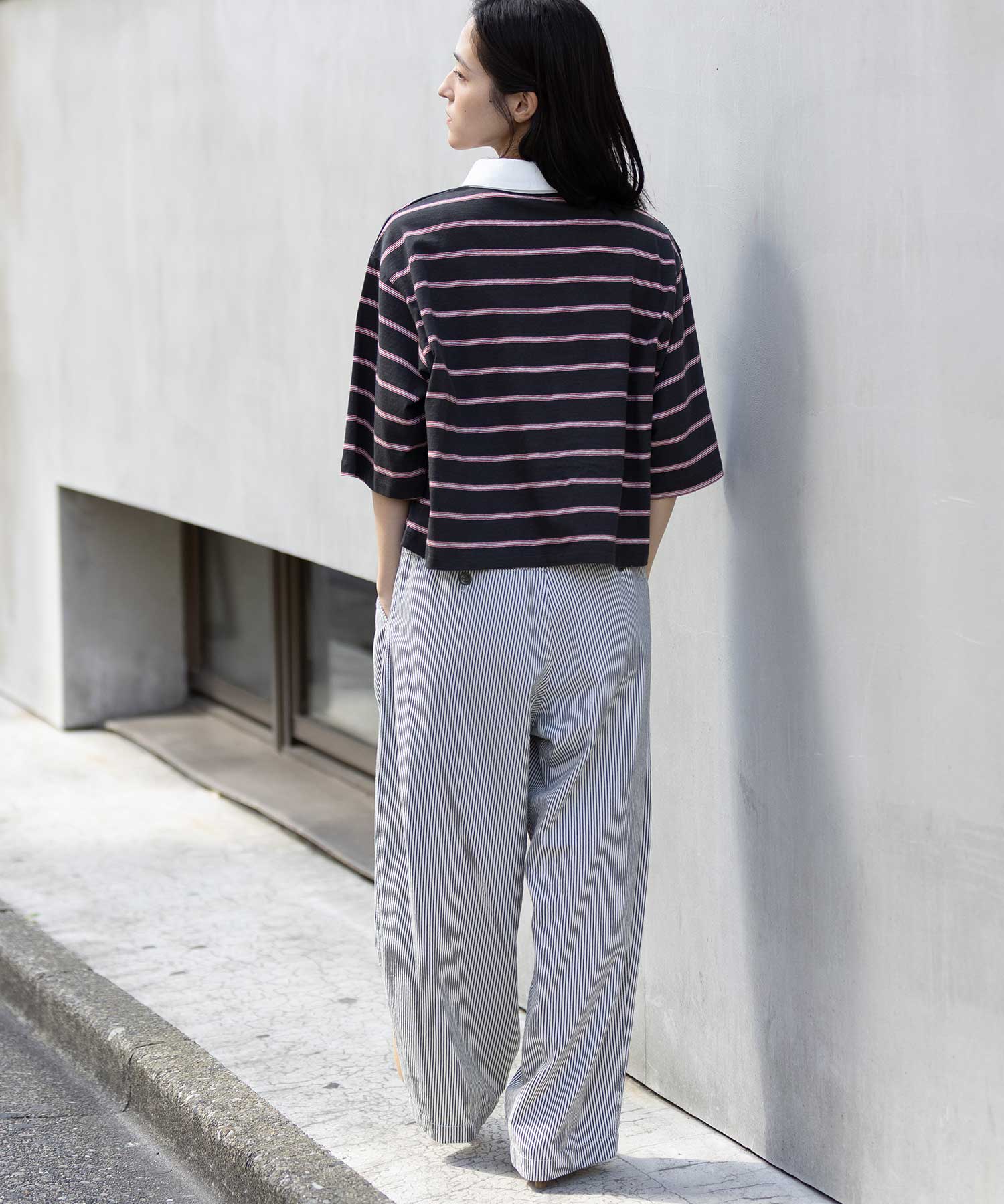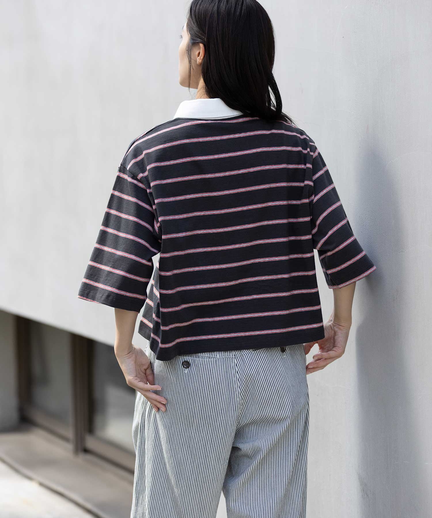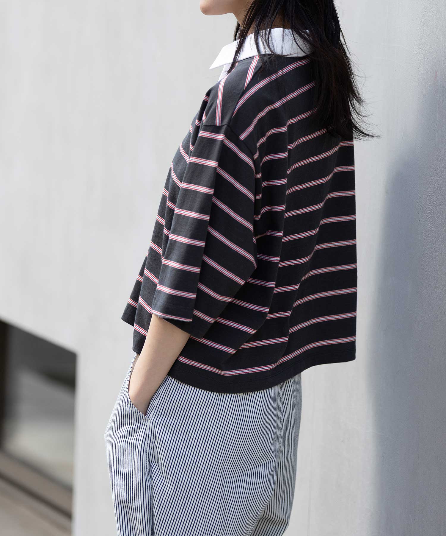 トレンド感あるレトロな雰囲気のマルチボーダーで作ったラガーシャツ。