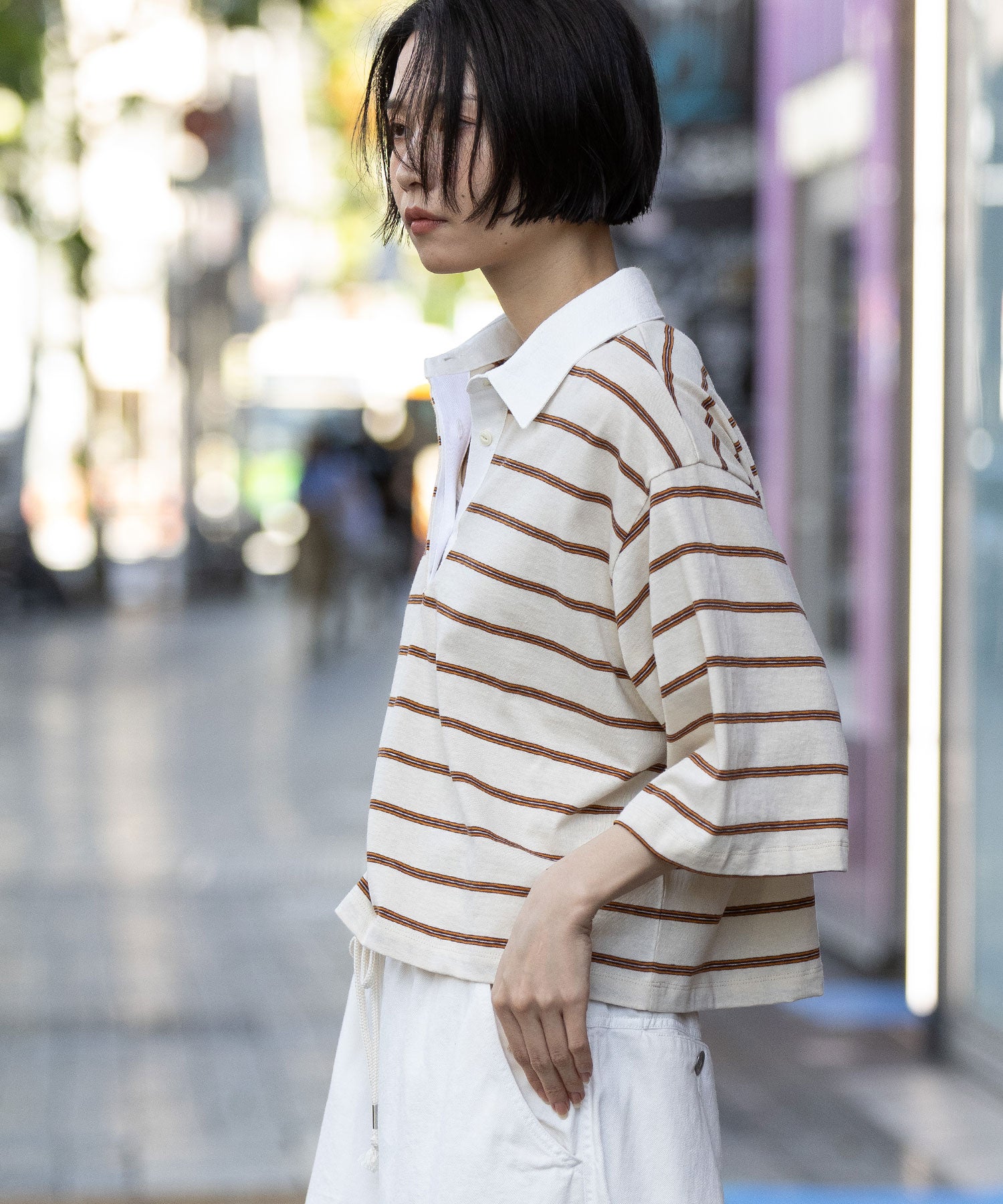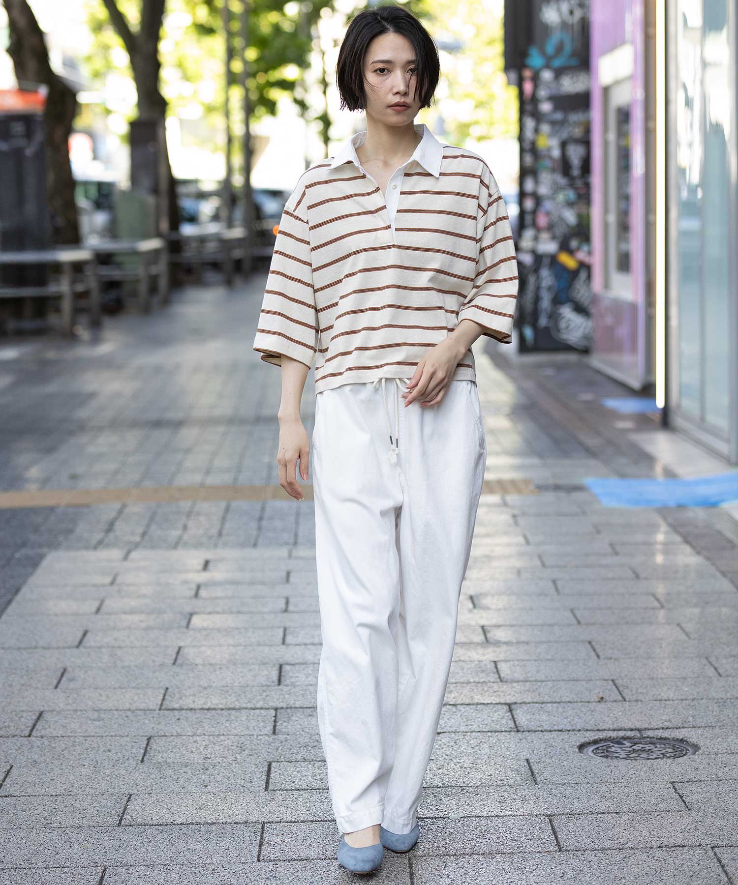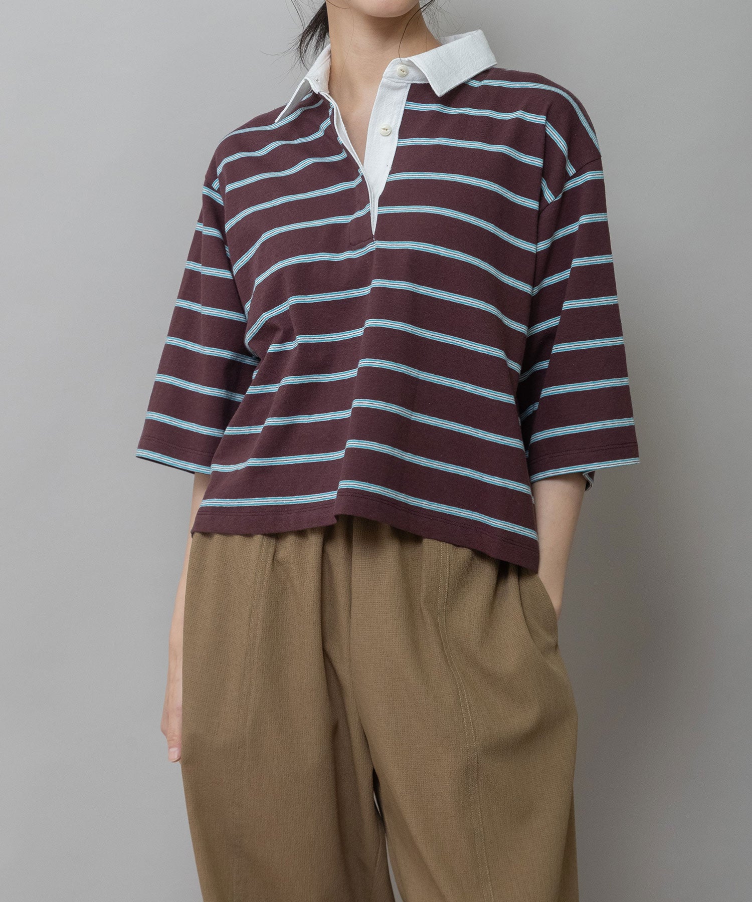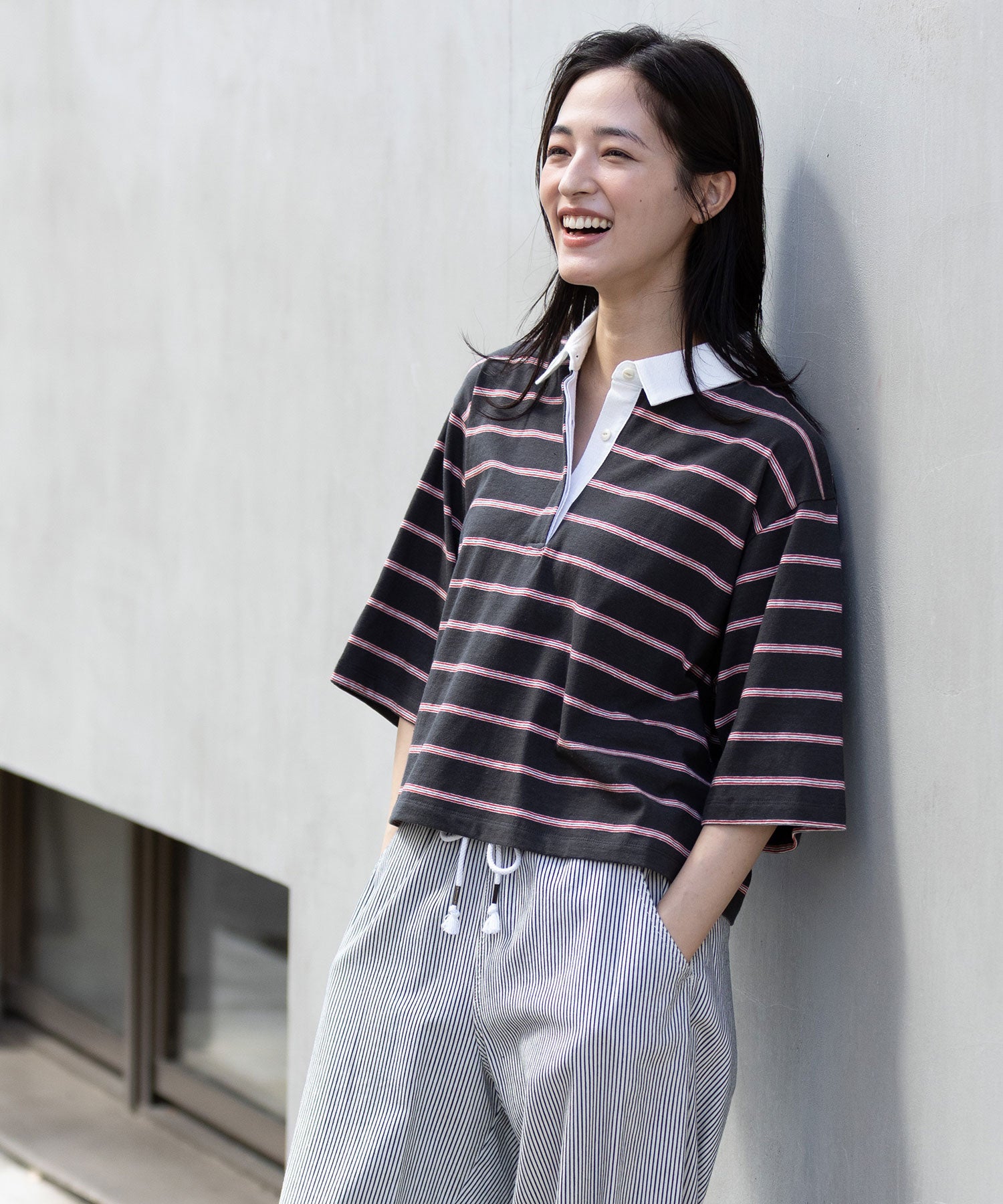トレンド感あるレトロな雰囲気のマルチボーダーで作ったラガーシャツ。