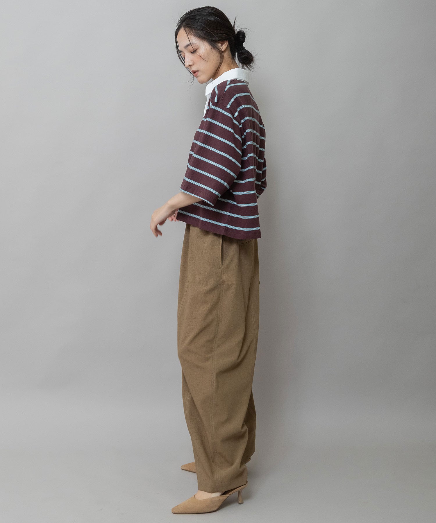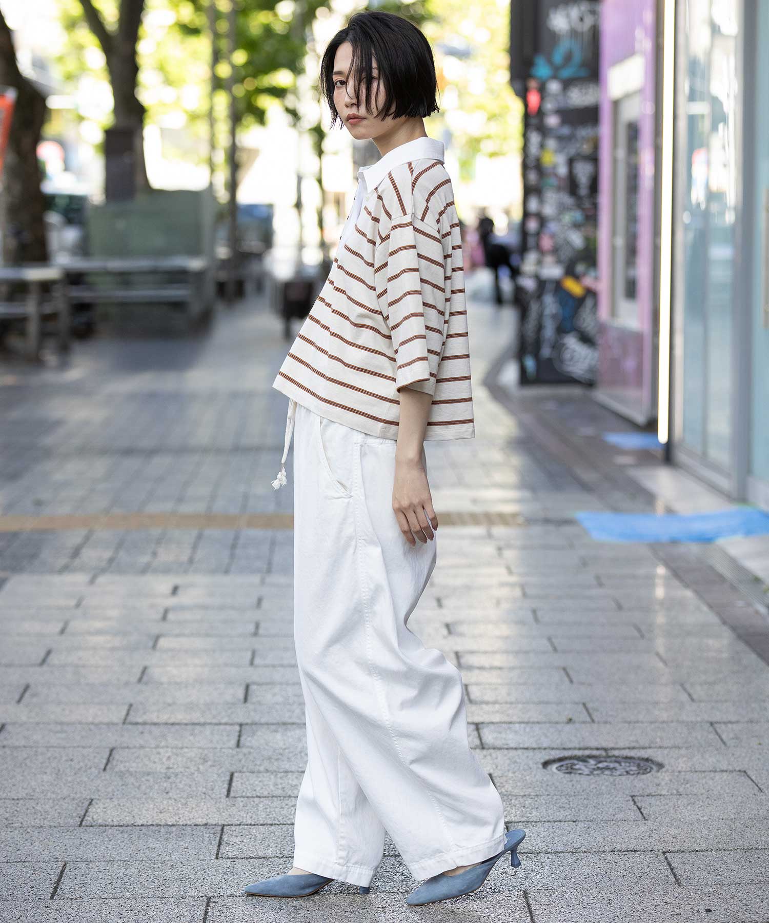 ボリュームボトムにも合わせやすいシルエットで、衿を抜いてさらりと着るだけで一気にトレンド感ある着こなしが叶います。