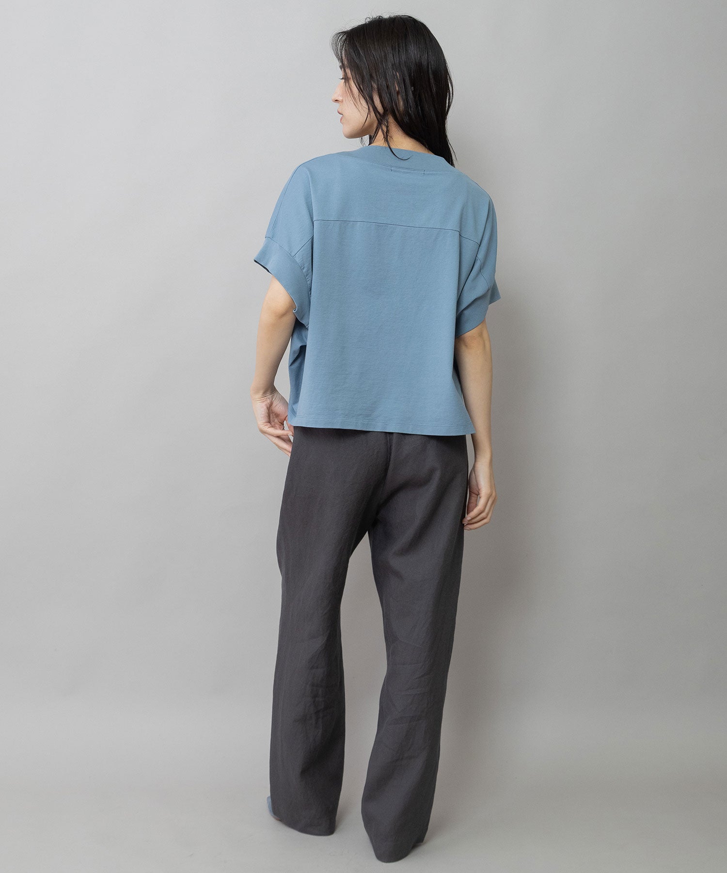 双糸なので斜行しにくく目面のきれいさはありながらも程良いカサツキ感が生まれ、春夏シーズンにぴったりの抜け感のある風合いに仕上がっています。