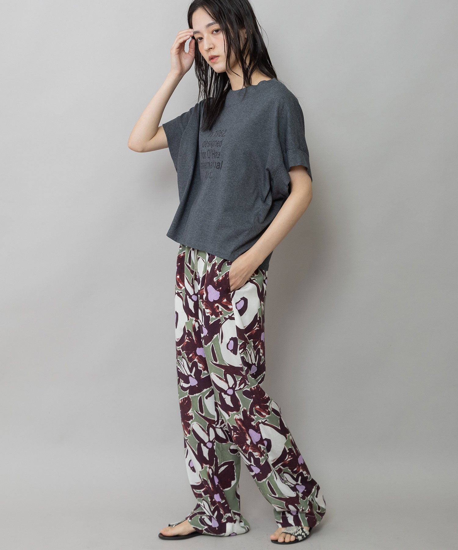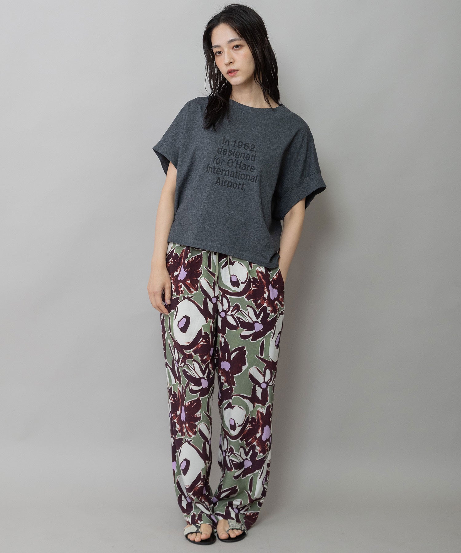 スーベニアTシャツのような遊び心を持ちながらも、落ち着いたトーンとバランスで大人の装いに馴染む一枚です。
