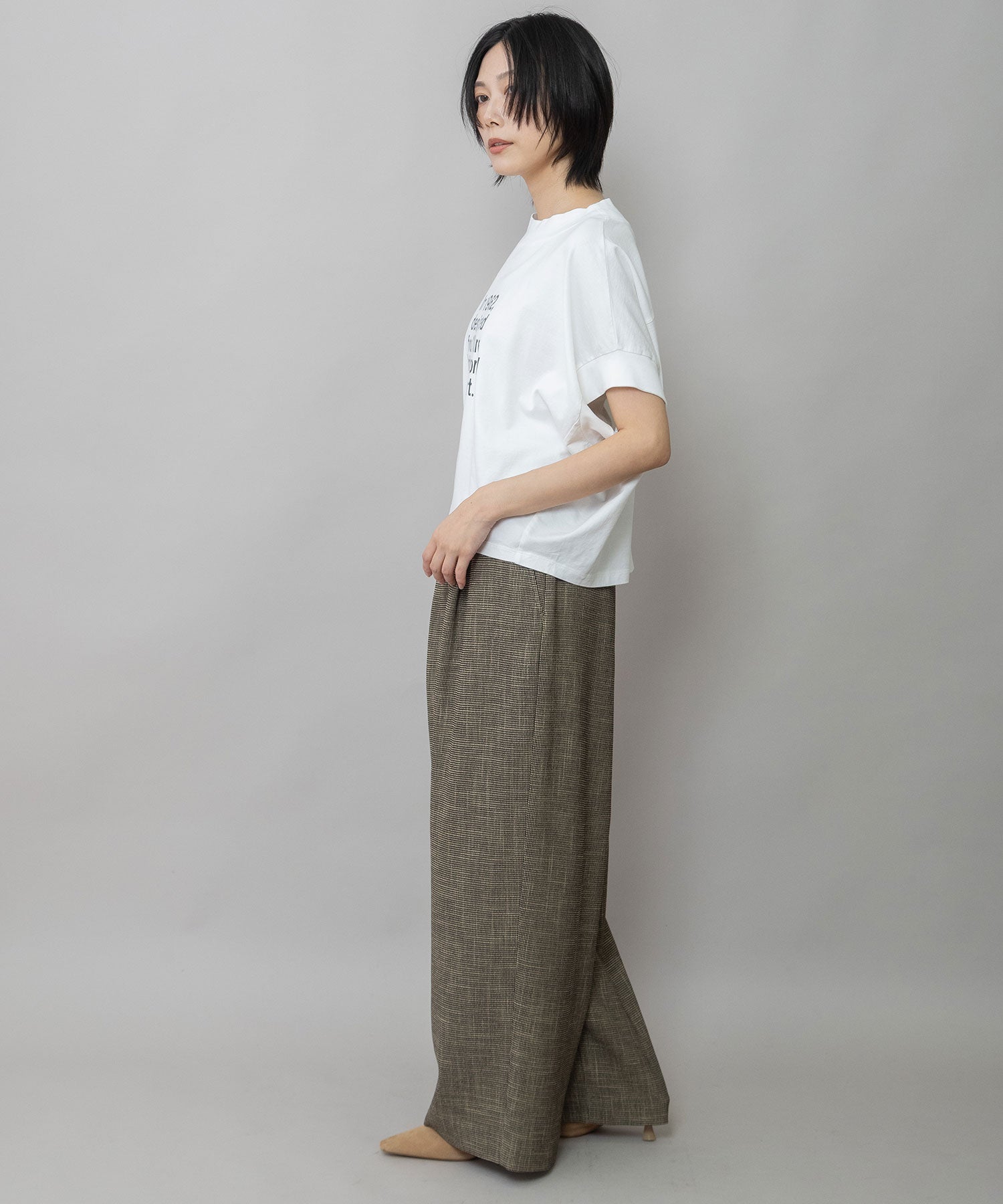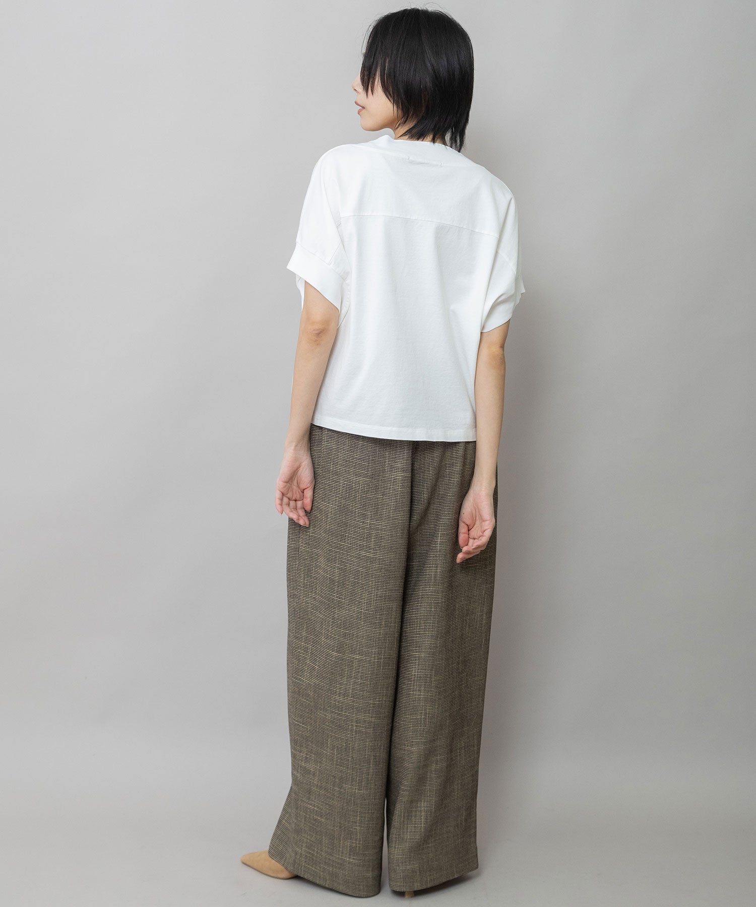 きれいめですが程良くドライタッチな質感もあり、季節問わず使える素材感に仕上がっています。