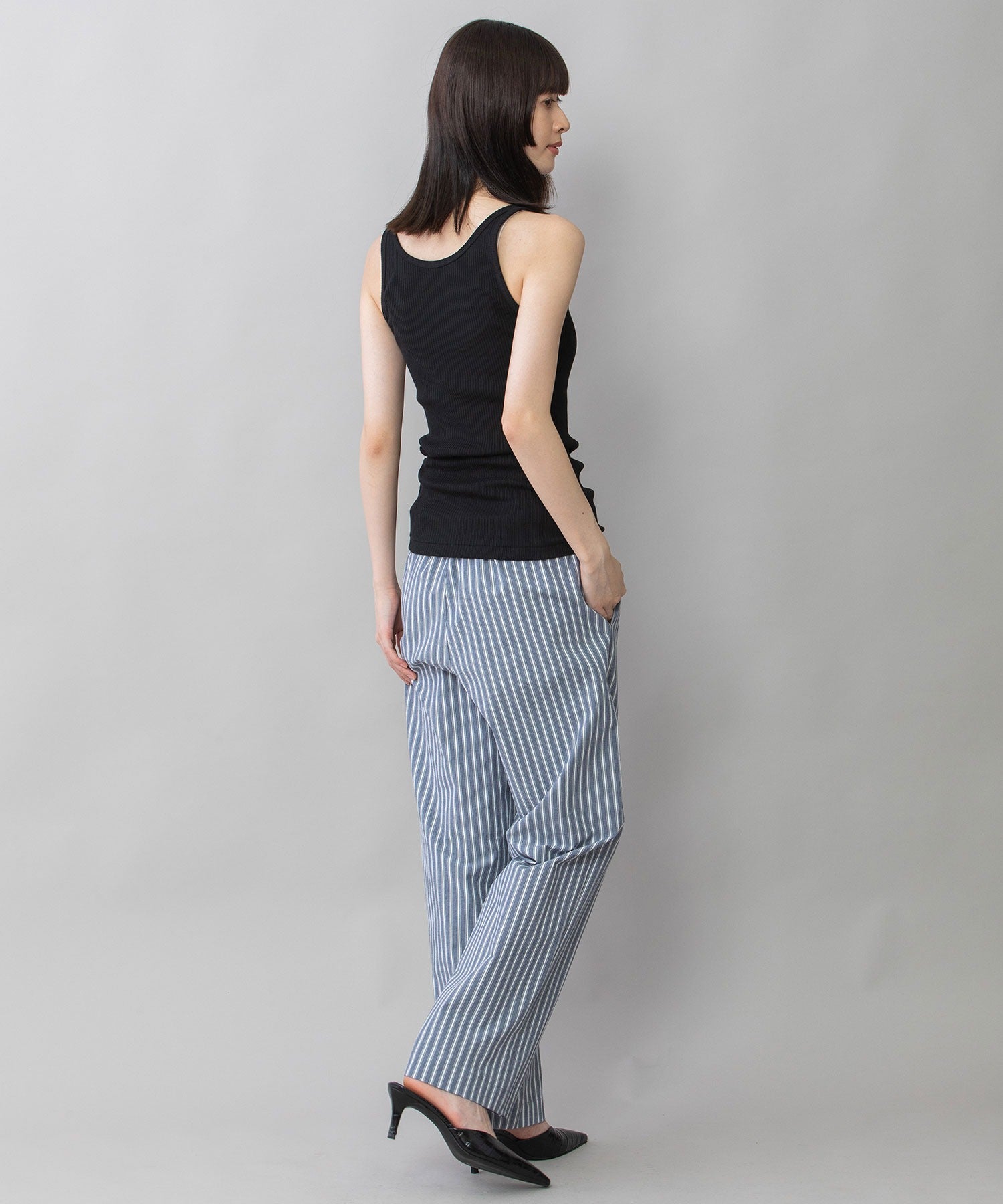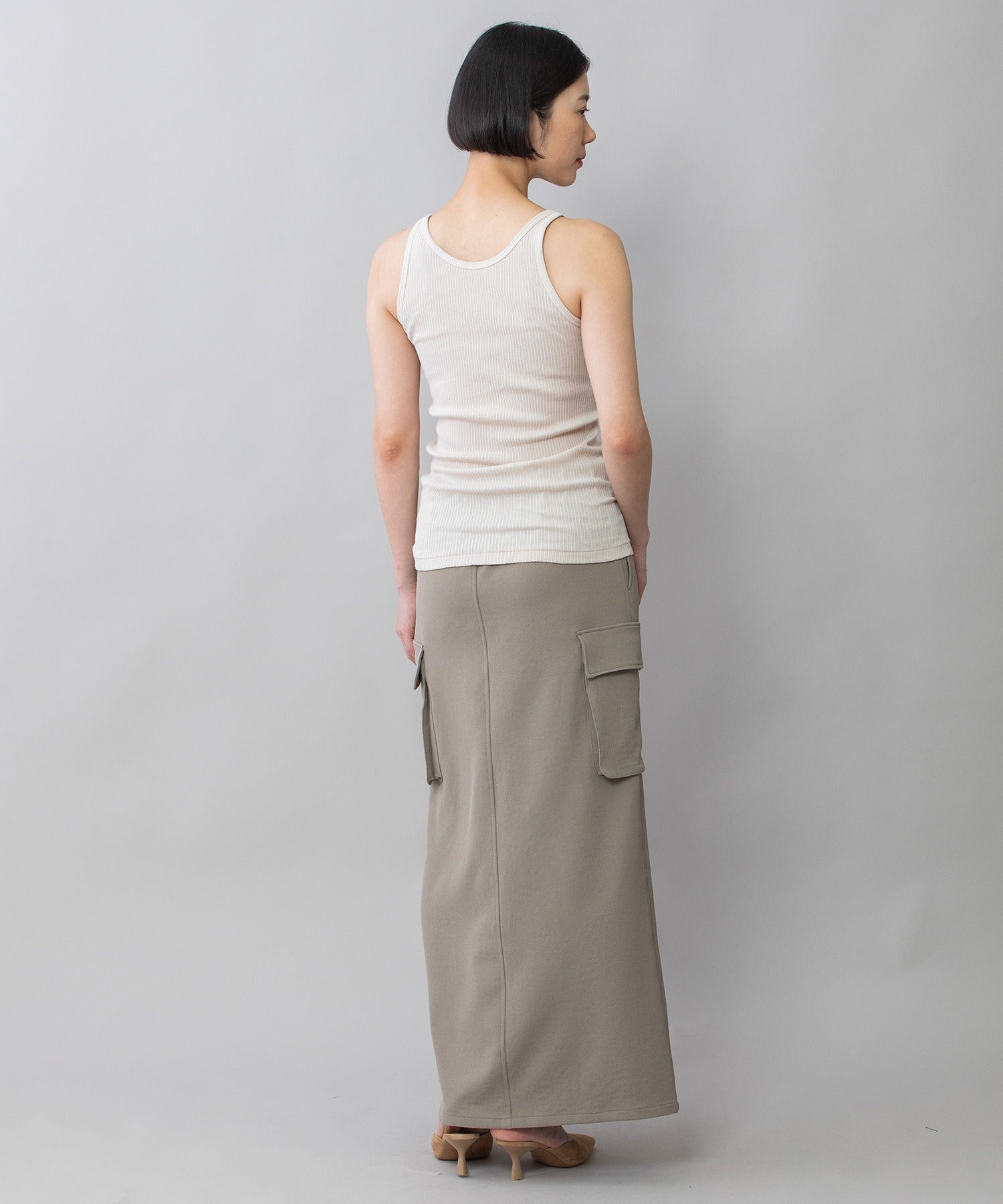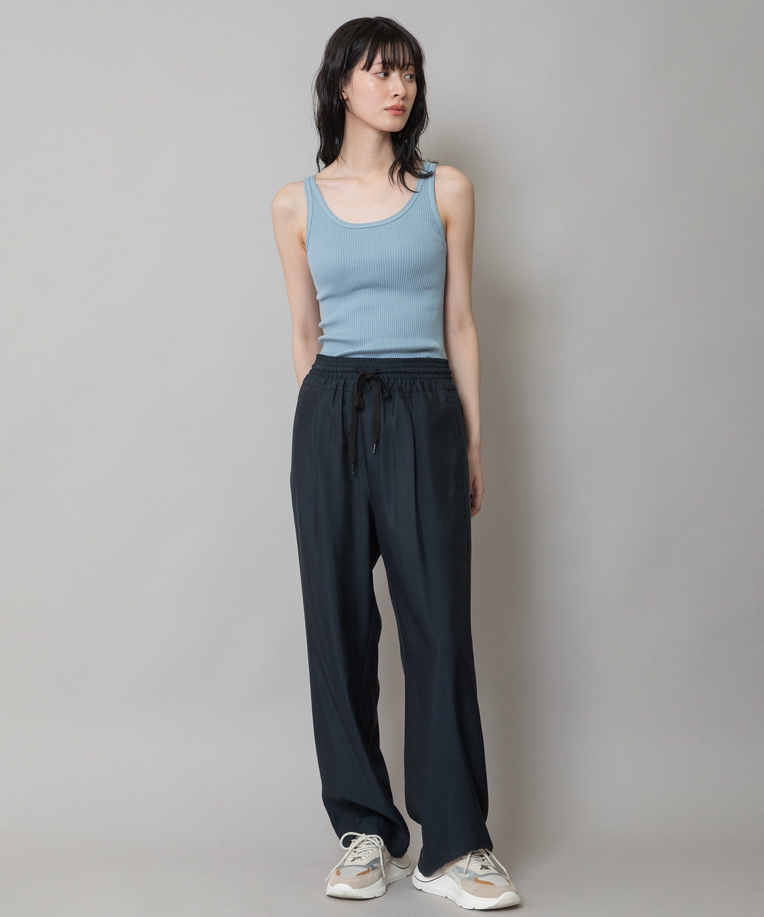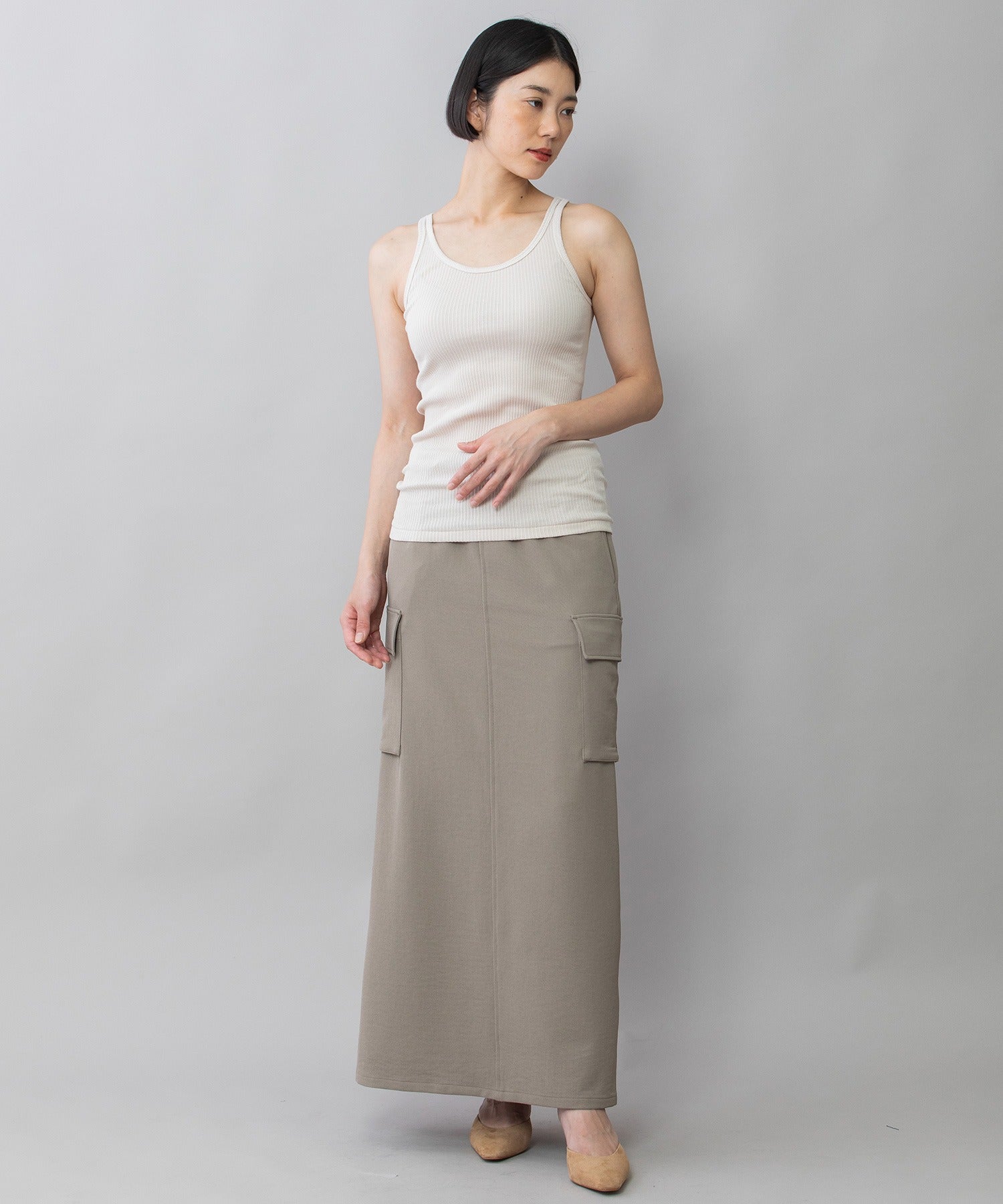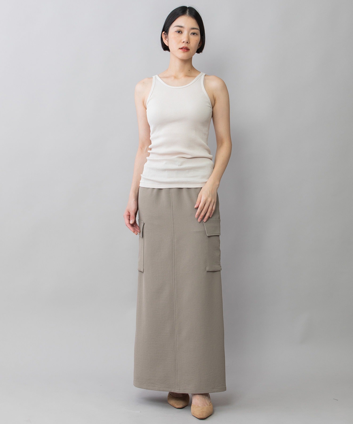 合わせるアイテムで衿ぐりを変えられる便利な2wayタンクトップ。