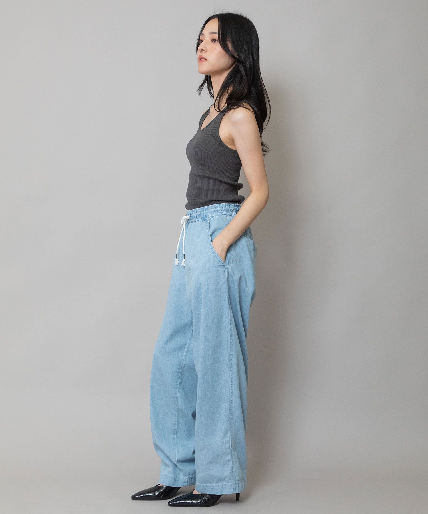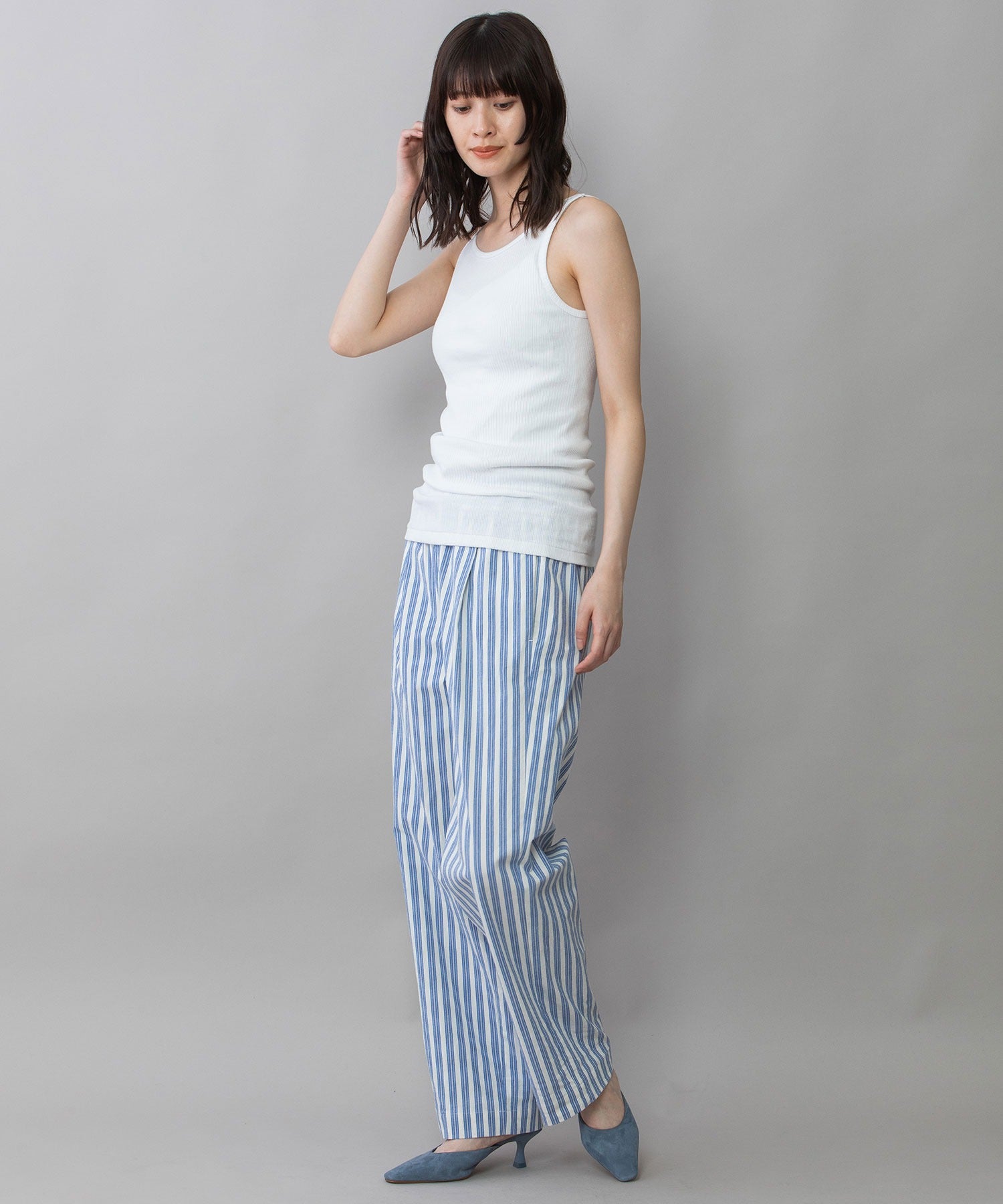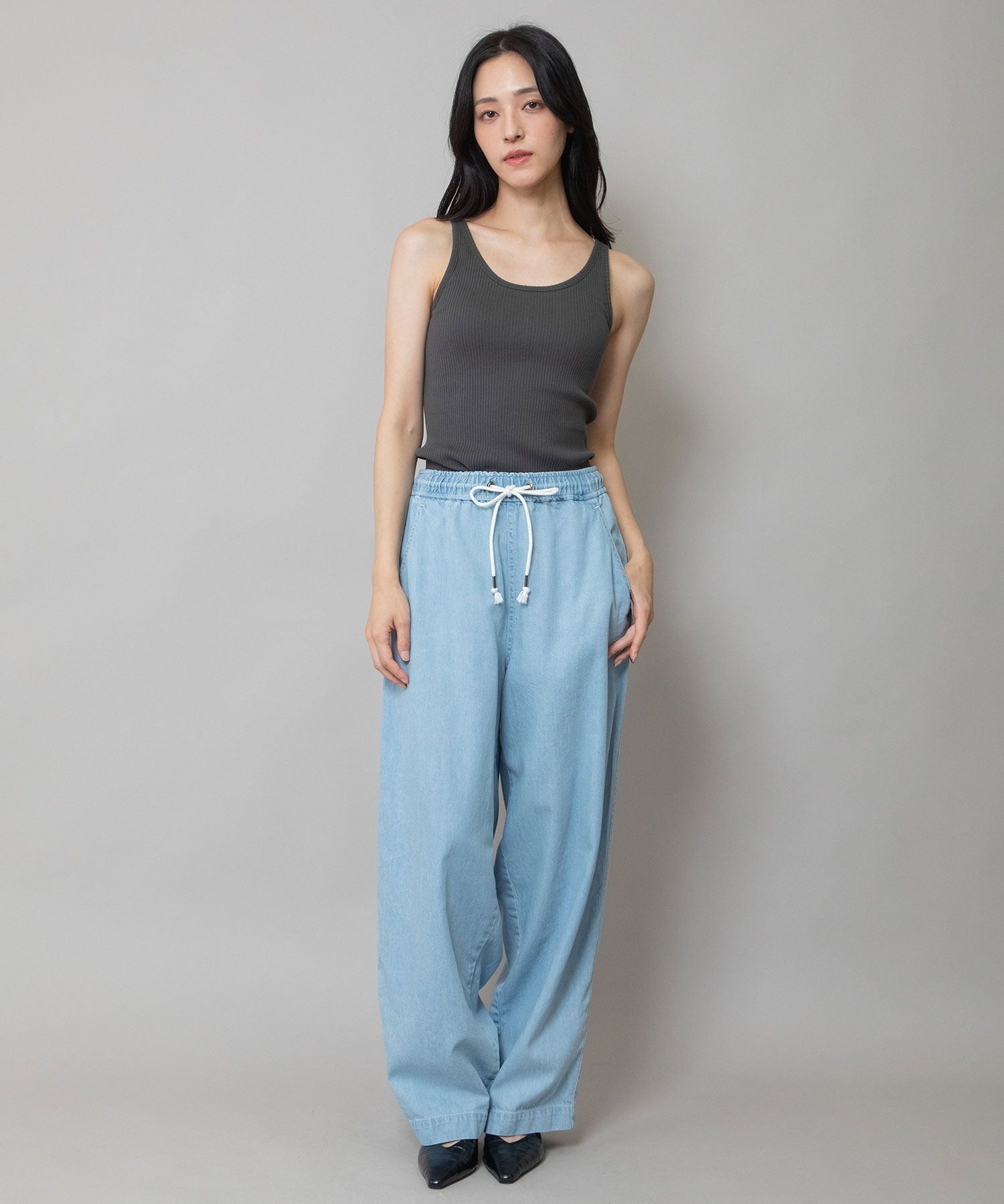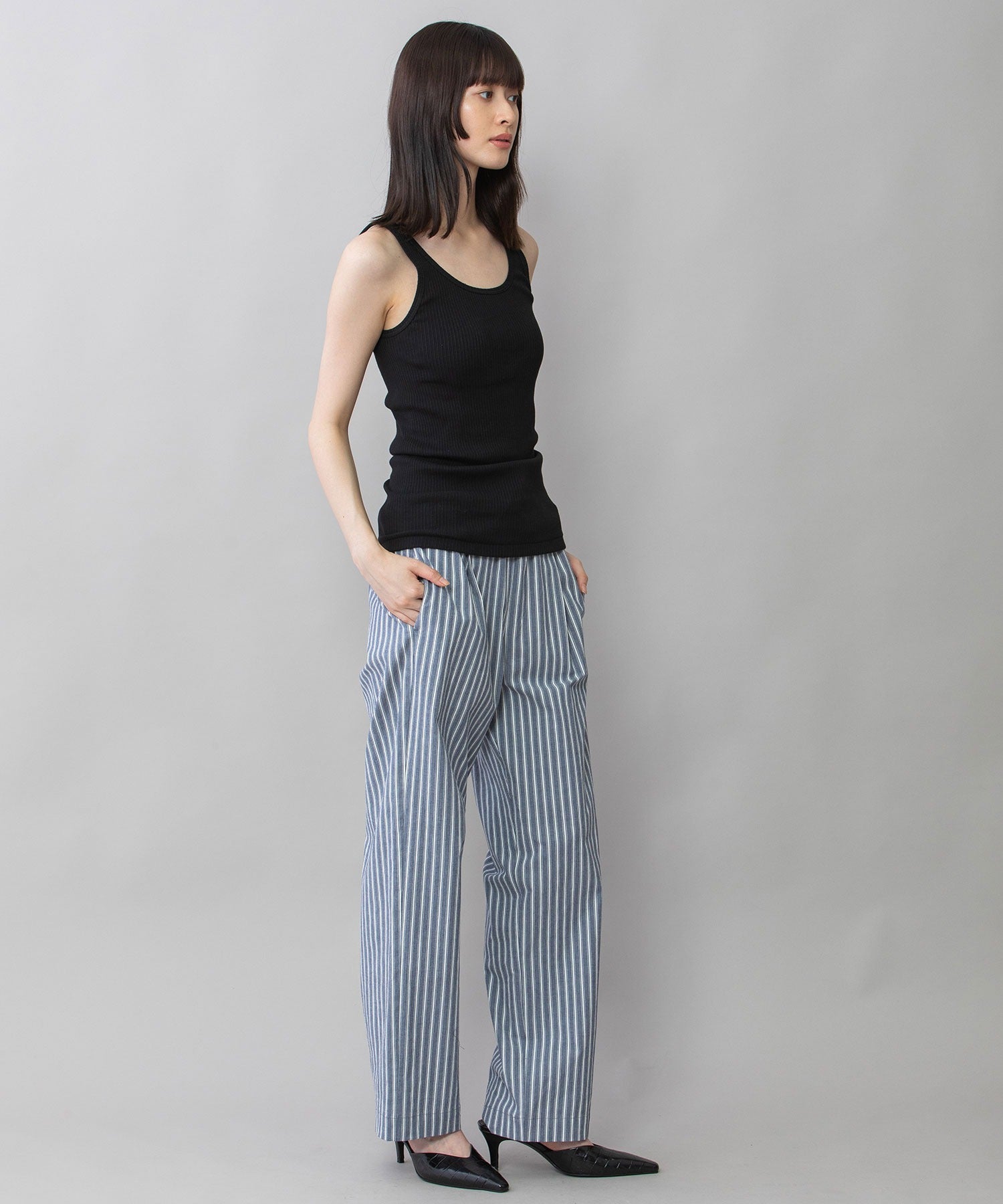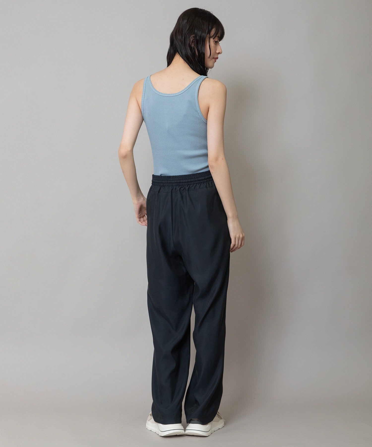 合わせるアイテムで衿ぐりを変えられる便利な2wayタンクトップ。