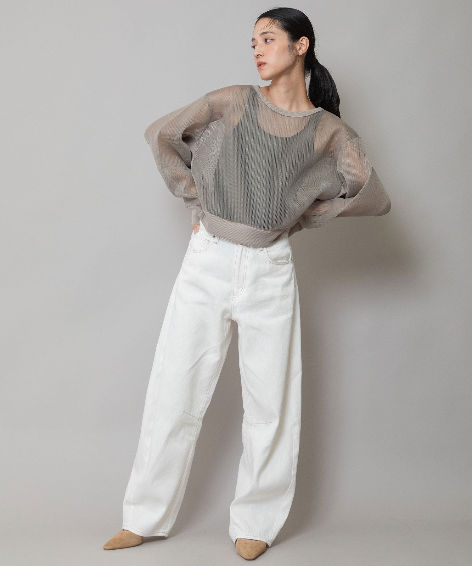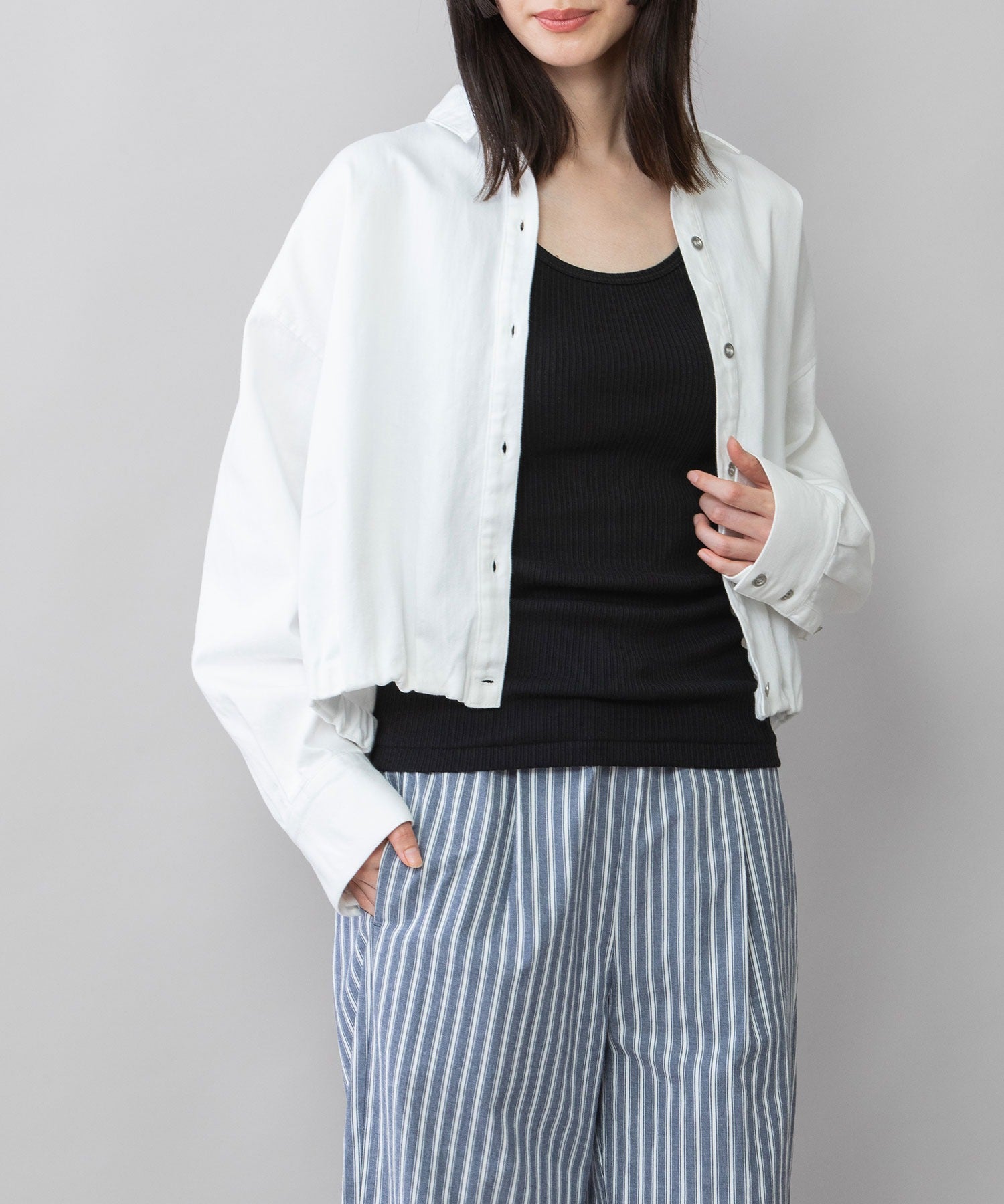 ■ホワイト:清潔感のあるホワイトカラー。 ベーシックで使いやすく、どんなスタイリングにも合わせやすいので1枚あれば便利なカラー