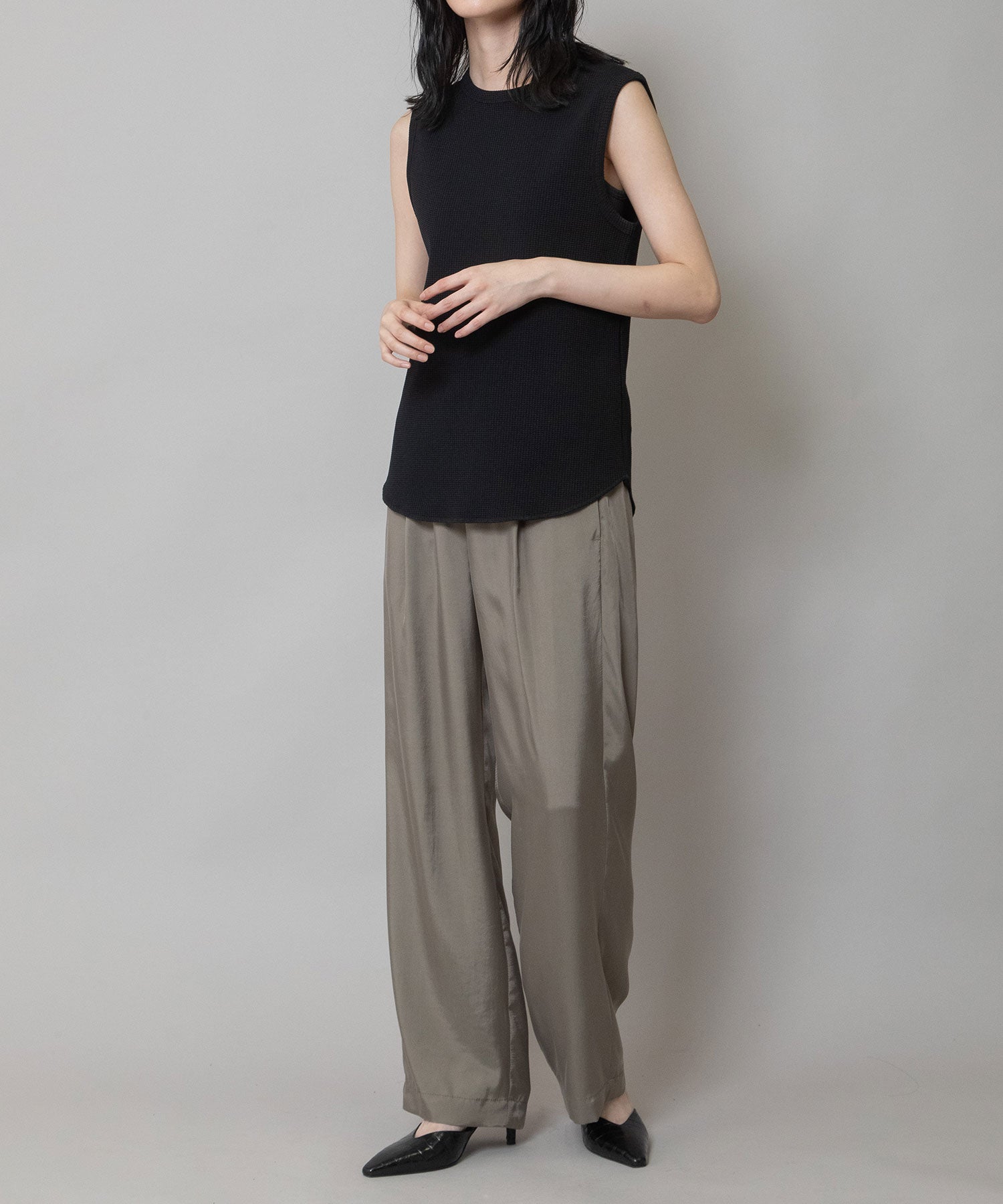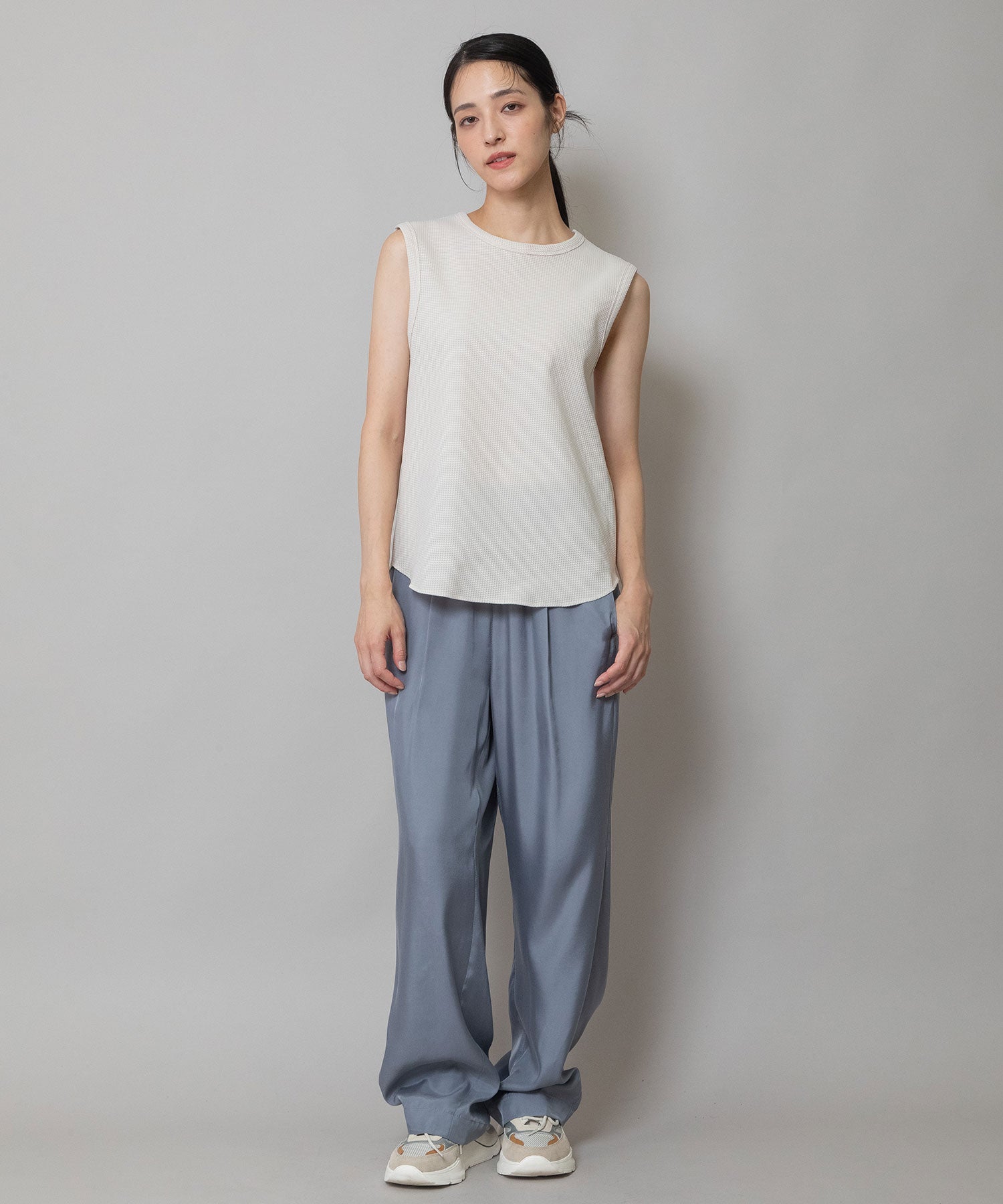 シンプルながらも首元や袖の開きなどにこだわり、クリーンでエフォートレスなイメージに仕上げています。