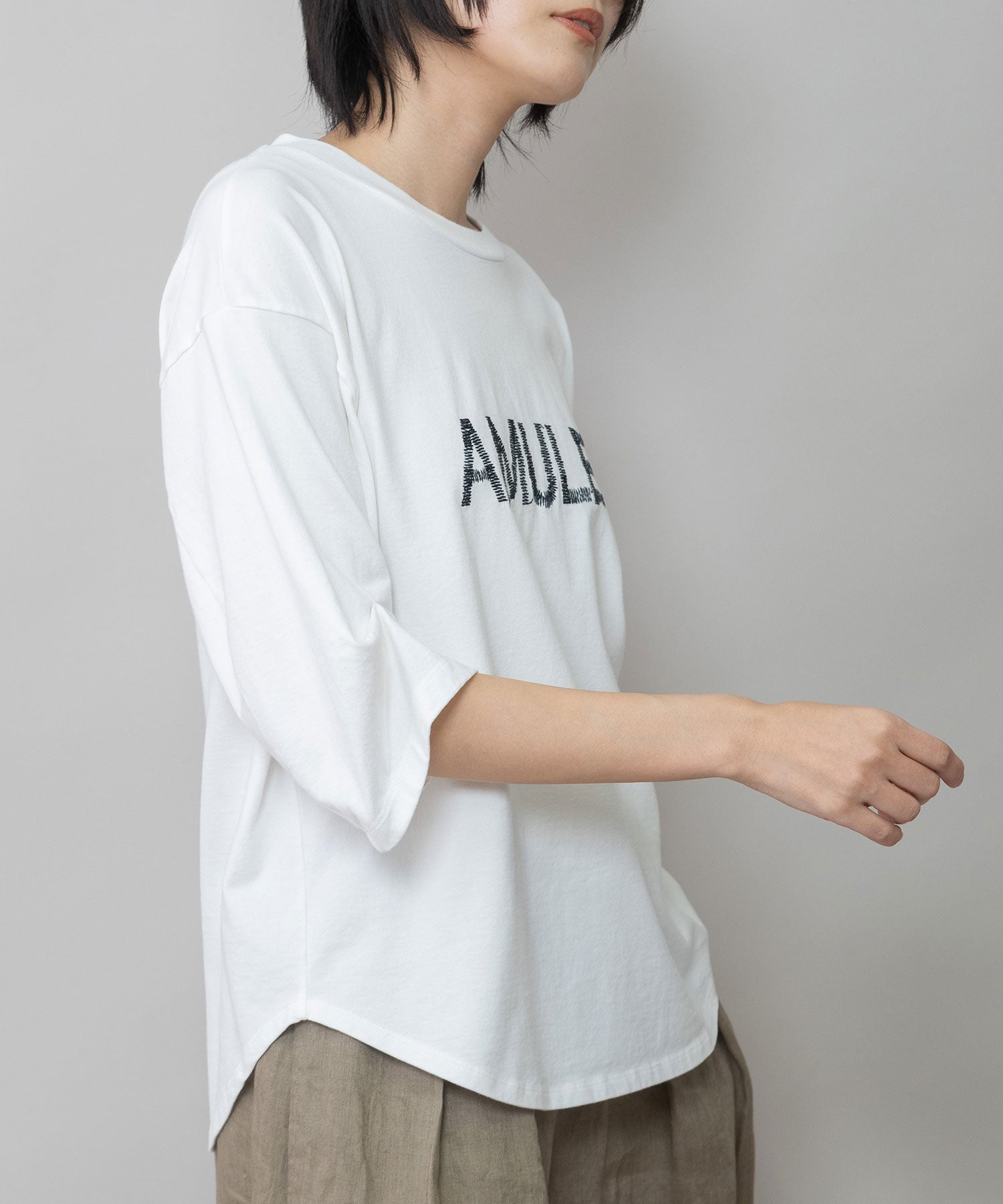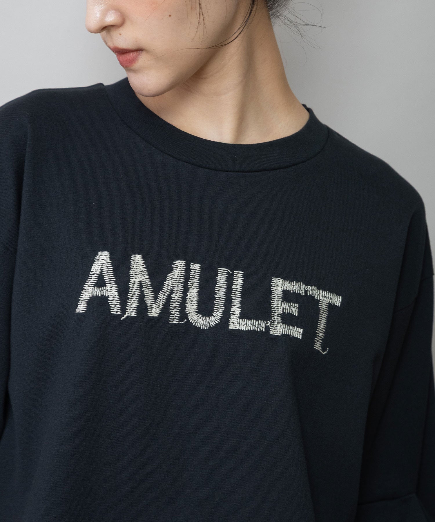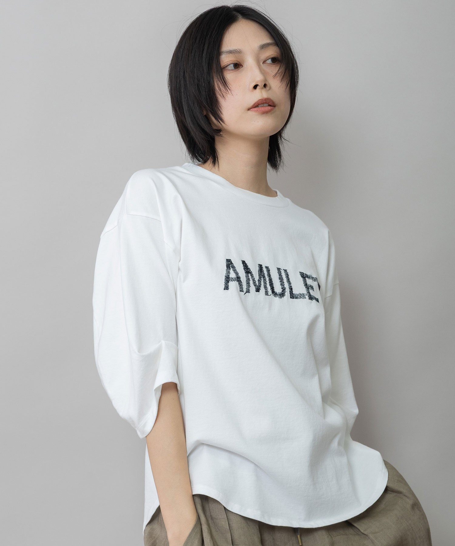◆手書き風の「AMULET」刺繍がさりげなく映える、大人のためのロゴTシャツ◆