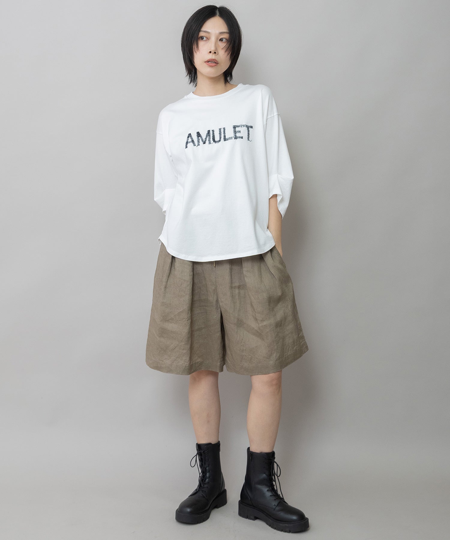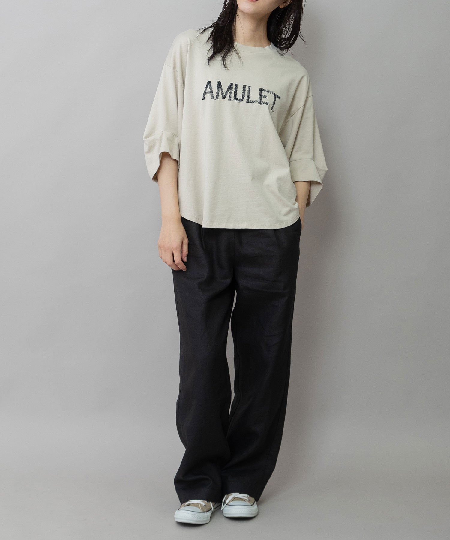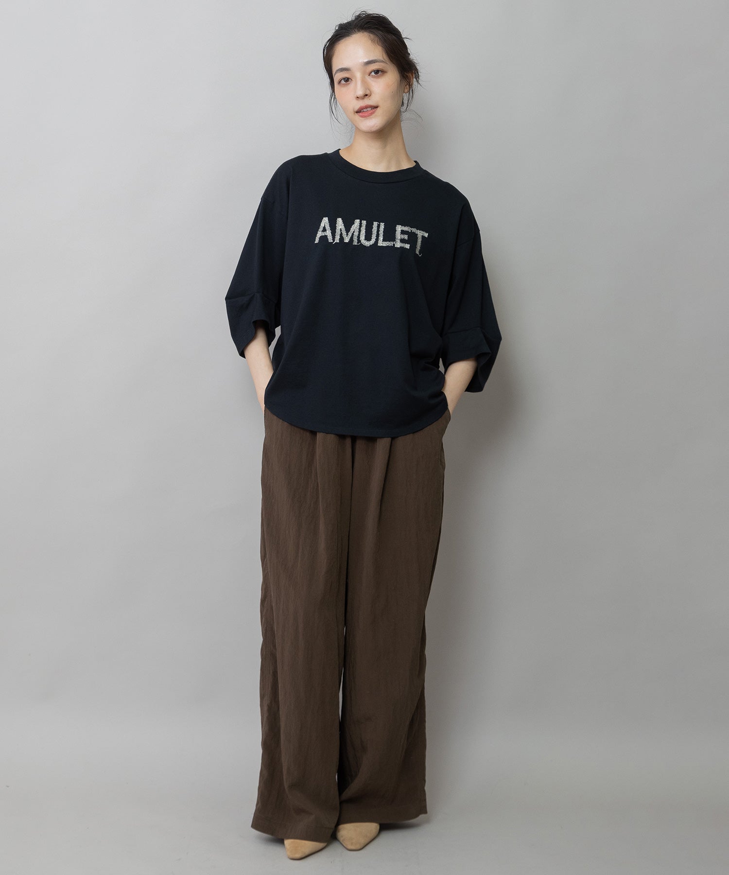 ◆手書き風の「AMULET」刺繍がさりげなく映える、大人のためのロゴTシャツ◆
